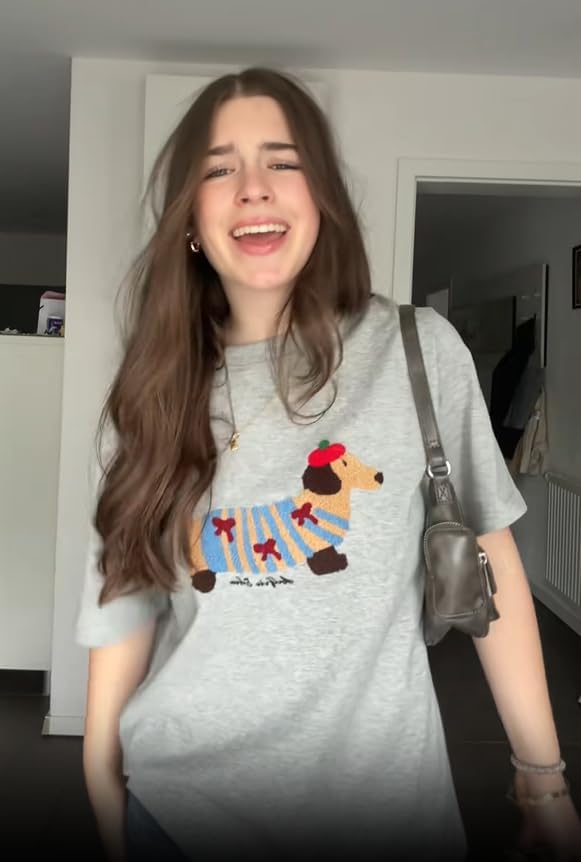 Aelfric Eden Mens Oversized Graphic Tees Dog Embroidery Casual Women Tshirts Short Sleeve Top Cotton Cute Tee Shirt
