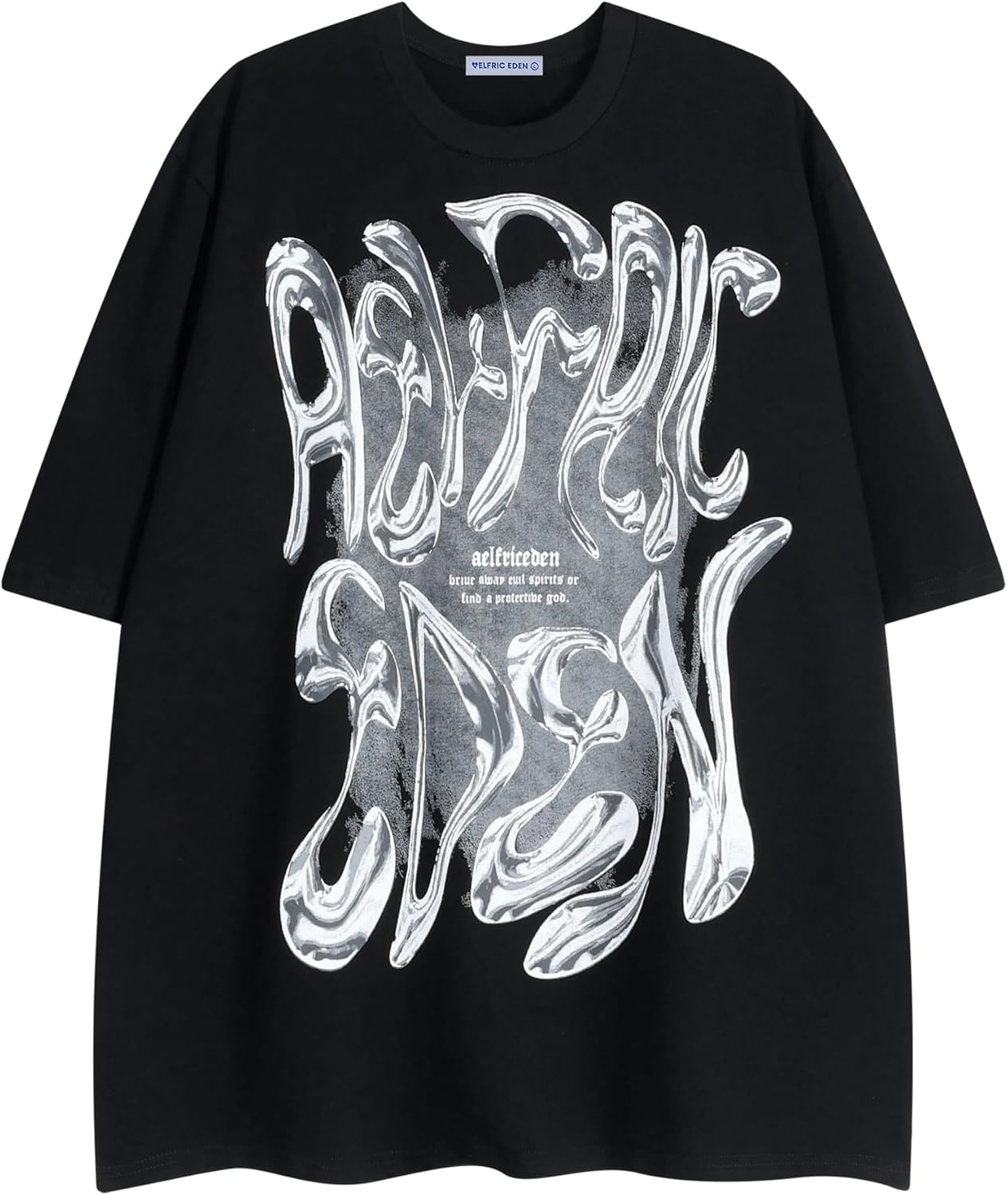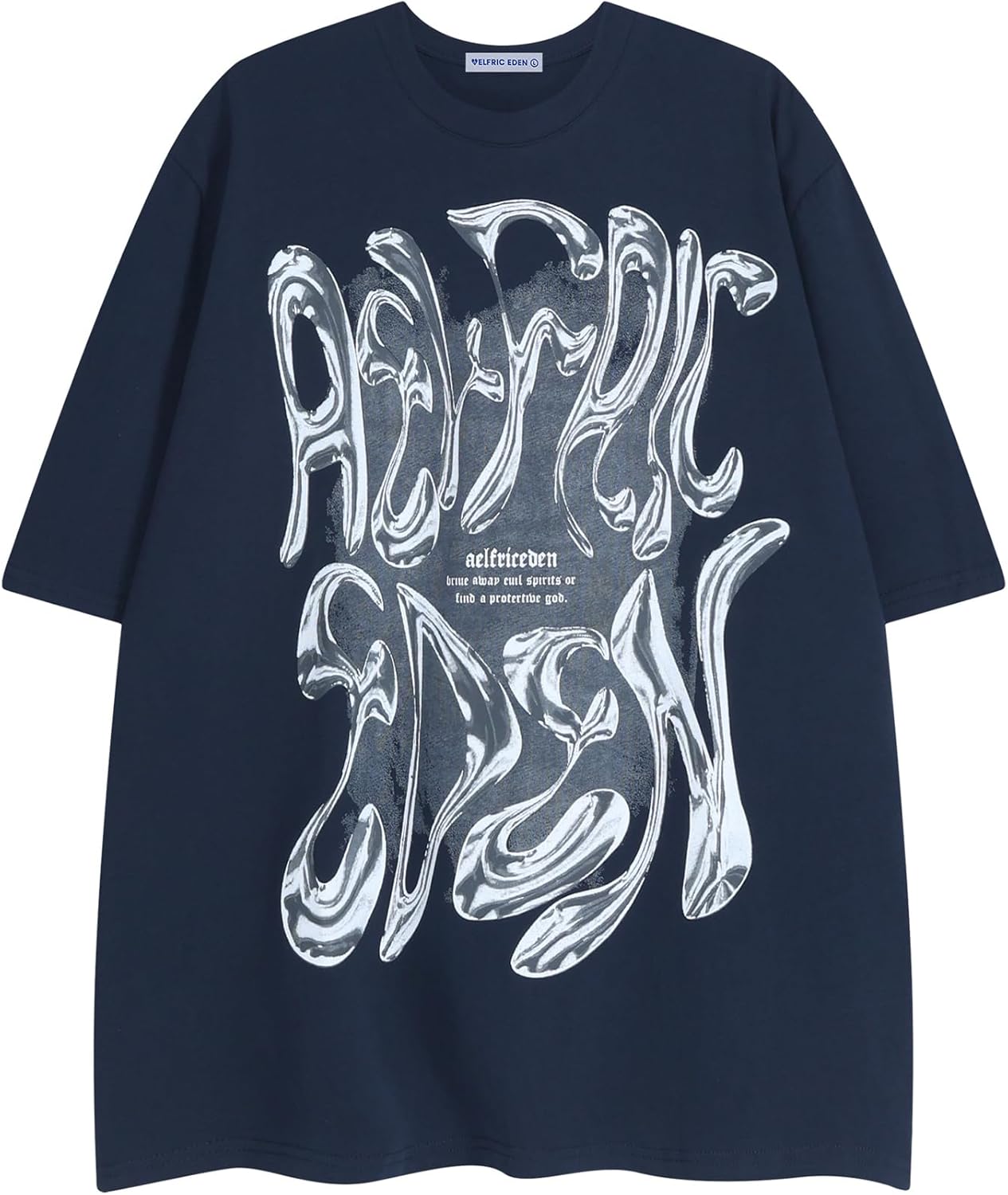 Aelfric Eden Metalic Graphic Tees Men Y2k Oversized T Shirts Women Vintage Tees Unisex Summer Tops