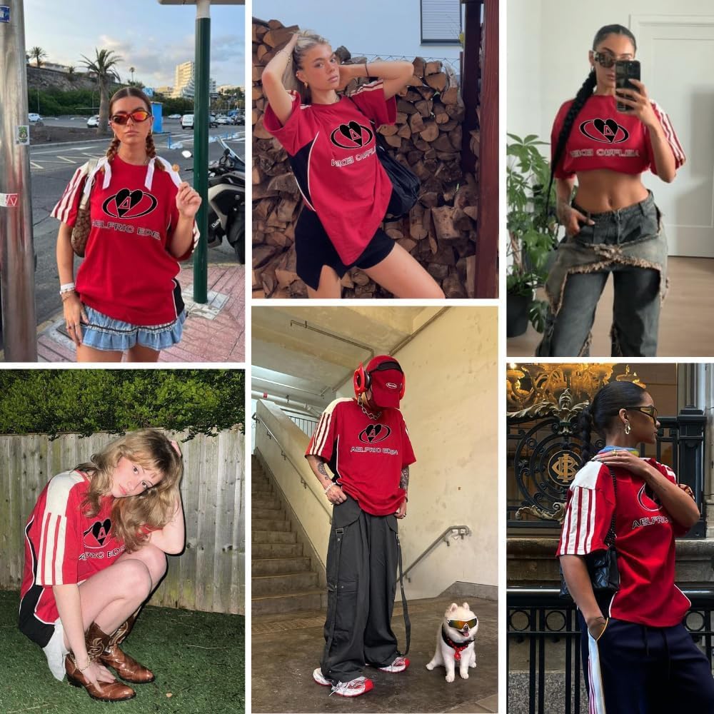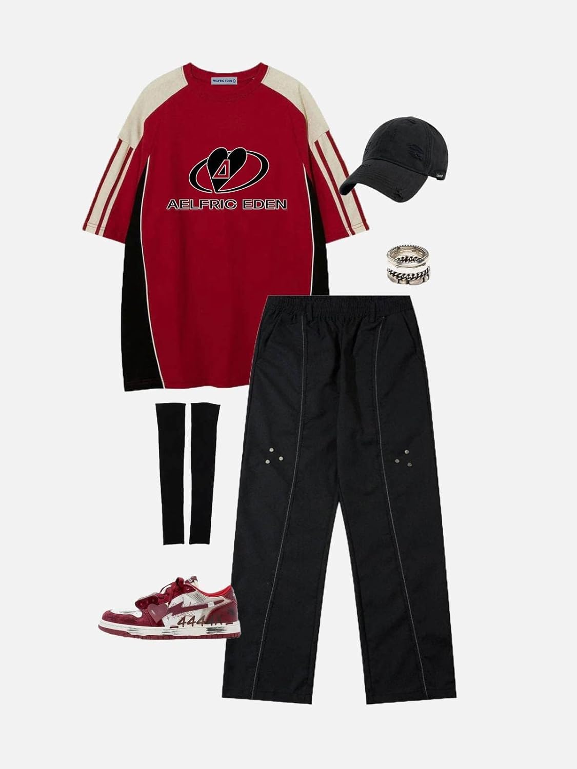Aelfric Eden Oversized Graphic Tees Men Contrast Color Speedway Racing Tee Unisex Streetwear Tshirt Patchwork Polo Tee quantity