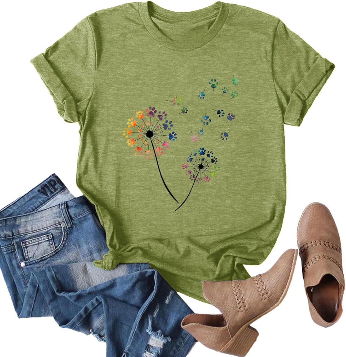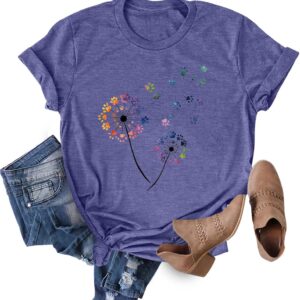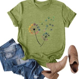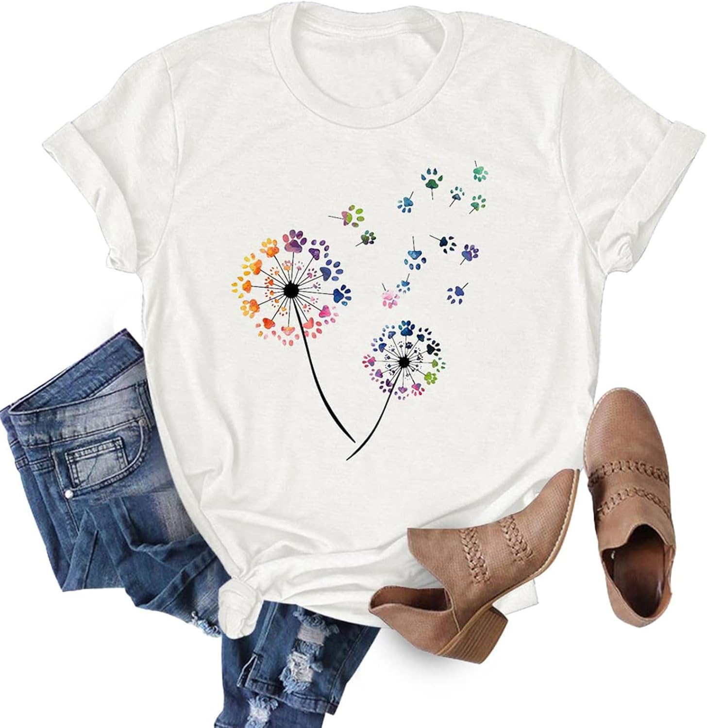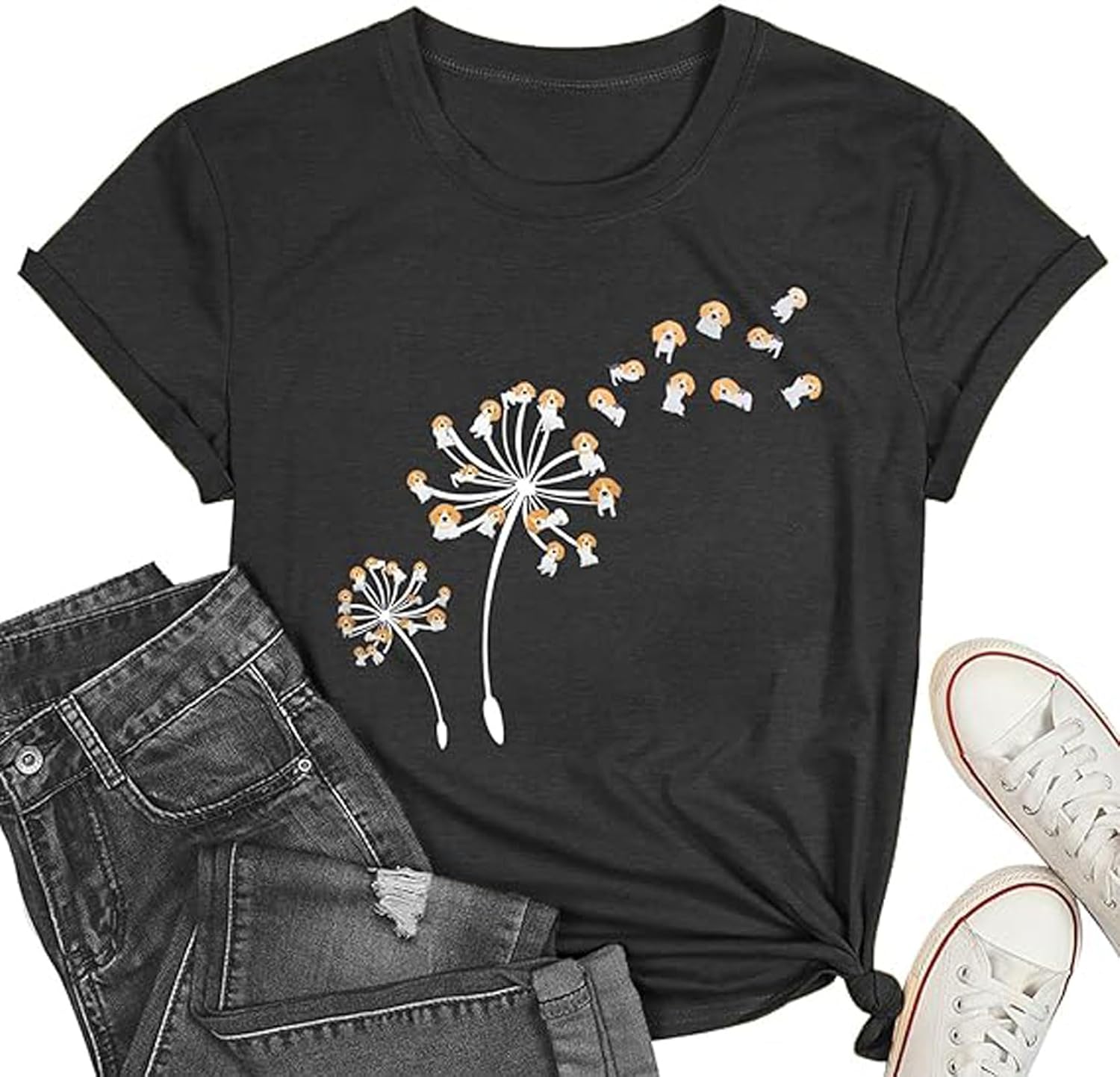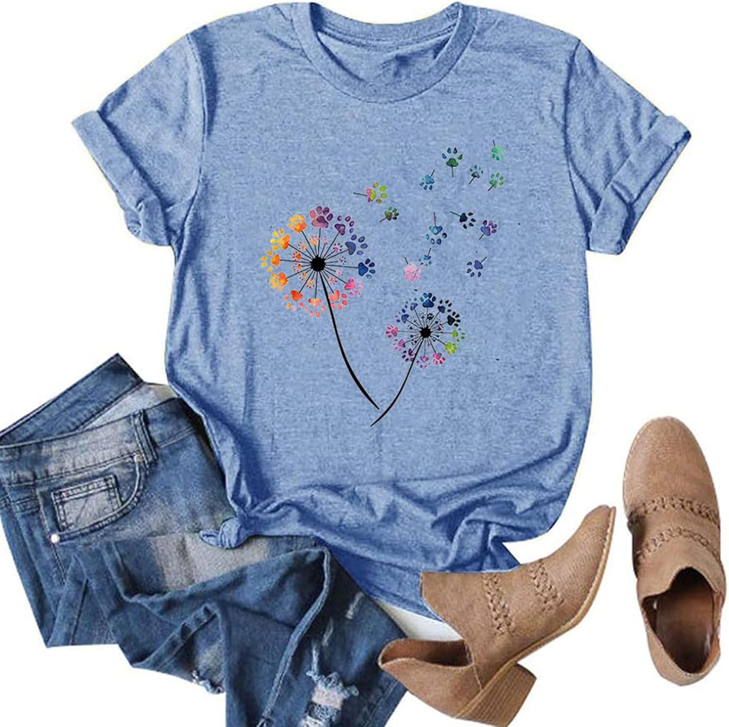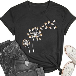 Anbech Womens Dandelion Graphic T-Shirts Teen Girls Cute Sunflower Print Casual Tee Tops