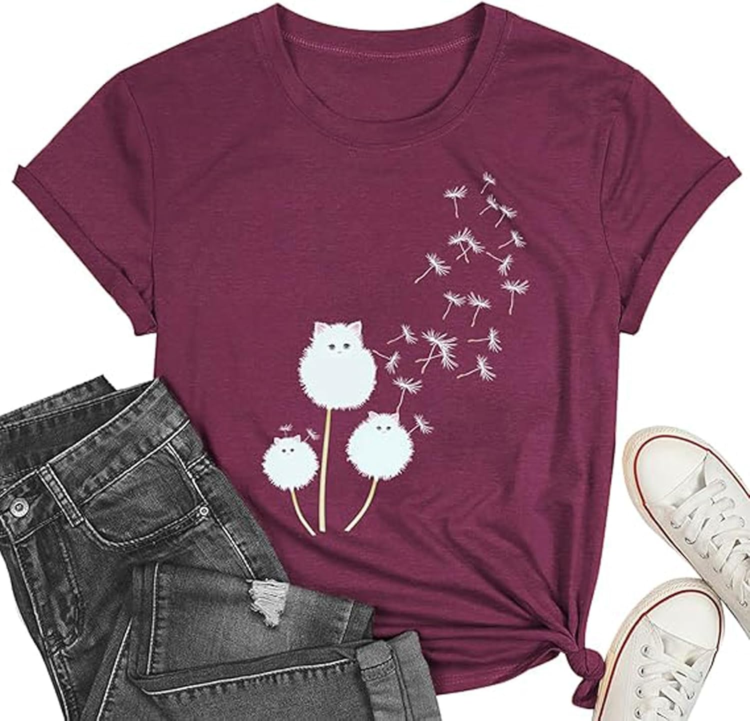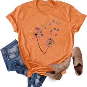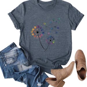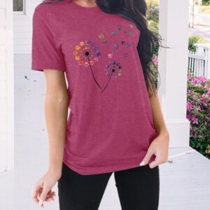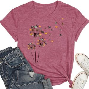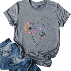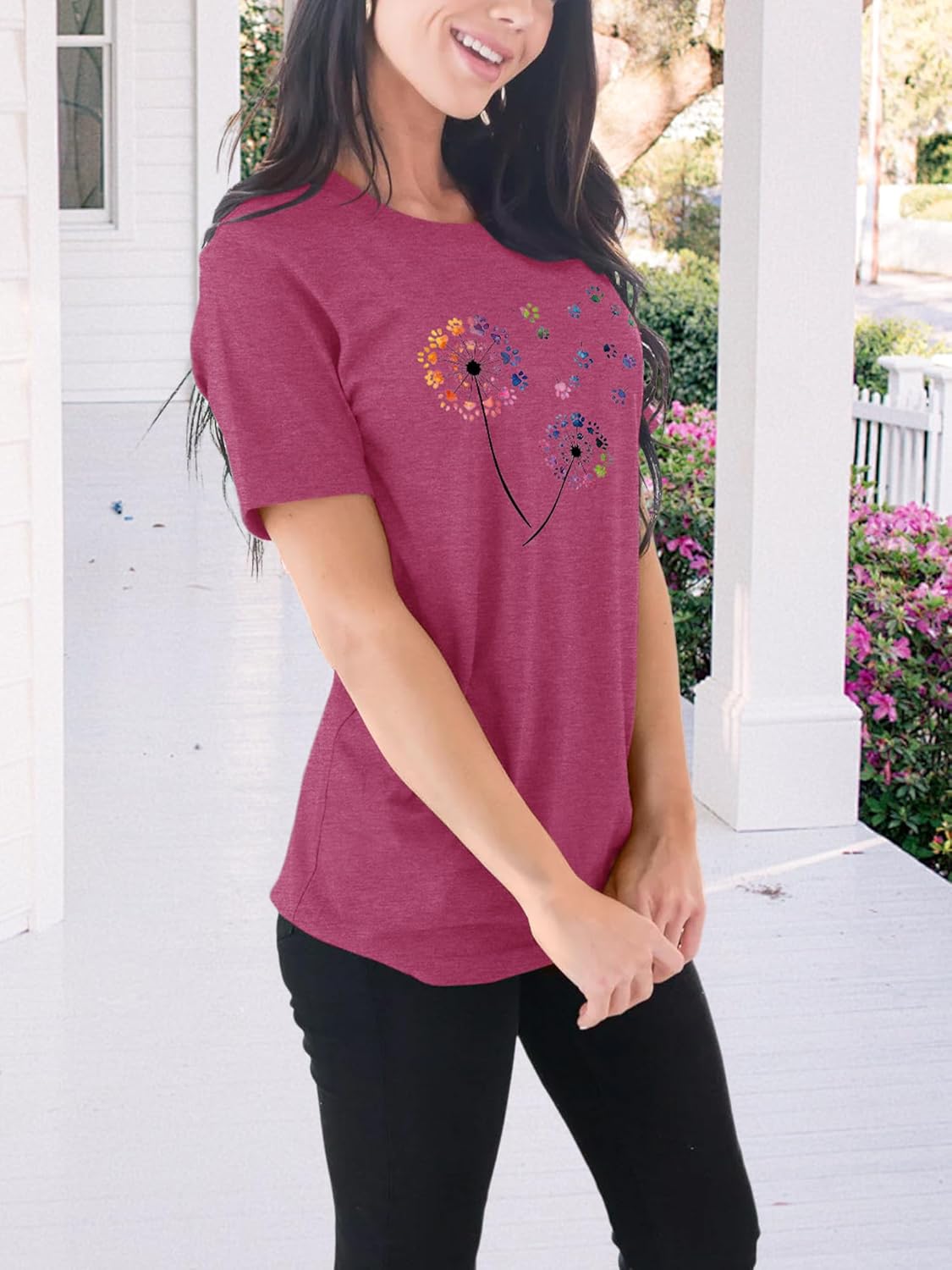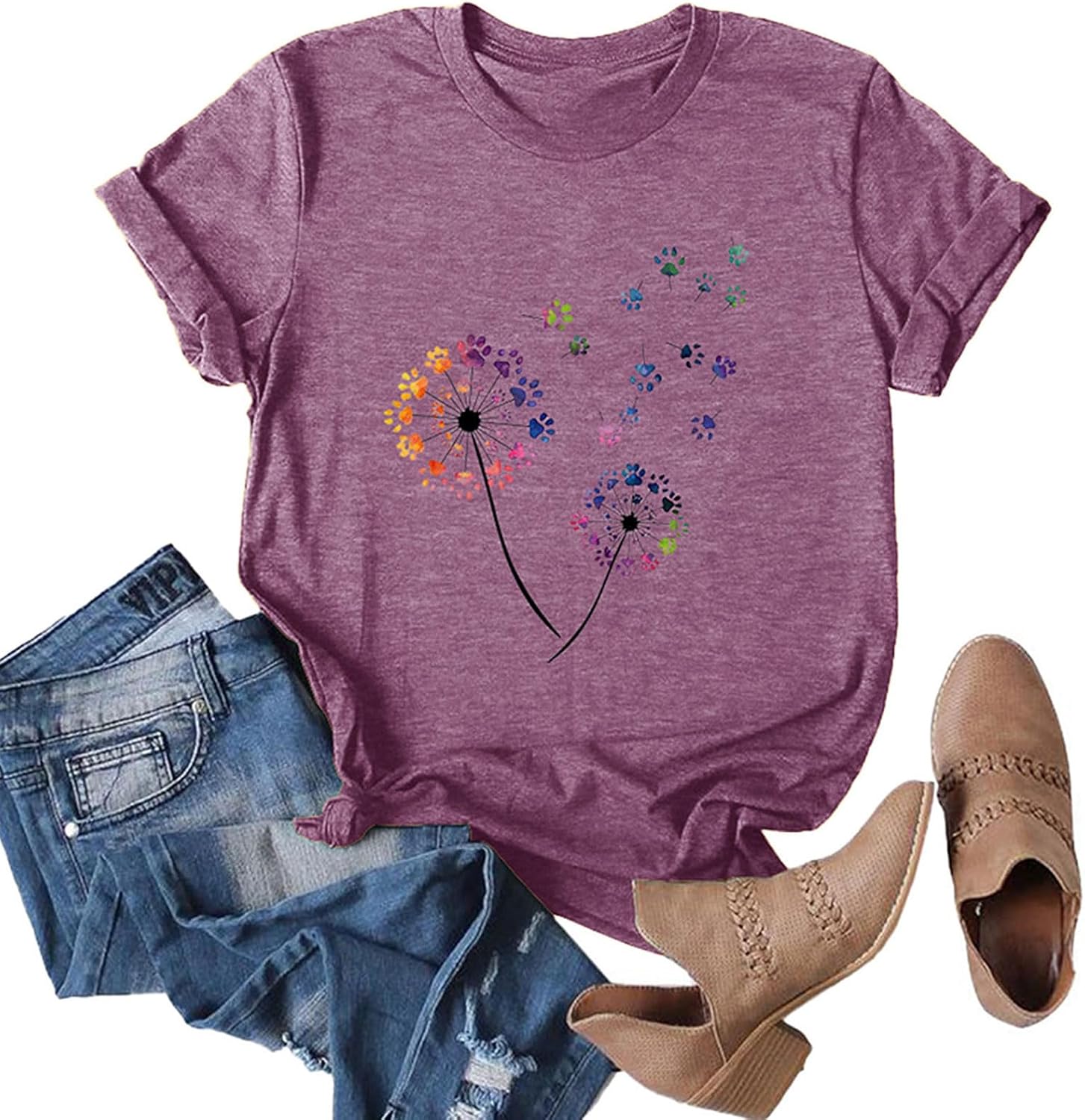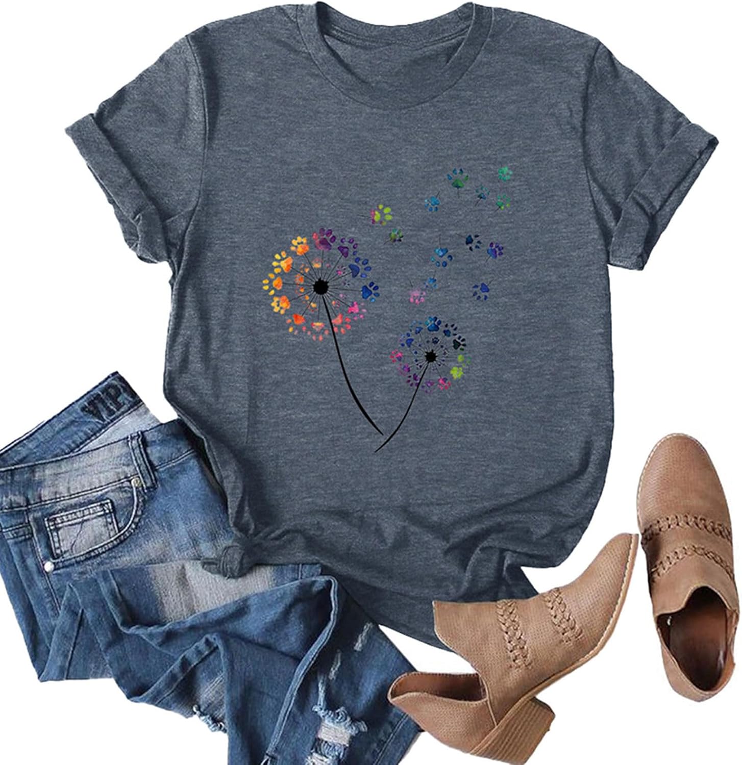 Anbech Womens Dandelion Graphic T-Shirts Teen Girls Cute Sunflower Print Casual Tee Tops