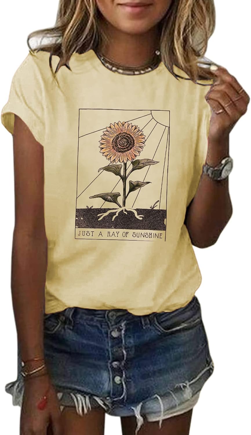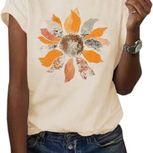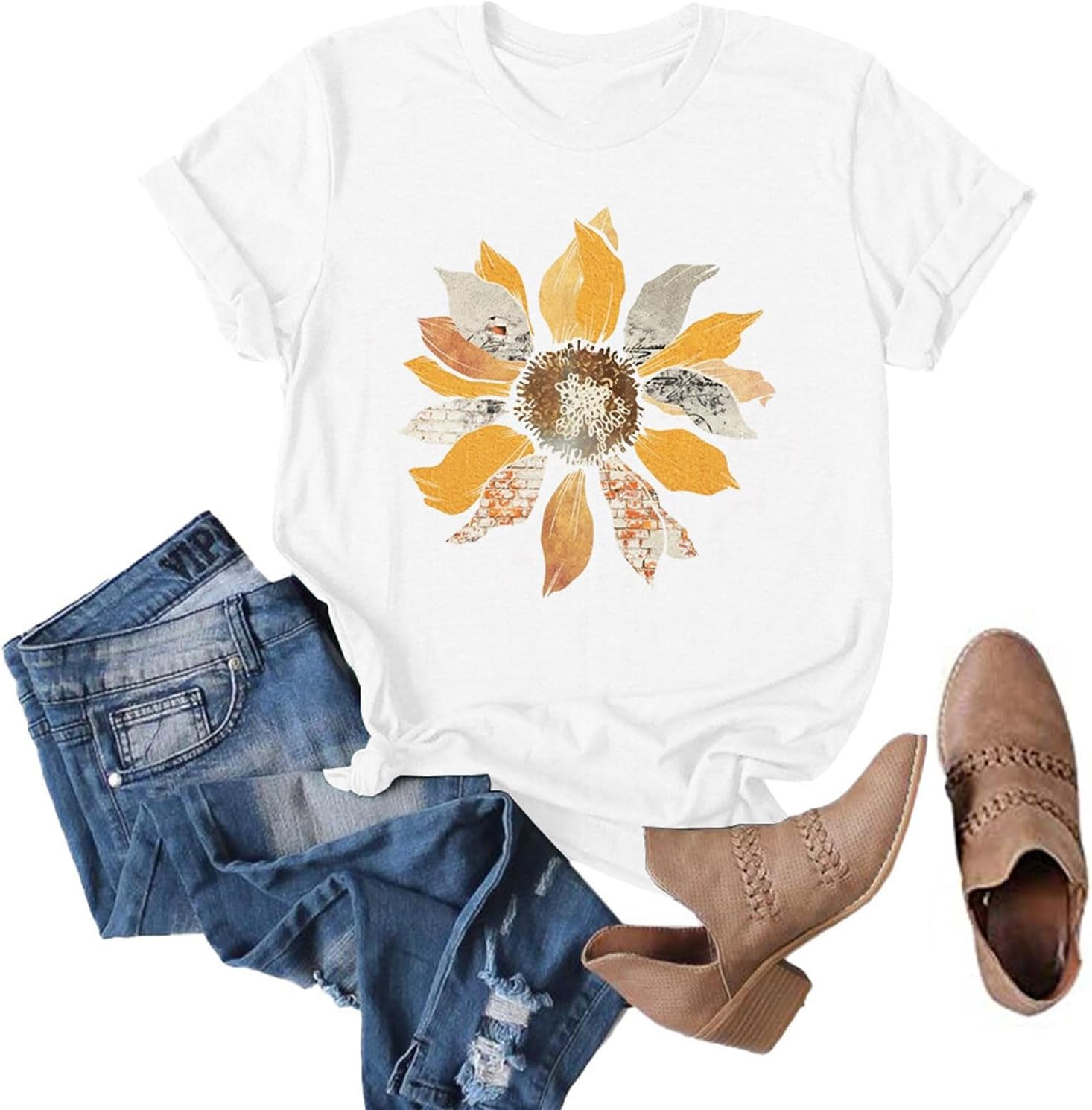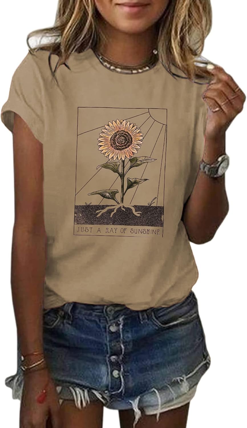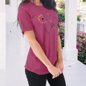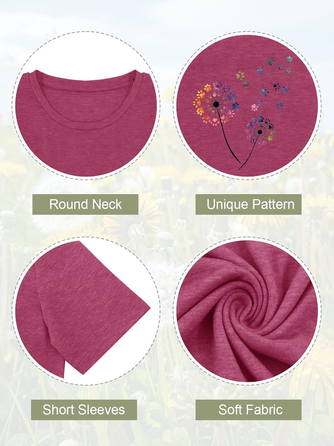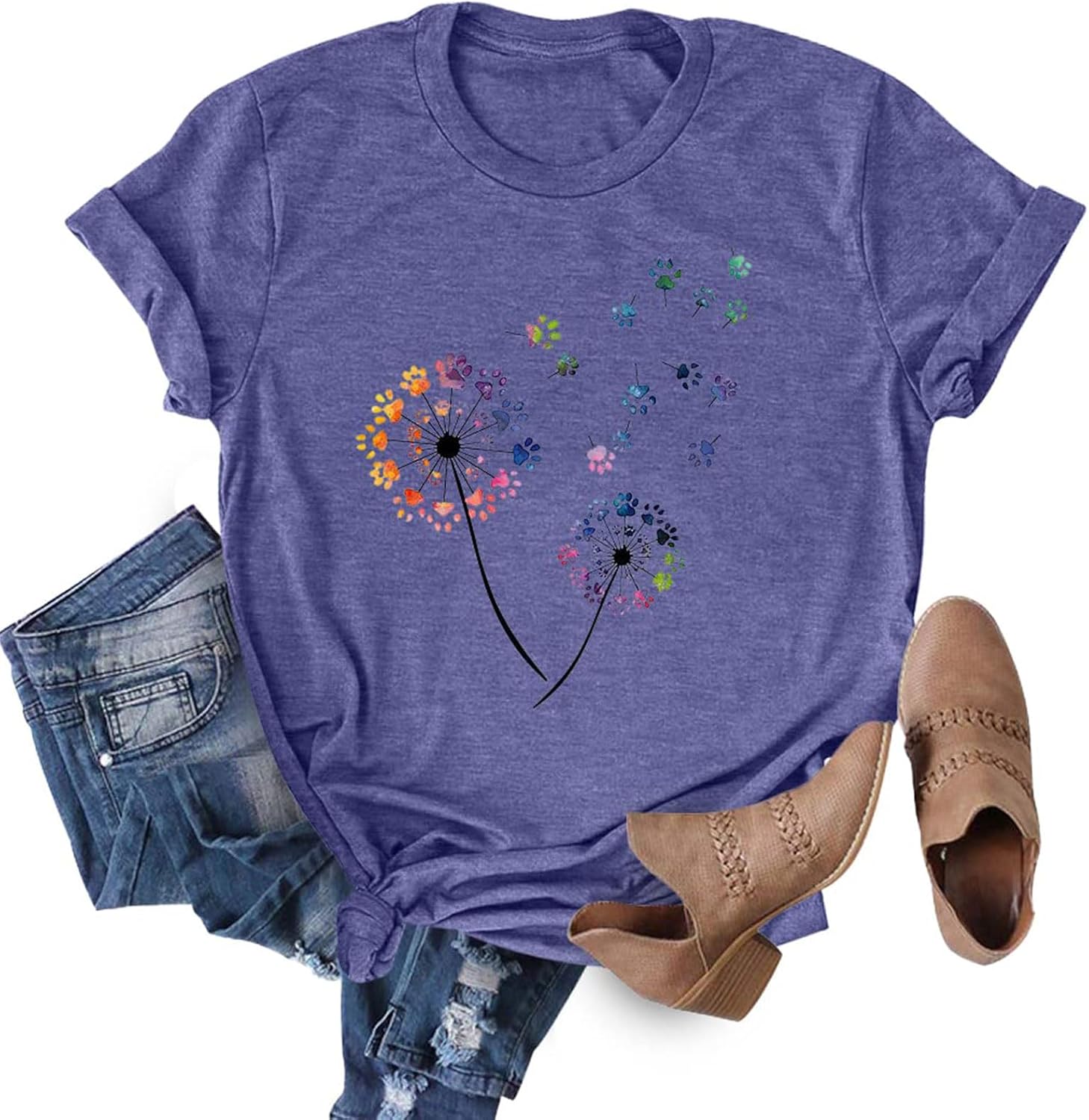 Anbech Womens Dandelion Graphic T-Shirts Teen Girls Cute Sunflower Print Casual Tee Tops