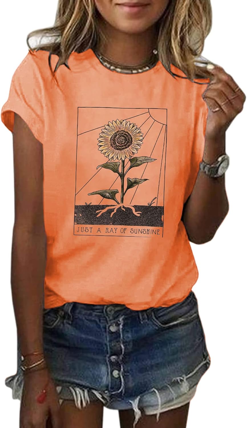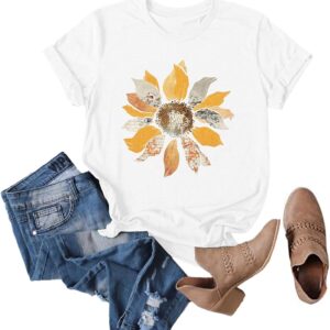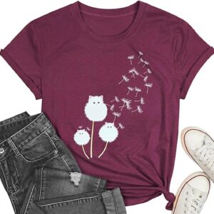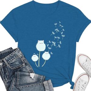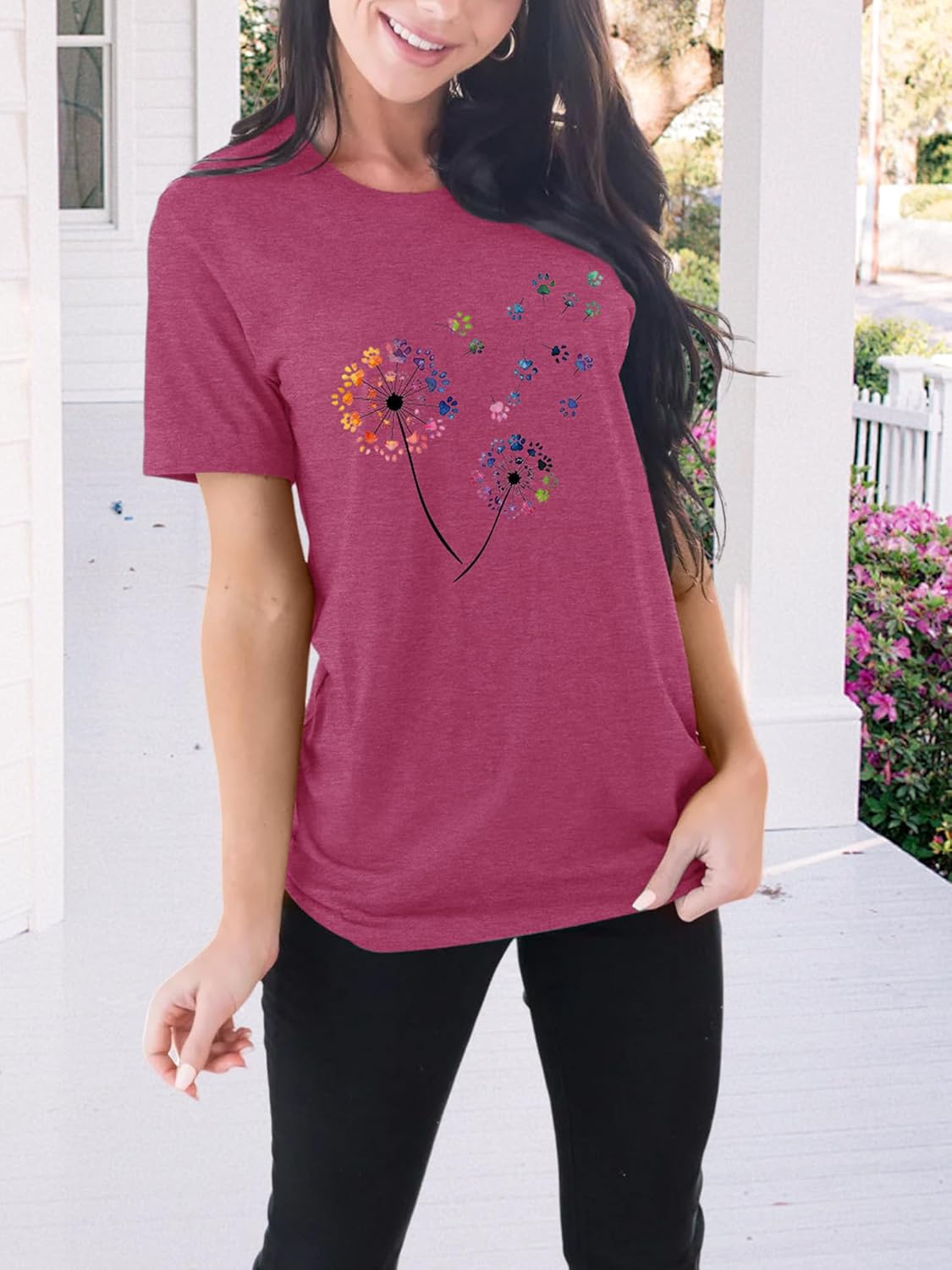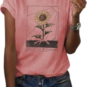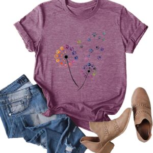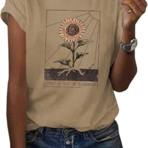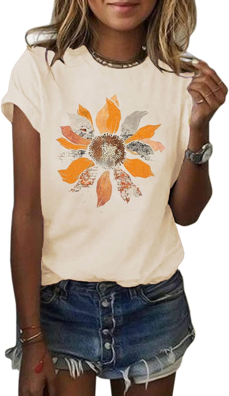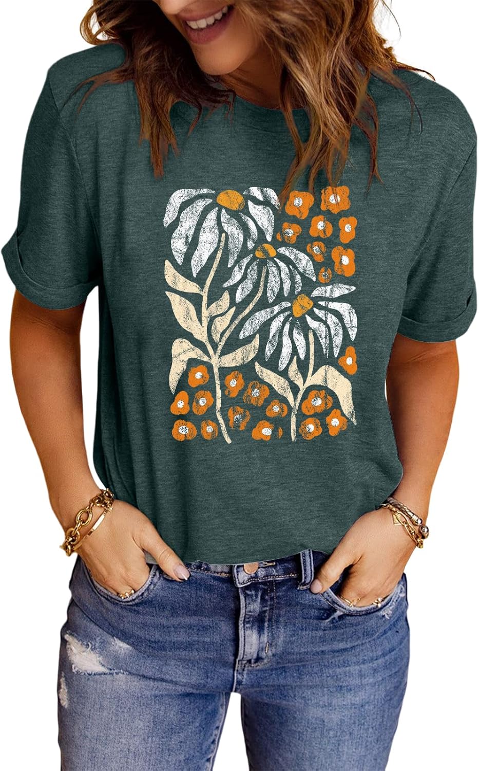 Anbech Womens Dandelion Graphic T-Shirts Teen Girls Cute Sunflower Print Casual Tee Tops