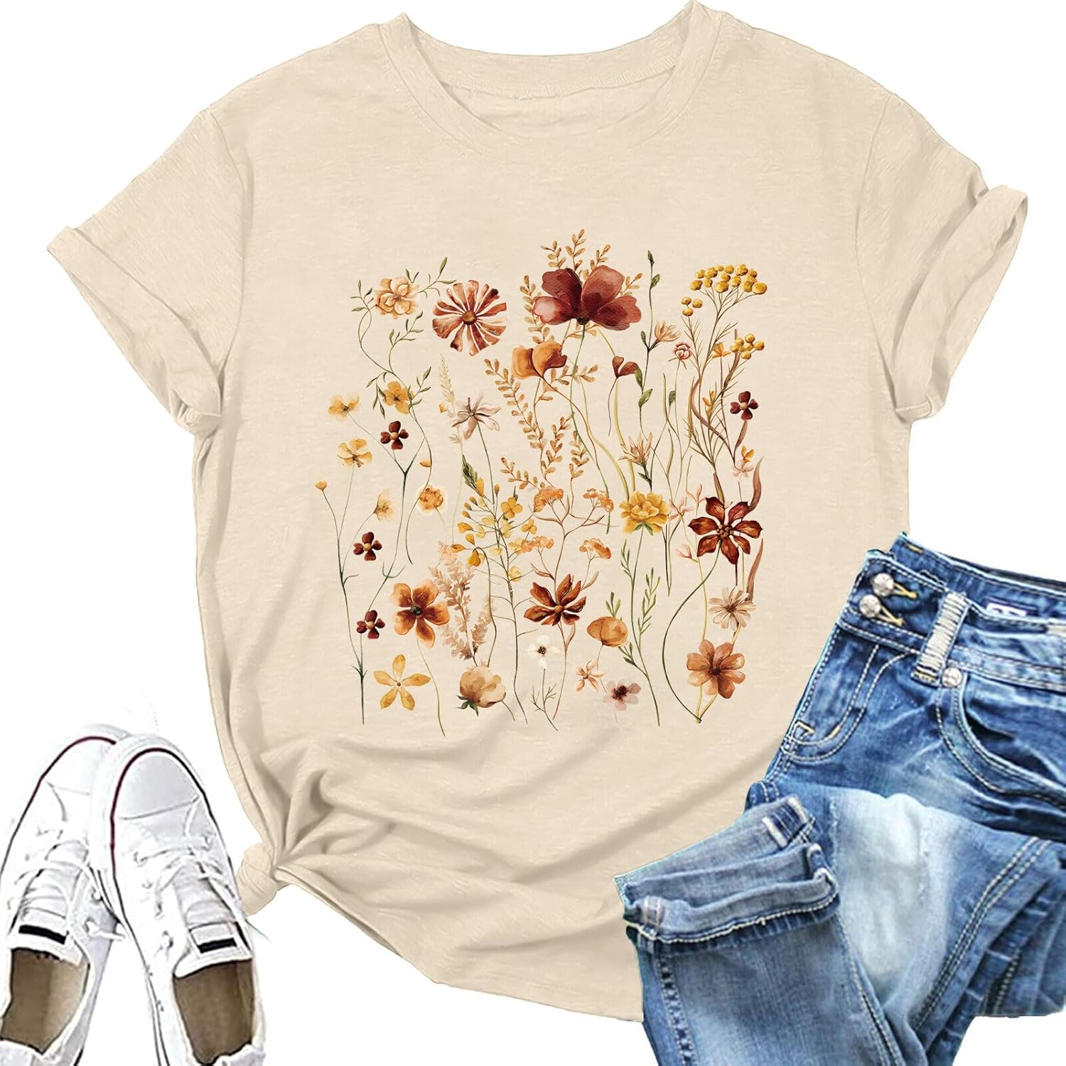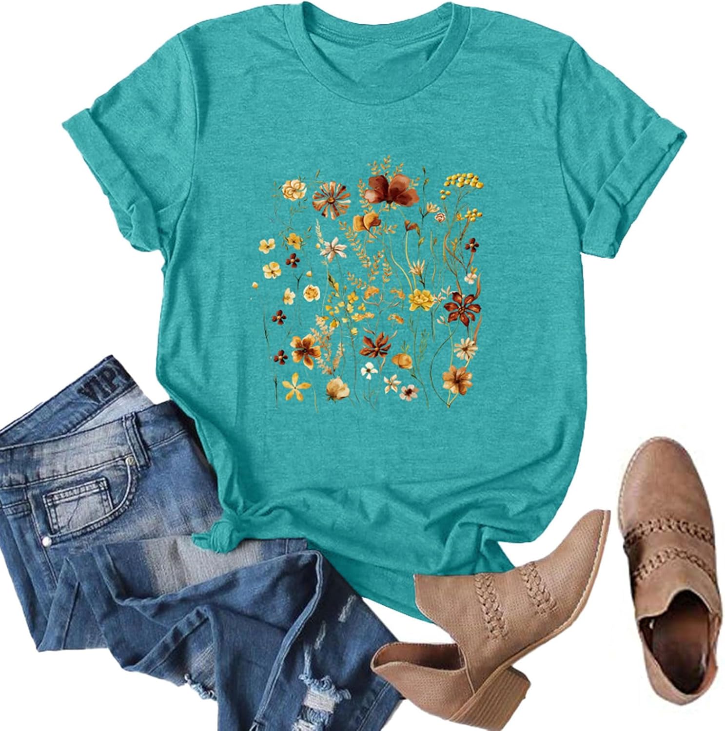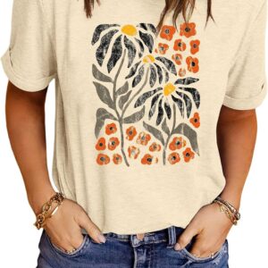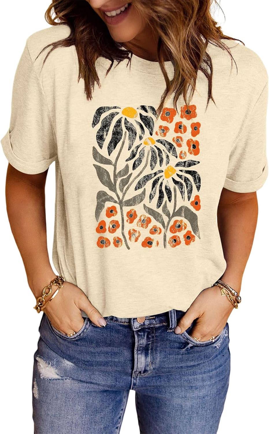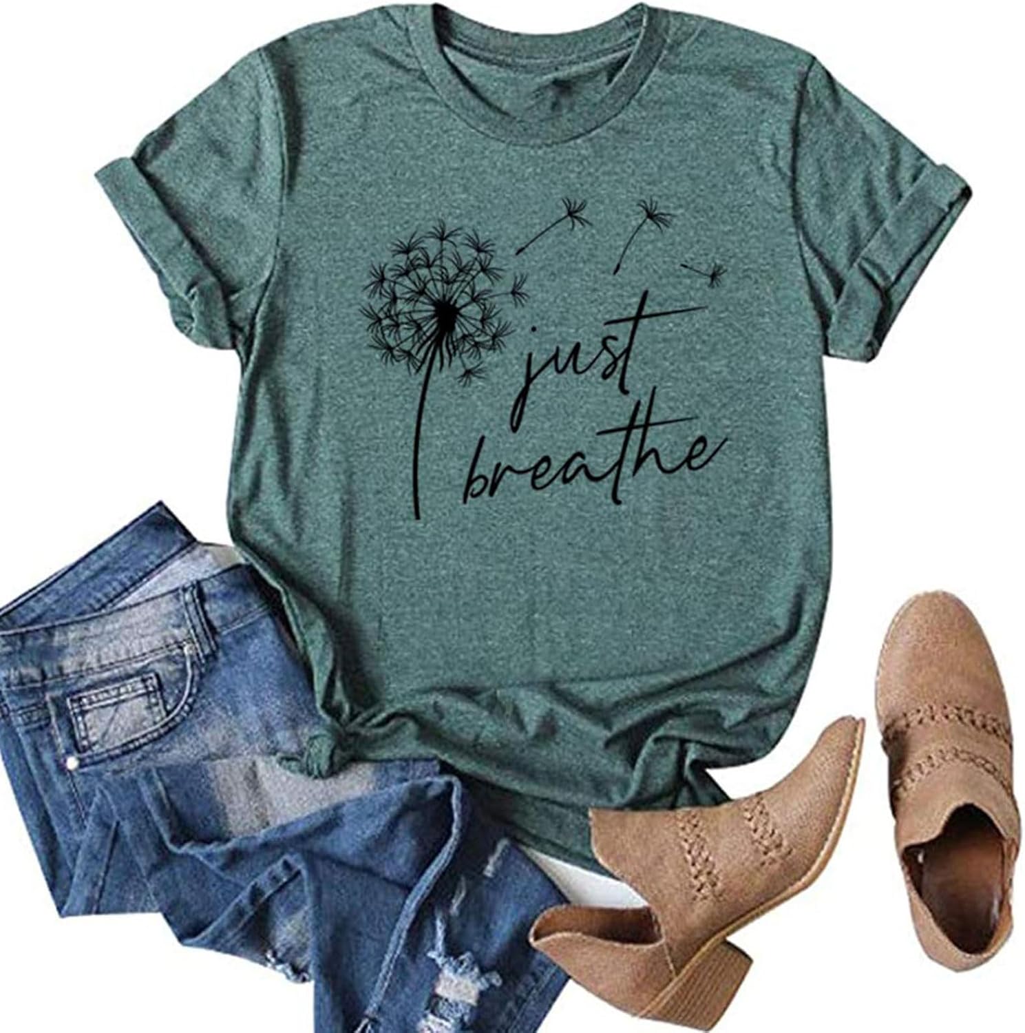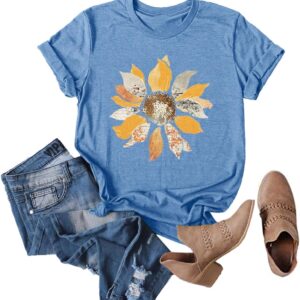 Anbech Womens Dandelion Graphic T-Shirts Teen Girls Cute Sunflower Print Casual Tee Tops