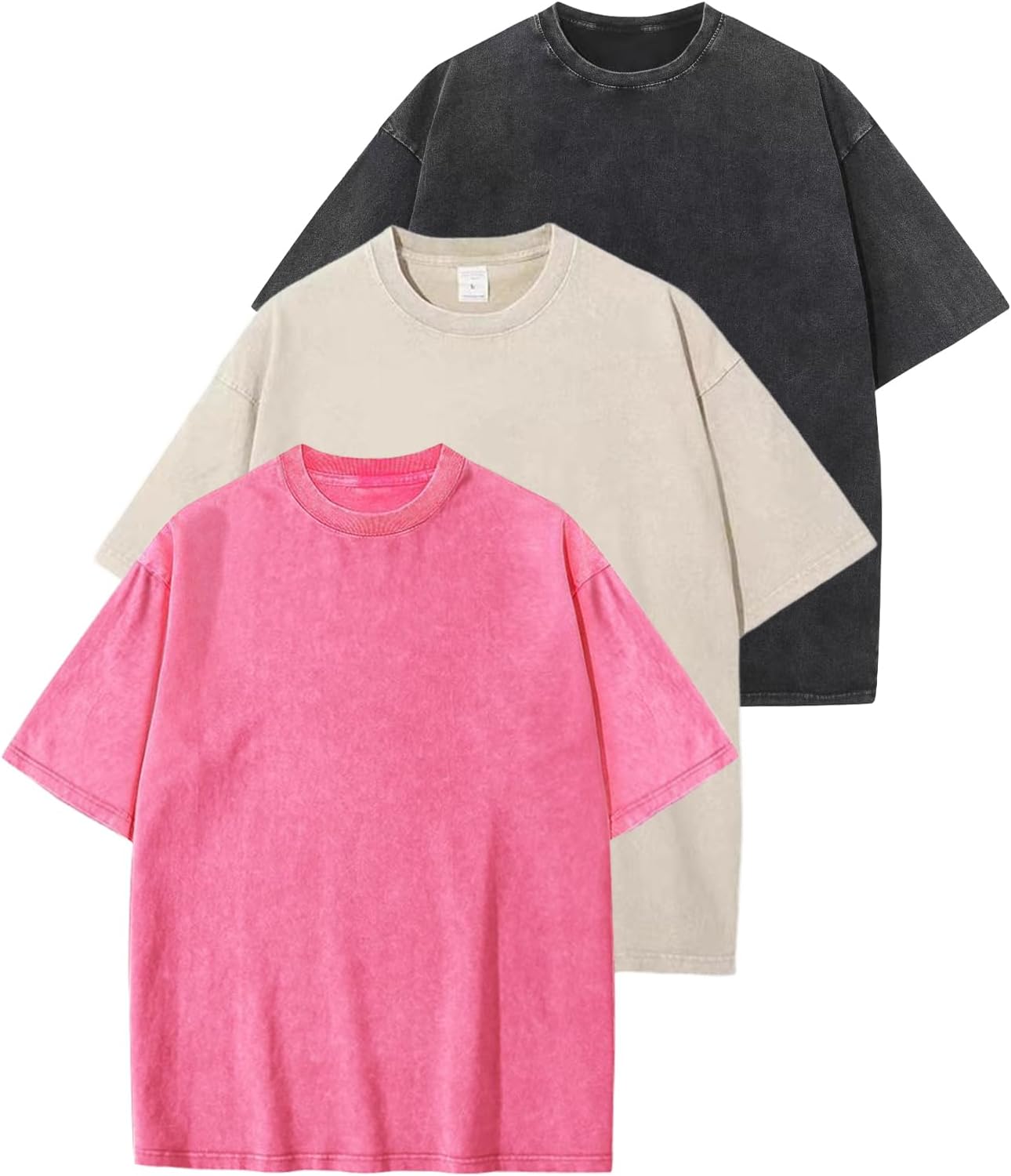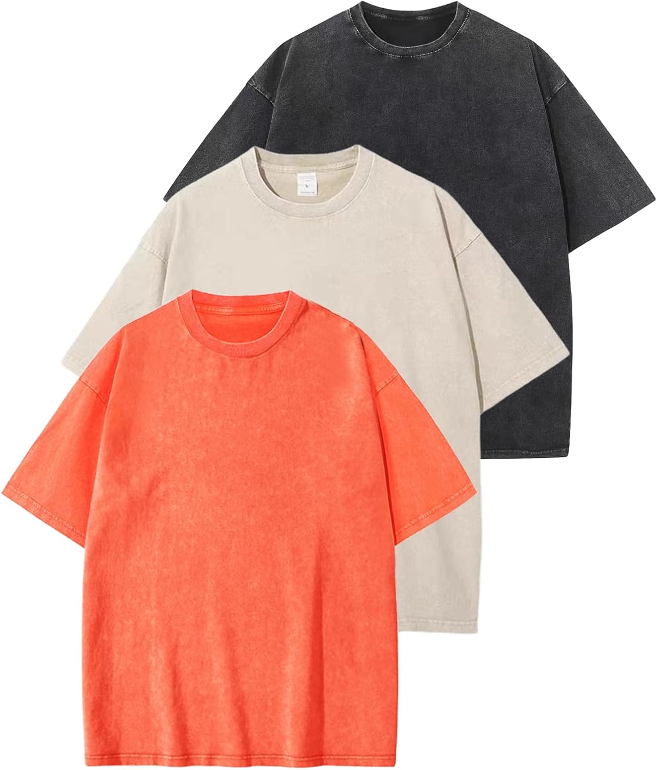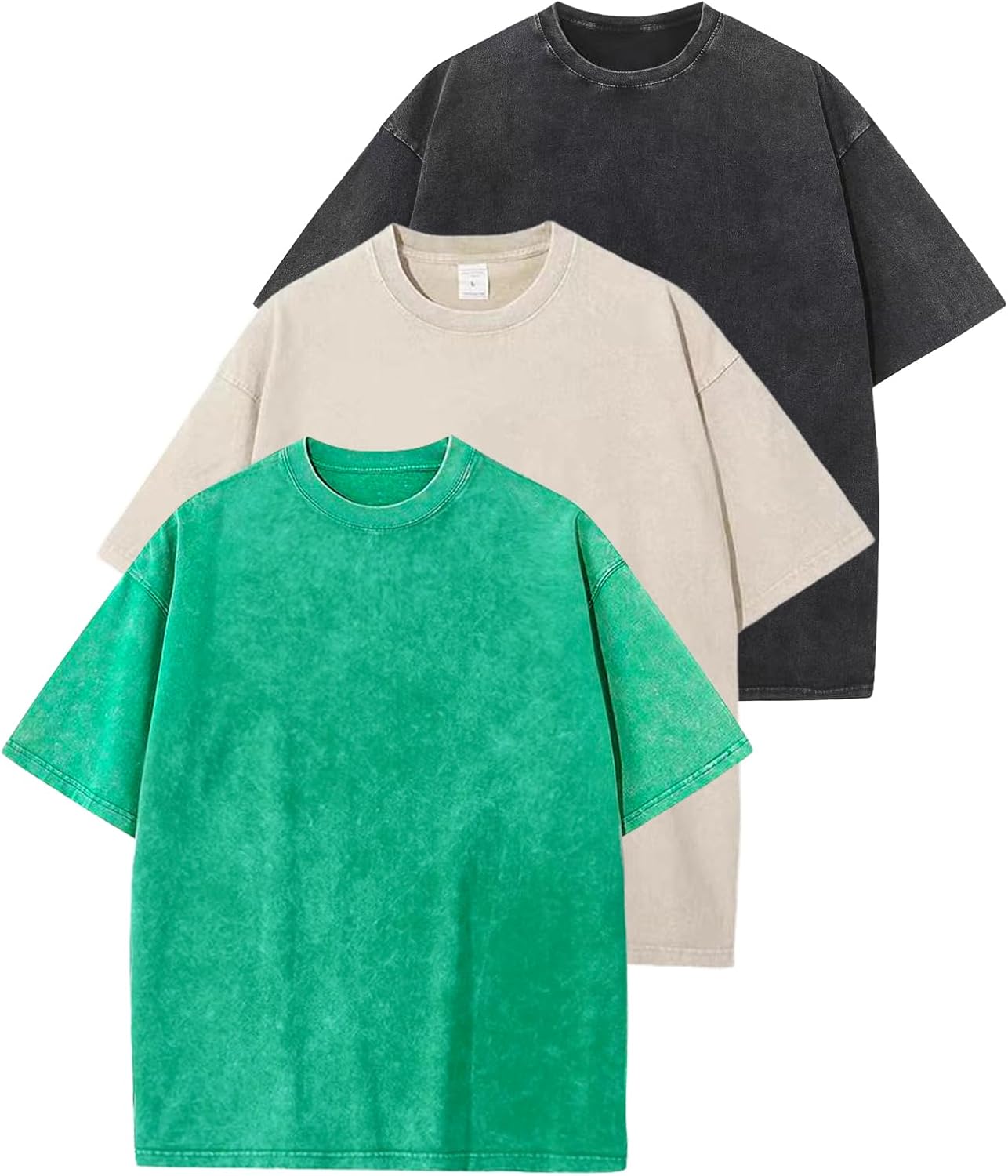 Arssm 3 Pack Men Oversized T Shirts Vintage Tee Loose Fit Short Sleeve Casual Streetwear Baggy Washed Unisex Tops