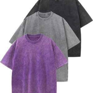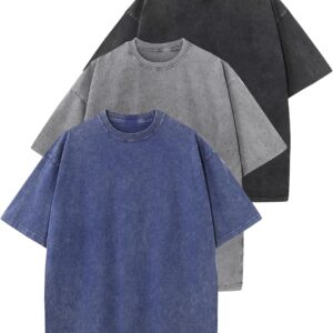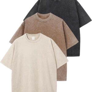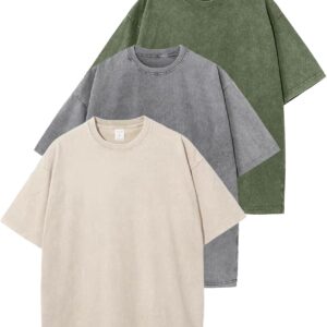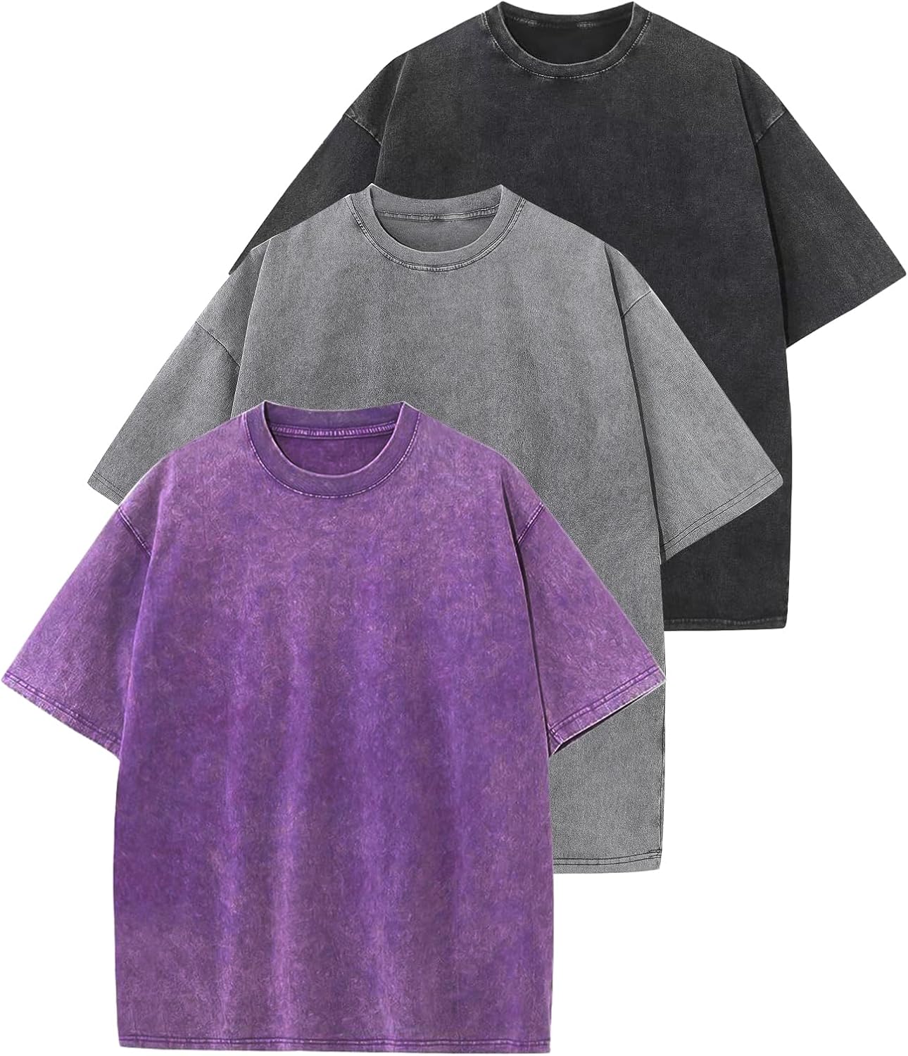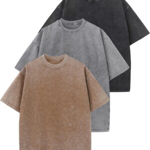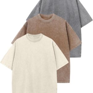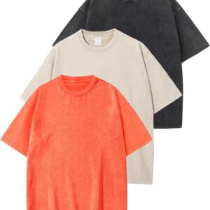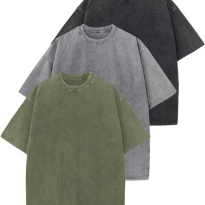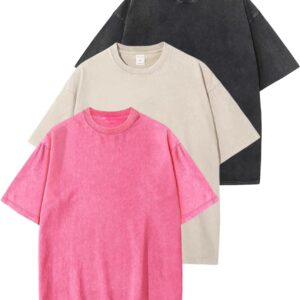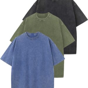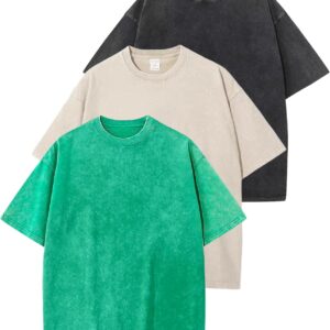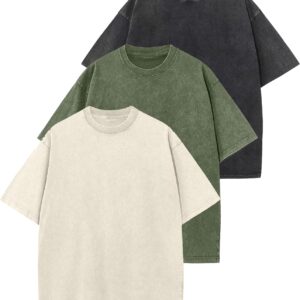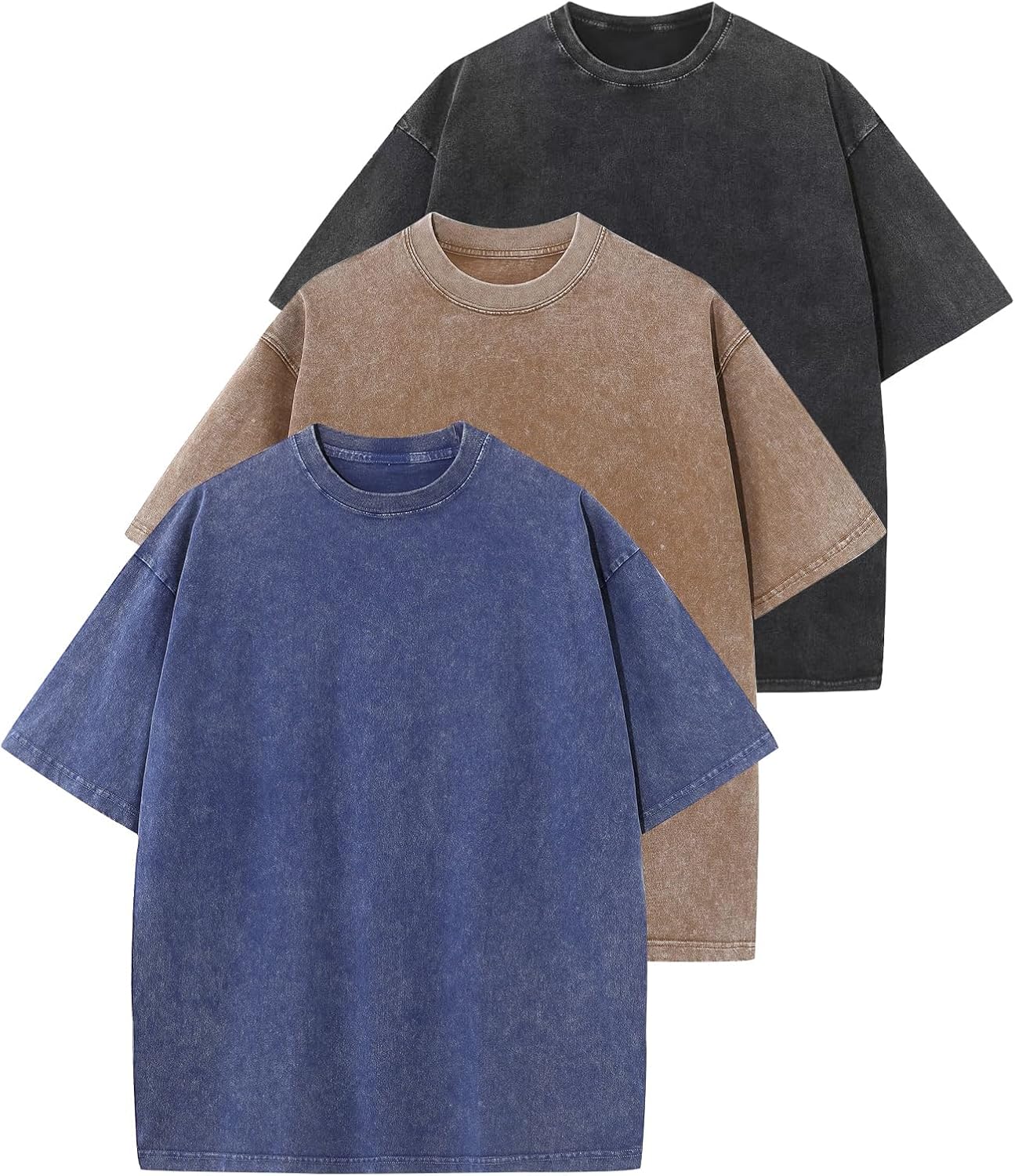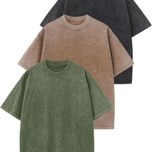 Arssm 3 Pack Men Oversized T Shirts Vintage Tee Loose Fit Short Sleeve Casual Streetwear Baggy Washed Unisex Tops