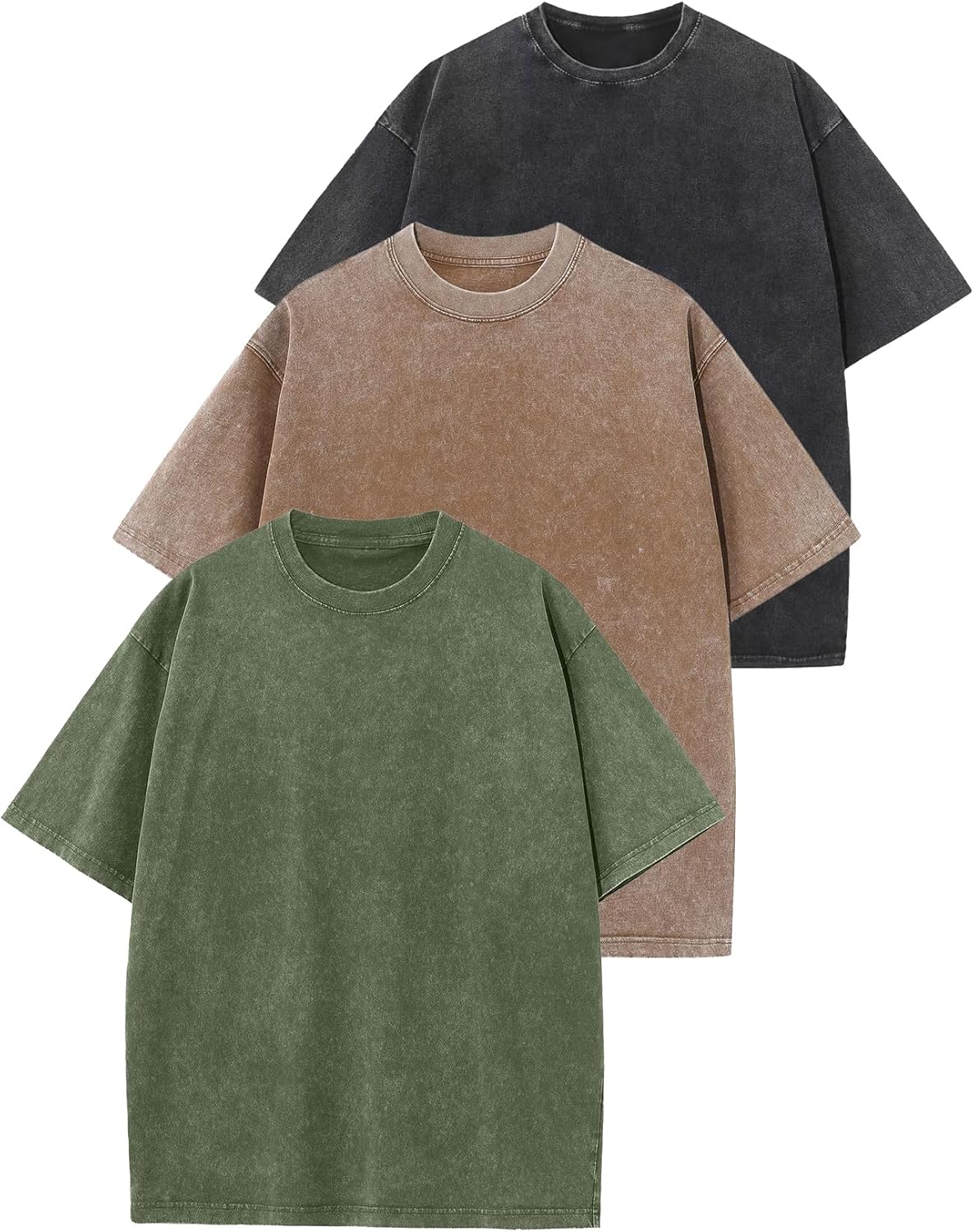 Arssm 3 Pack Men Oversized T Shirts Vintage Tee Loose Fit Short Sleeve Casual Streetwear Baggy Washed Unisex Tops quantity