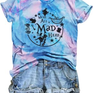 Step into whimsy with our comfy, breathable Alice in Wonderland T-shirts for women, featuring cute designs like the Mad Hatter and Cheshire Cat—perfect for any themed event or casual outing.
