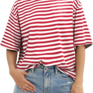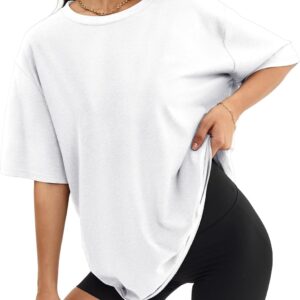 ATHMILE Womens Oversized T Shirts Loose Fit Crewneck Short Sleeve Tops Summer Casual Blouse Y2K 2025 Basic Tee Beach