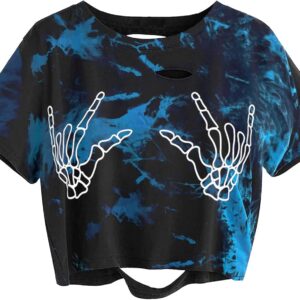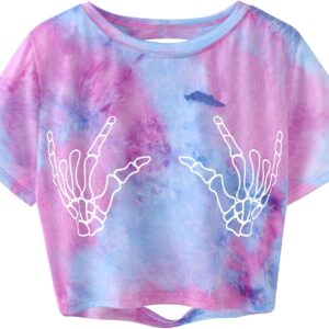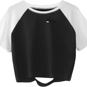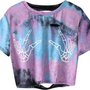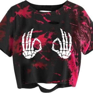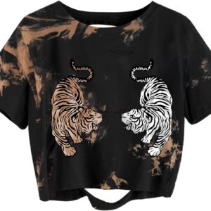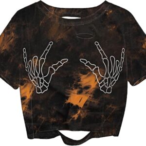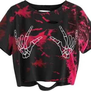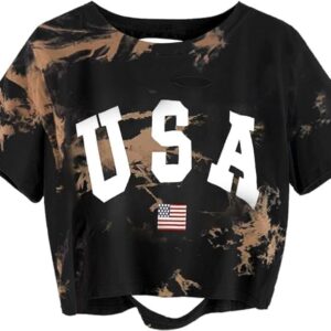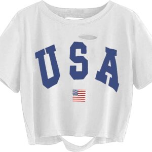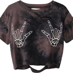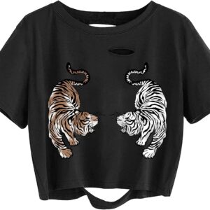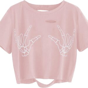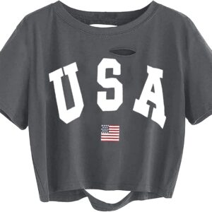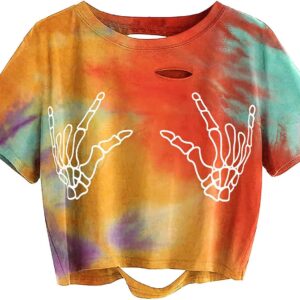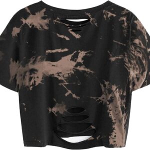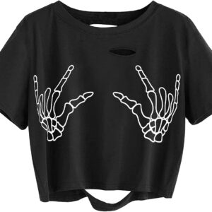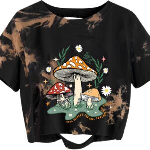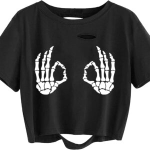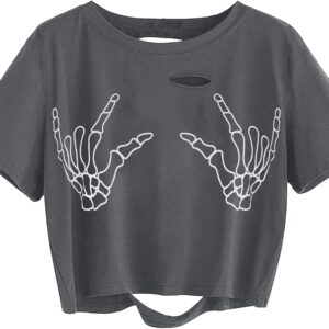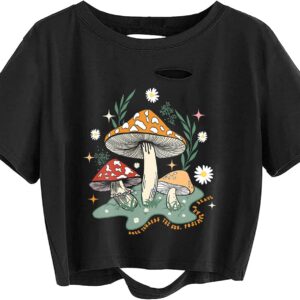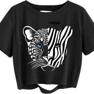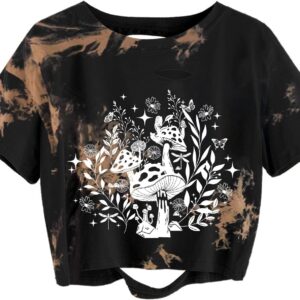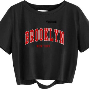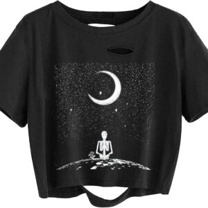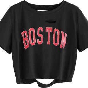 Graphic Print Crop Top for Women Juniors Loose Summer Distressed Tee Oversized T-Shirt