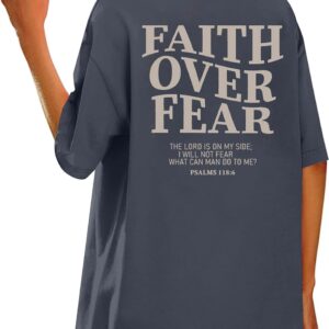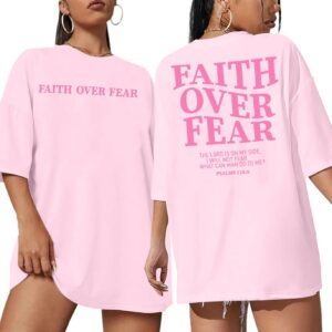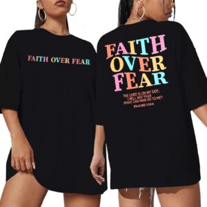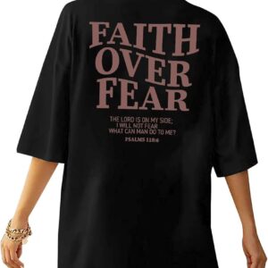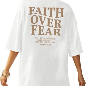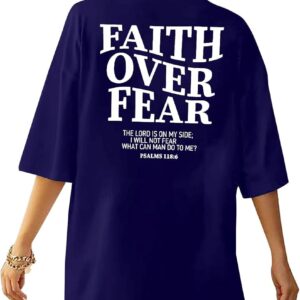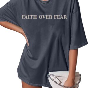 BANGELY Women Oversized Christian Faith Over Fear Casual Drop Shoulder Tops