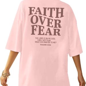 BANGELY Faith Over Fear Tshirt Women Oversized Christian Religious Sayings Tees