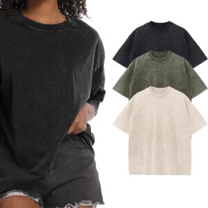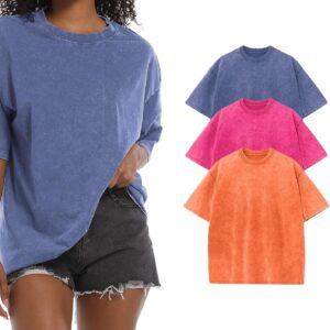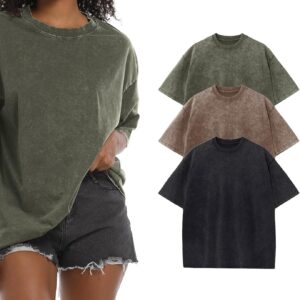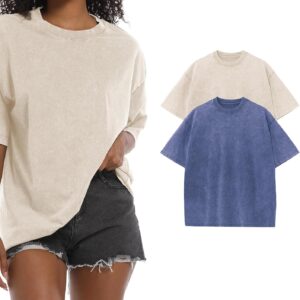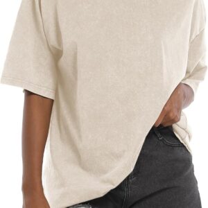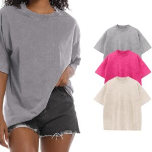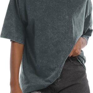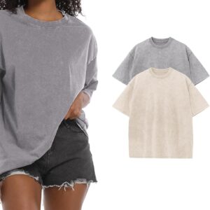 BINTEHGS Oversized Grunge Vintage t Shirts for Women Short Sleeve Cotton Casual Baggy Tees Teens Trendy Crew Neck Loose Tops