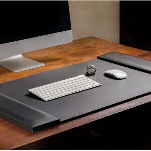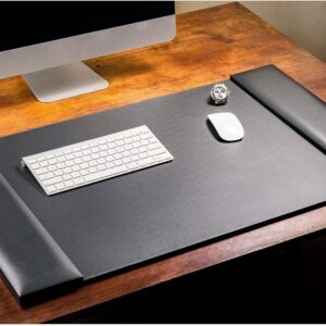Black Leather 34″ x 20″ Desk Mat with Folding Side Rails