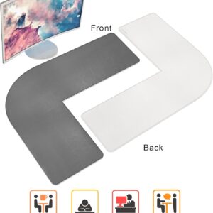 Chihein Gaming Desk Mat L shape 53.2” x 65” x 19.7” Corner Computer Desk Pad ( Gray/White )