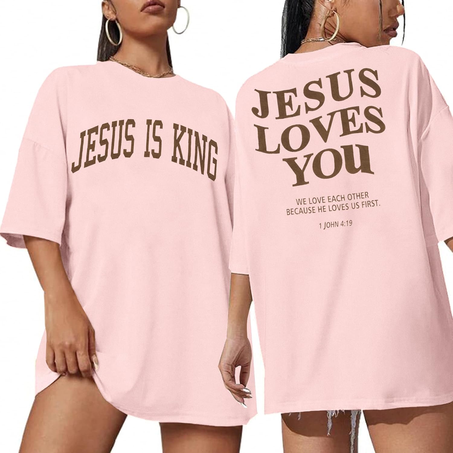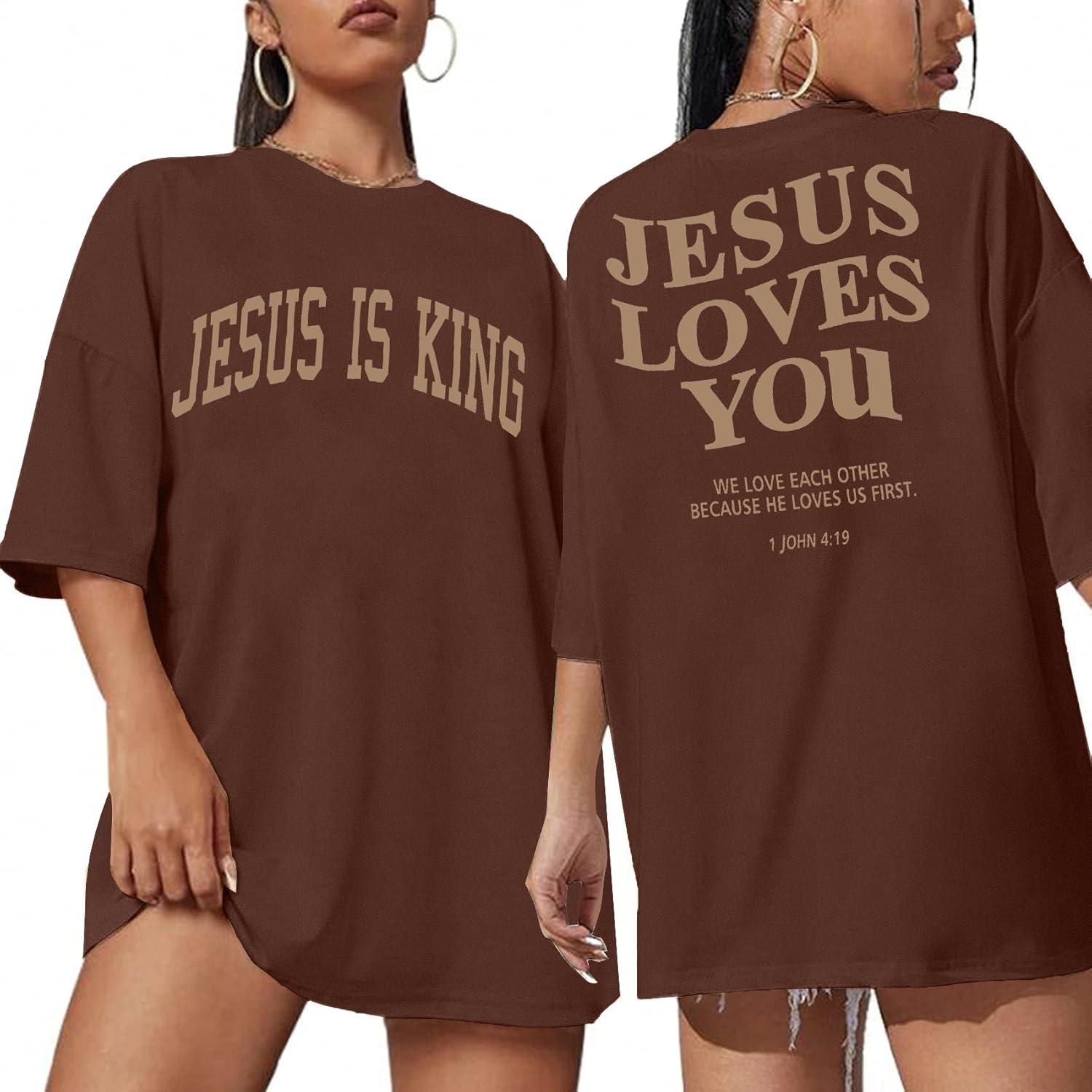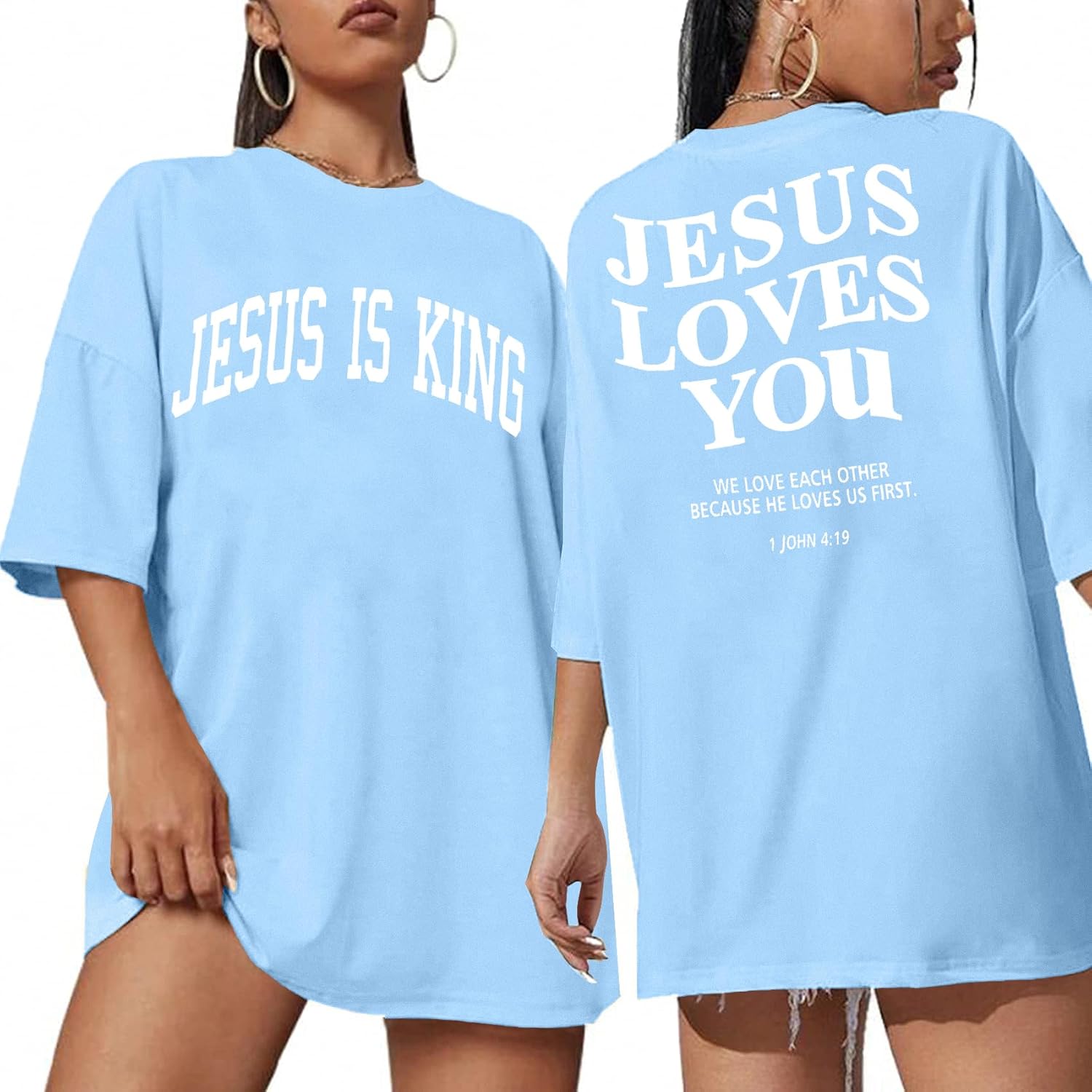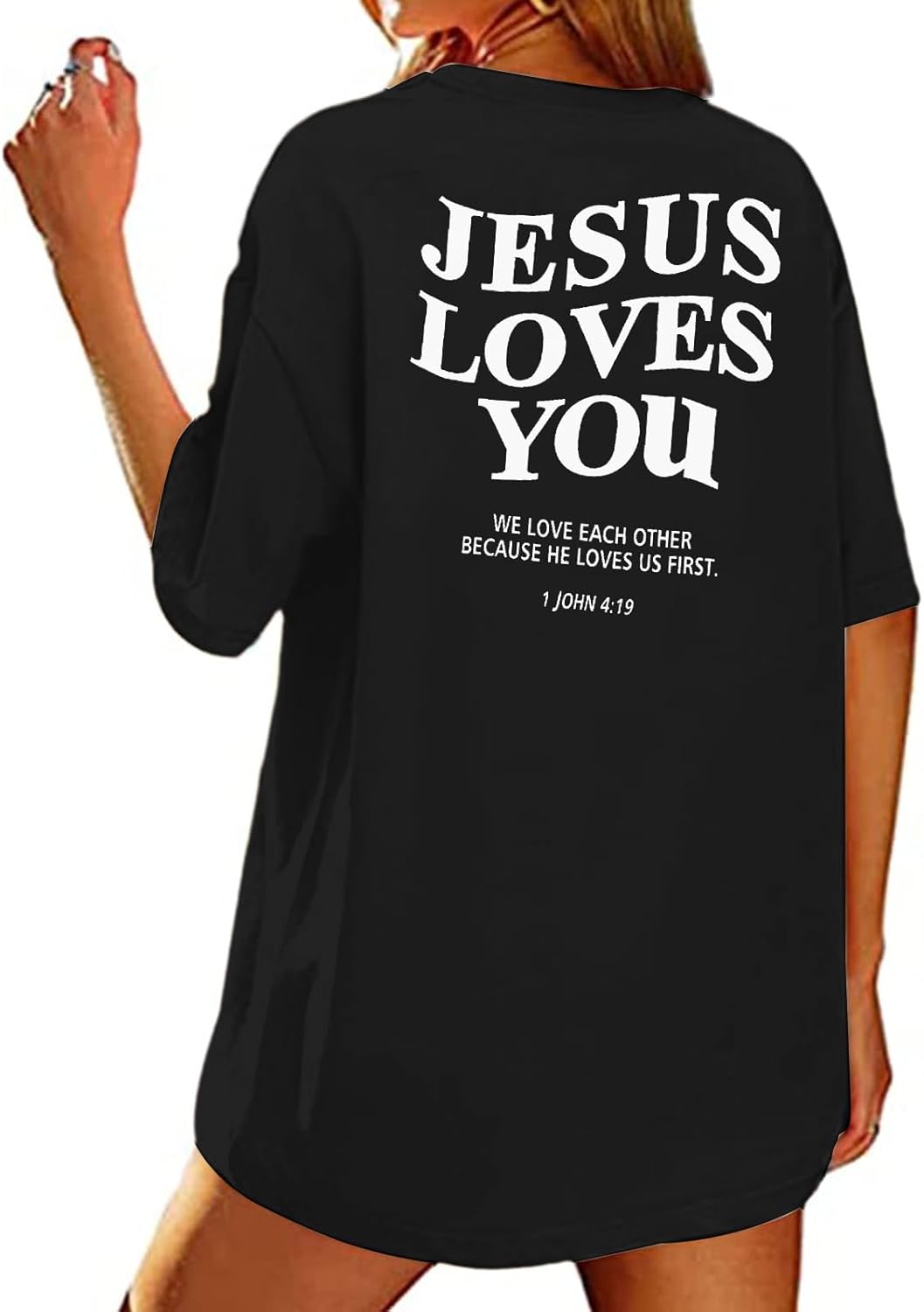 Christian Shirt Women Oversized Jesus Tshirt Jesus Love You Shirts Jesus Faith Tops Bible Verse Inspirational Tee
