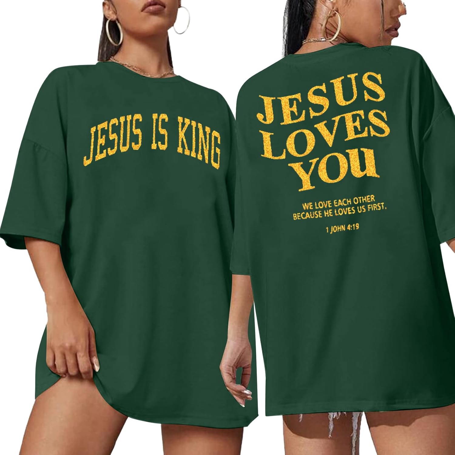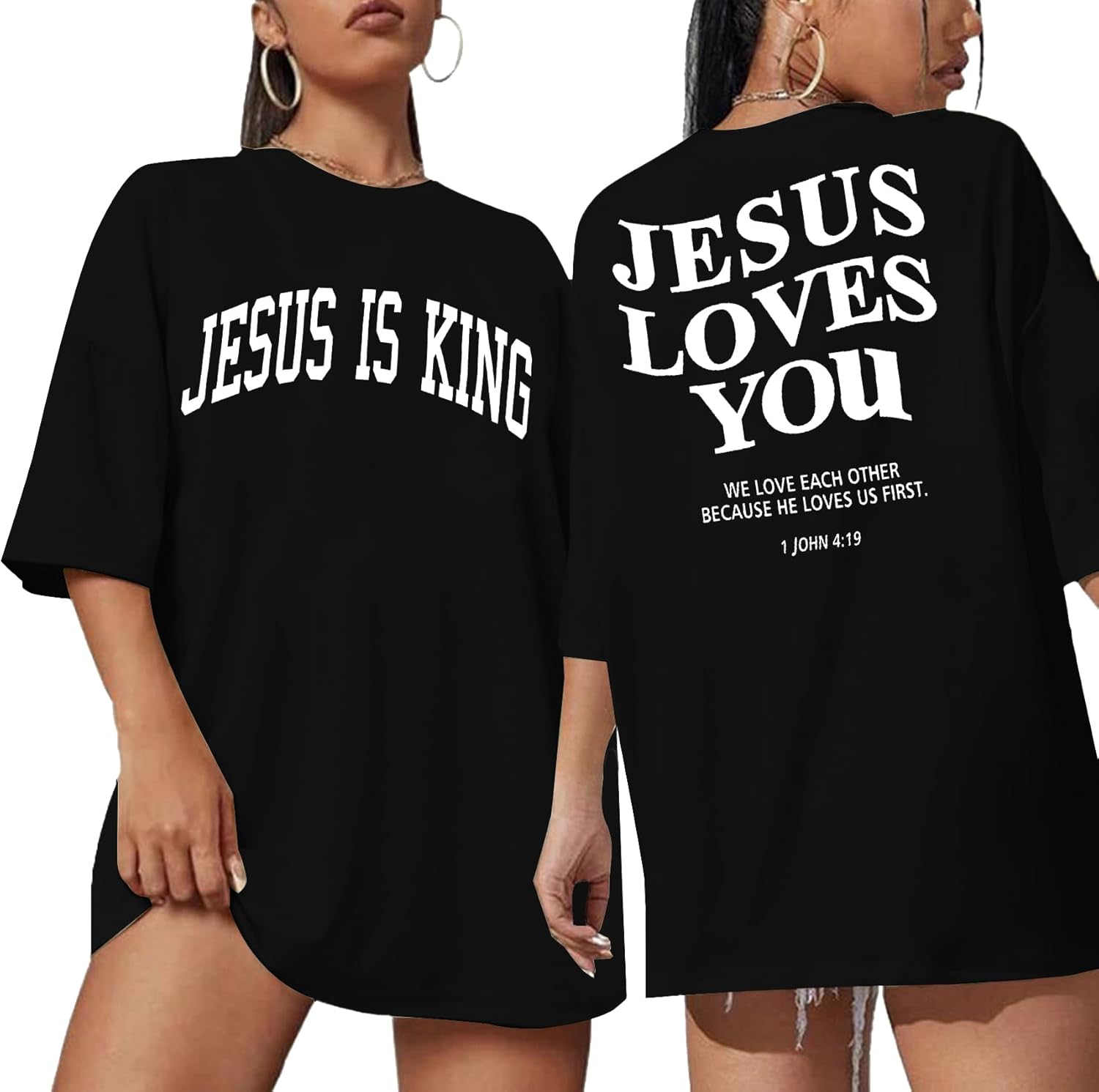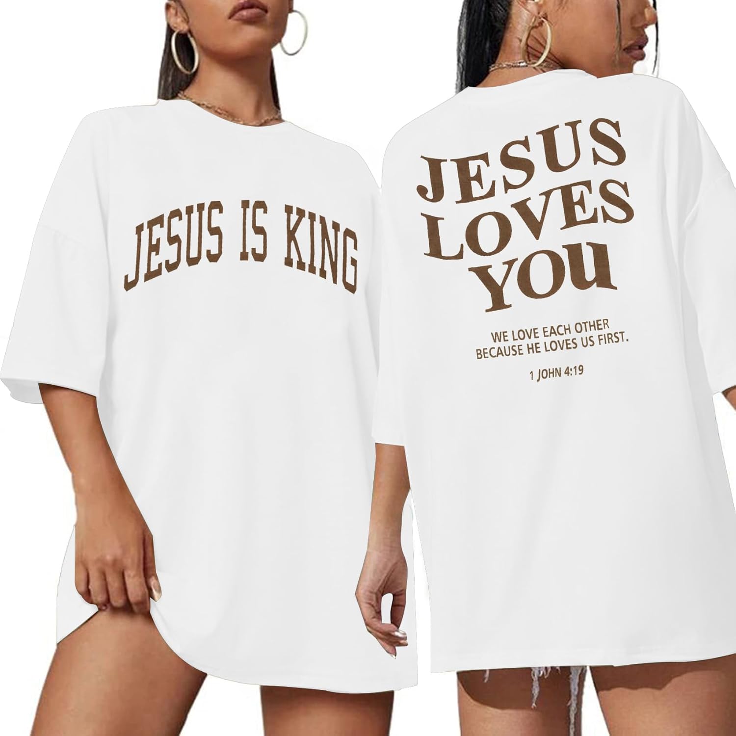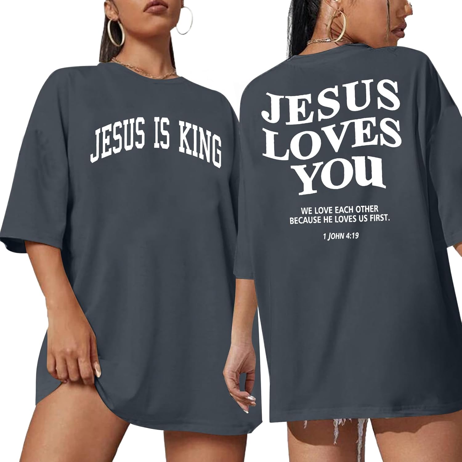 Christian Shirt Women Oversized Jesus Tshirt Jesus Love You Shirts Jesus Faith Tops Bible Verse Inspirational Tee