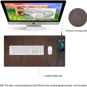 Contacts Full Grain Leather Wireless Charging Desk Mat with 15W Wireless Charger Type C Chargering Port Computer Desk Pad Large Mouse Pad 80×40 cm