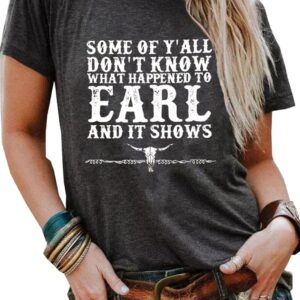 - 💖【Feature】: The unique and catchy phrase “Some of Y’all Don’t Know What Happened to Earl and It Shows” is printed on the front, adding a fun and quirky touch to your outfit.Wild West Cowboy Tee,Vintage Country Music Shirt,Horse Riding Tshirt, Retro Steer Skull Graphic Tees Tops, Funny Western Graphic Tees, Summer Short Sleeve Shirt Tops, Cowgirls Short Sleeve T-Shirt for Women, Rodeo Road Shirt Tops, Gift Shirt for Country Girl.