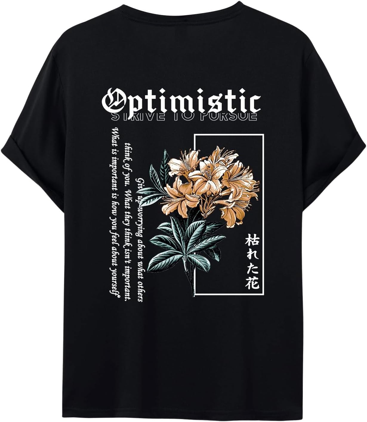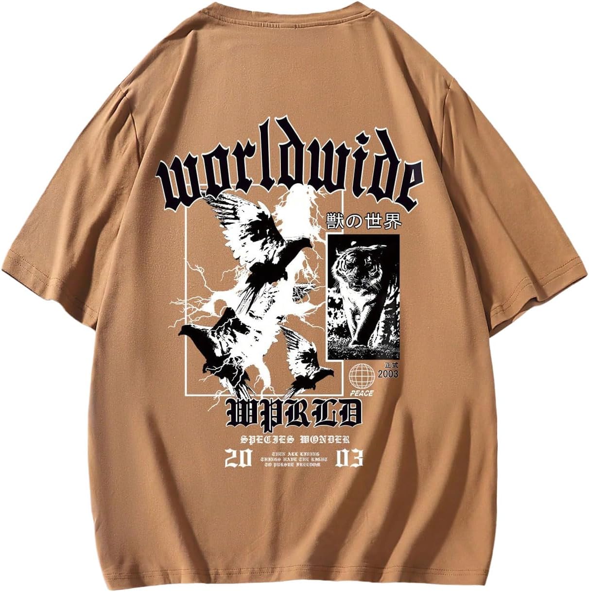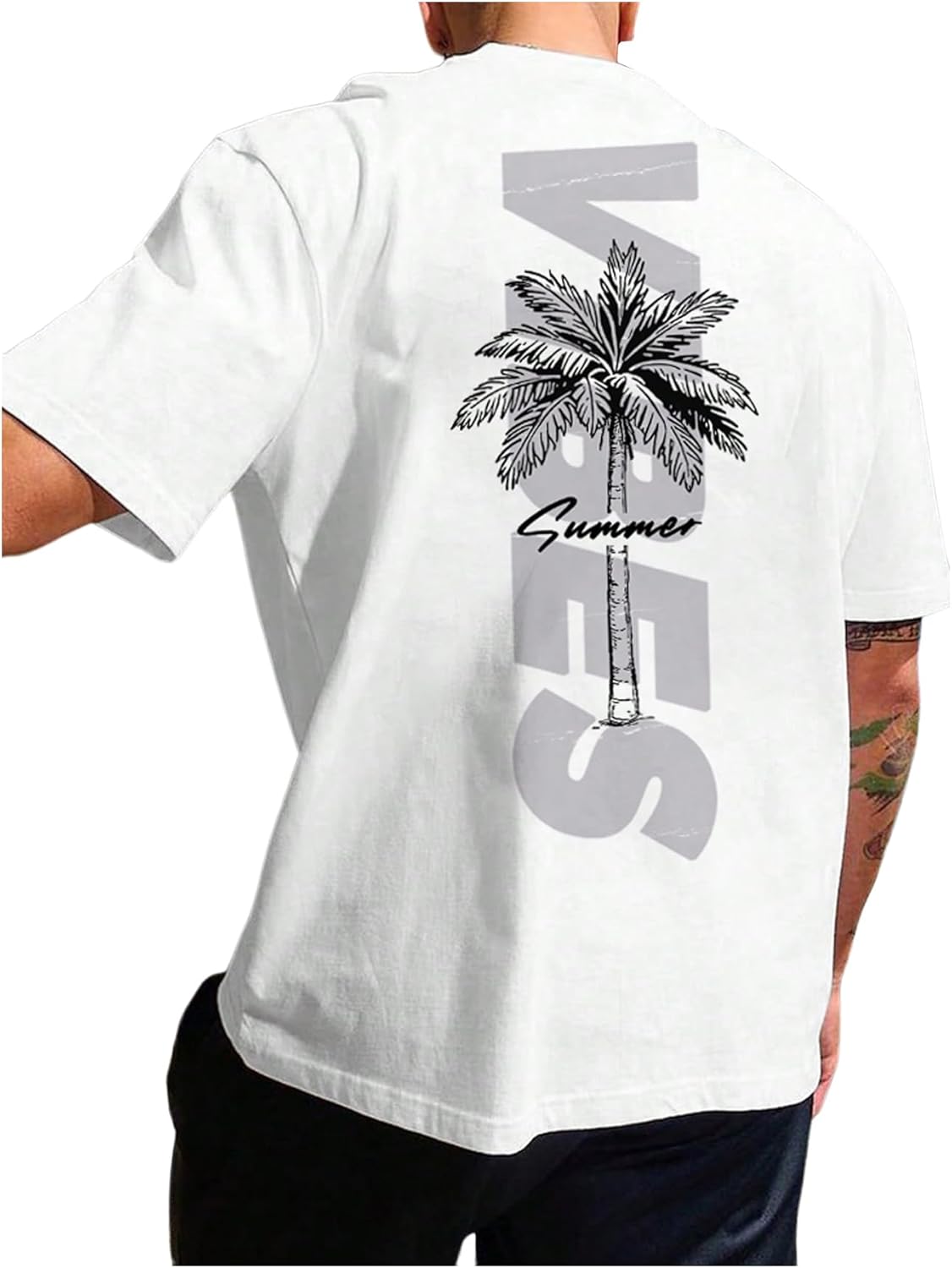 COZYEASE Men’s Letter Graphic Tee Casual Short Sleeve Round Neck Summer Shirt Streetwear Top