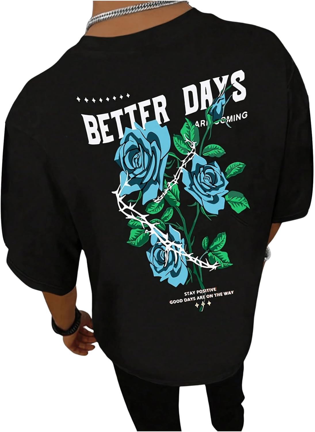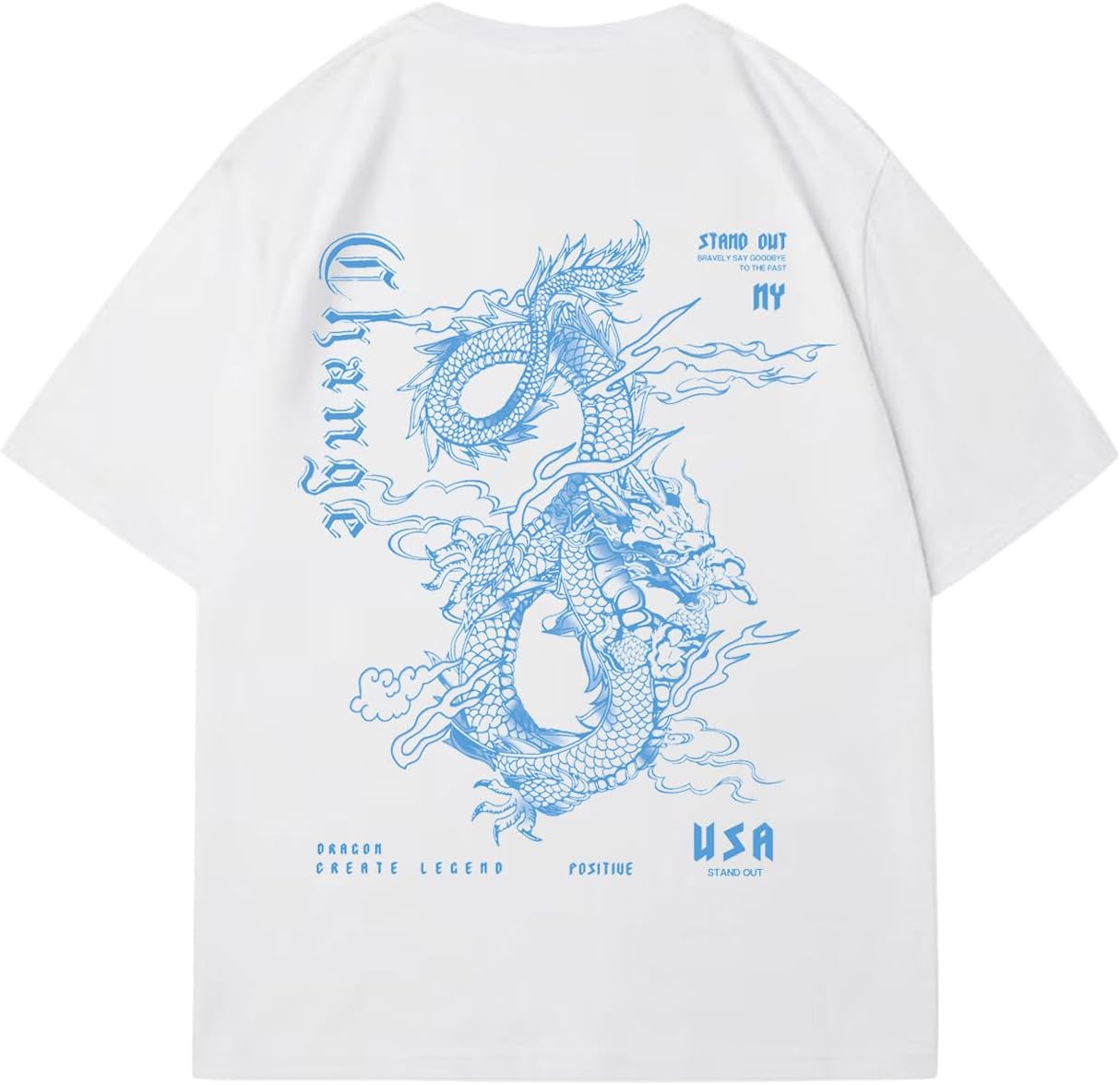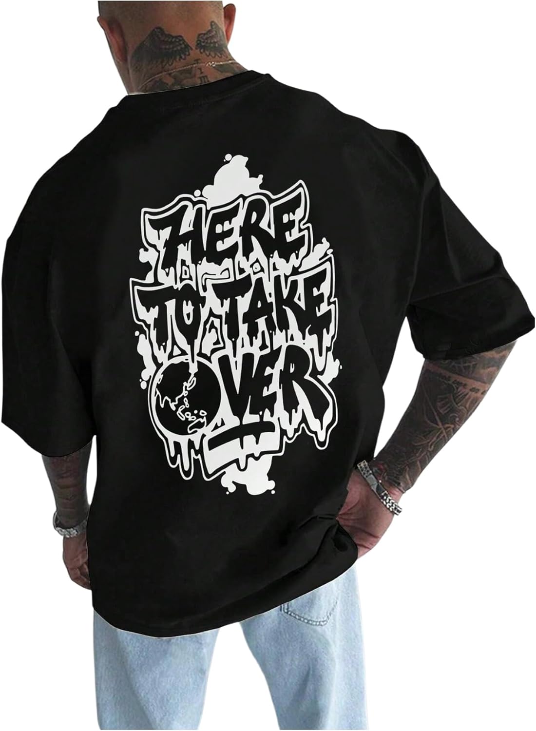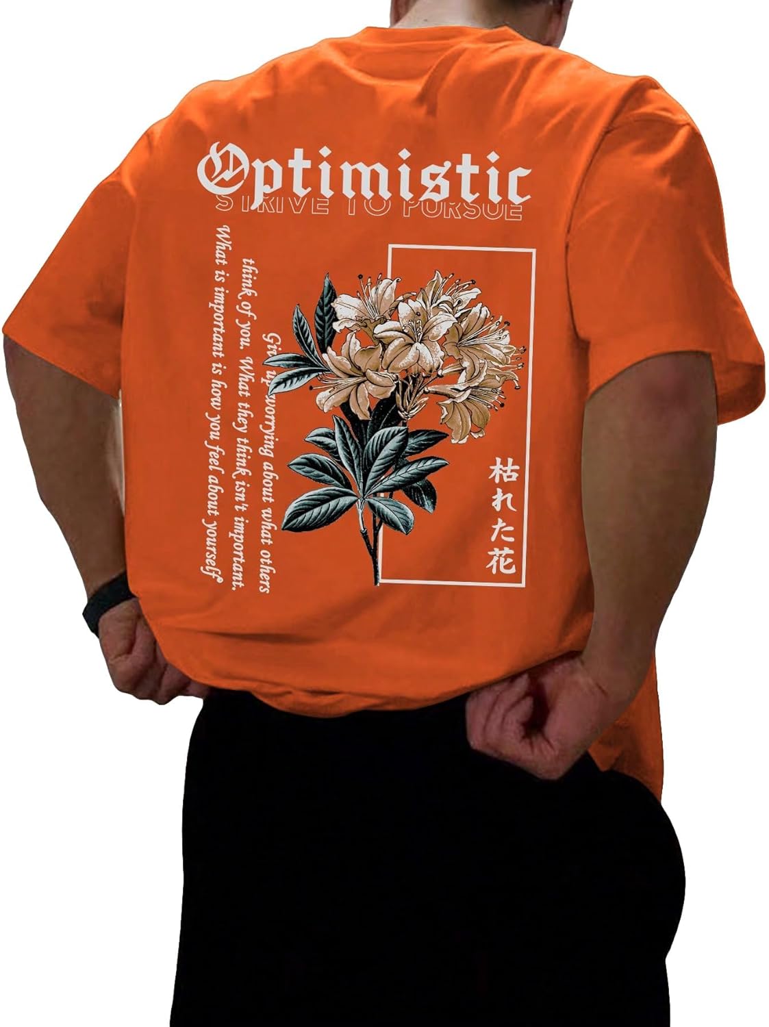 COZYEASE Men’s Letter Graphic Tee Casual Short Sleeve Round Neck Summer Shirt Streetwear Top