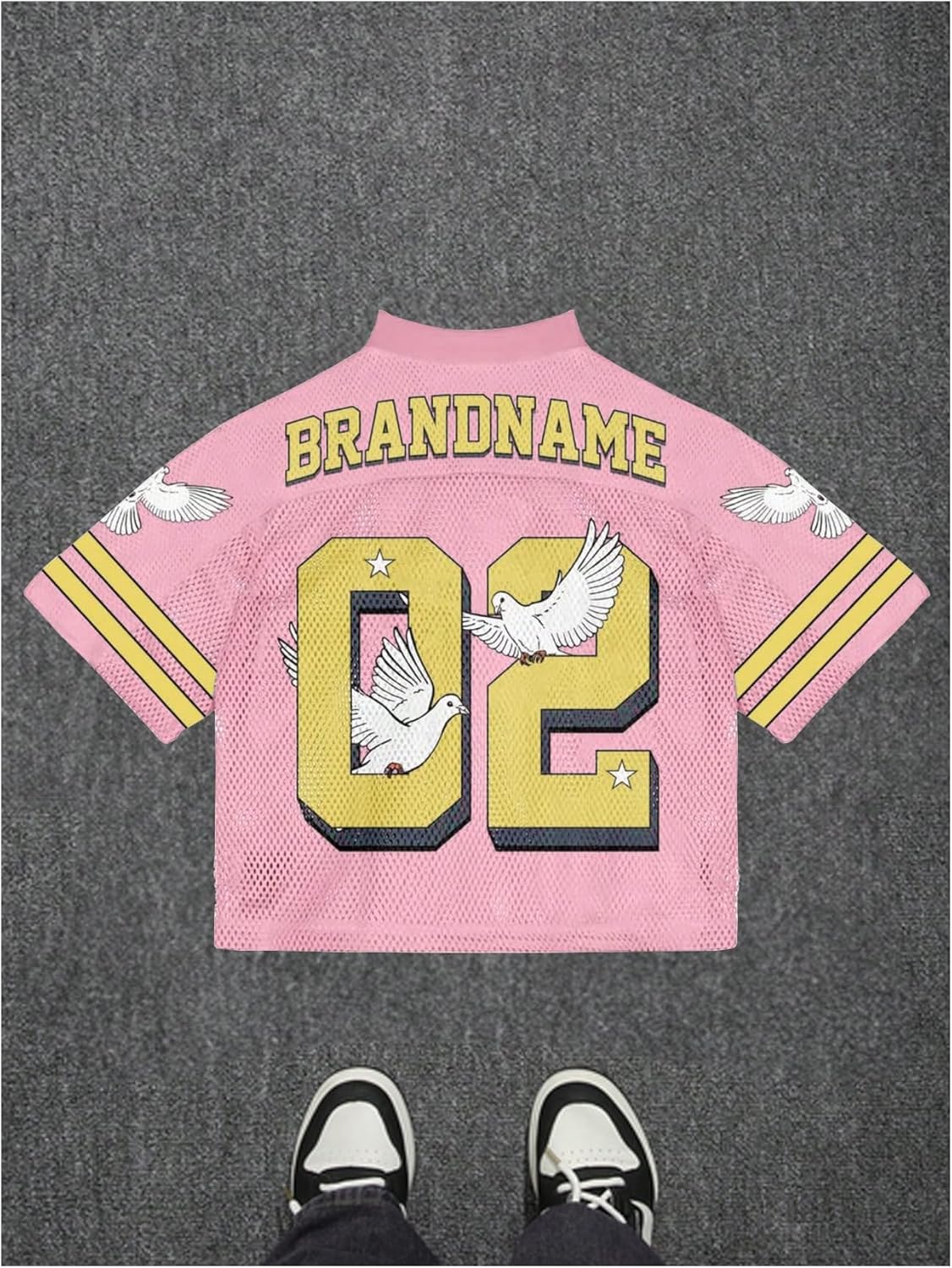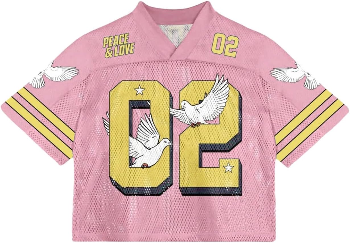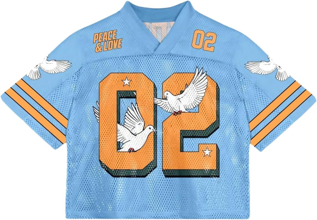 COZYEASE Men’s Y2K Mesh V Neck Jersey Shirts Half Sleeve Striped Number Graphic Tees Sports Tops