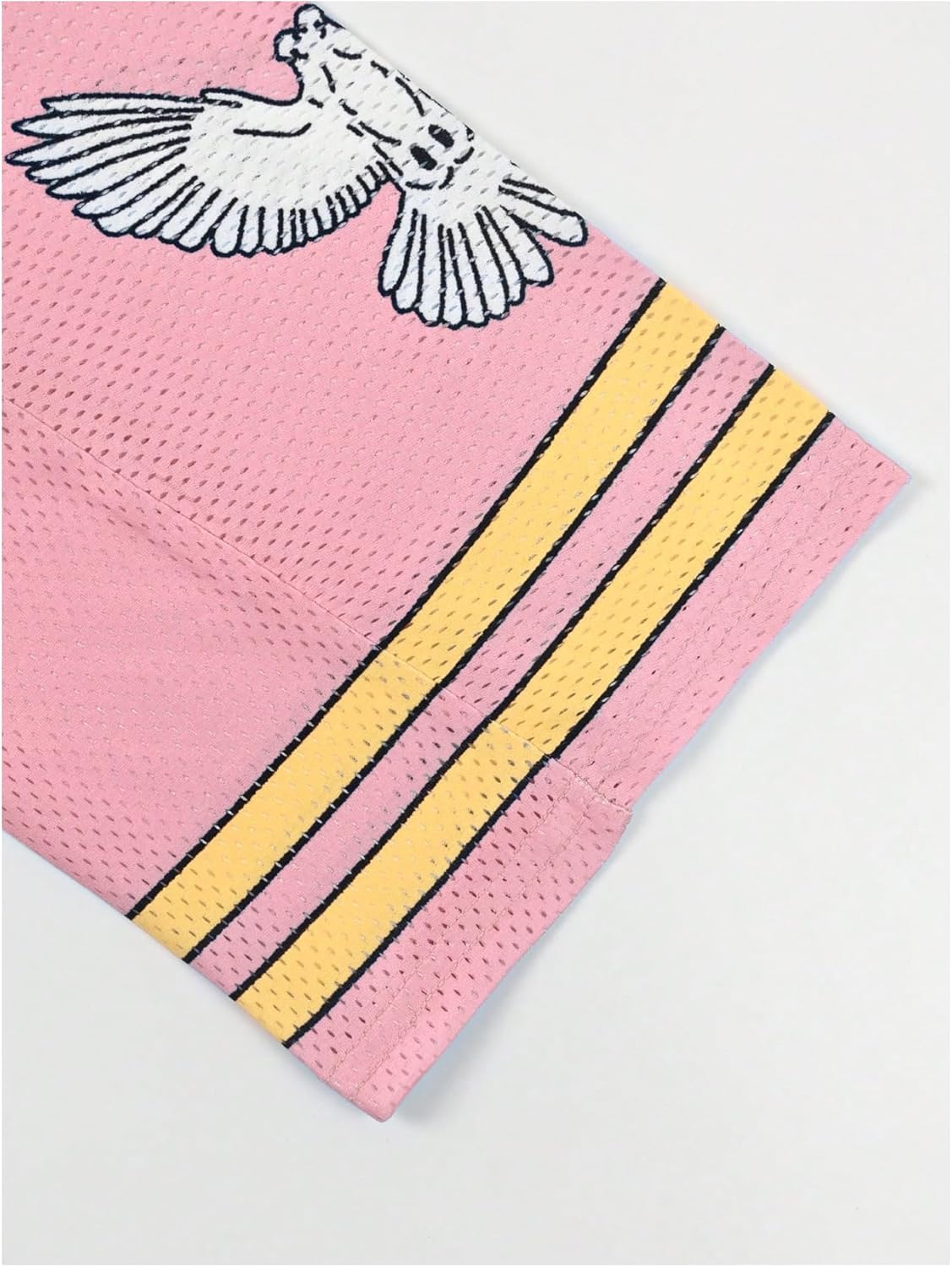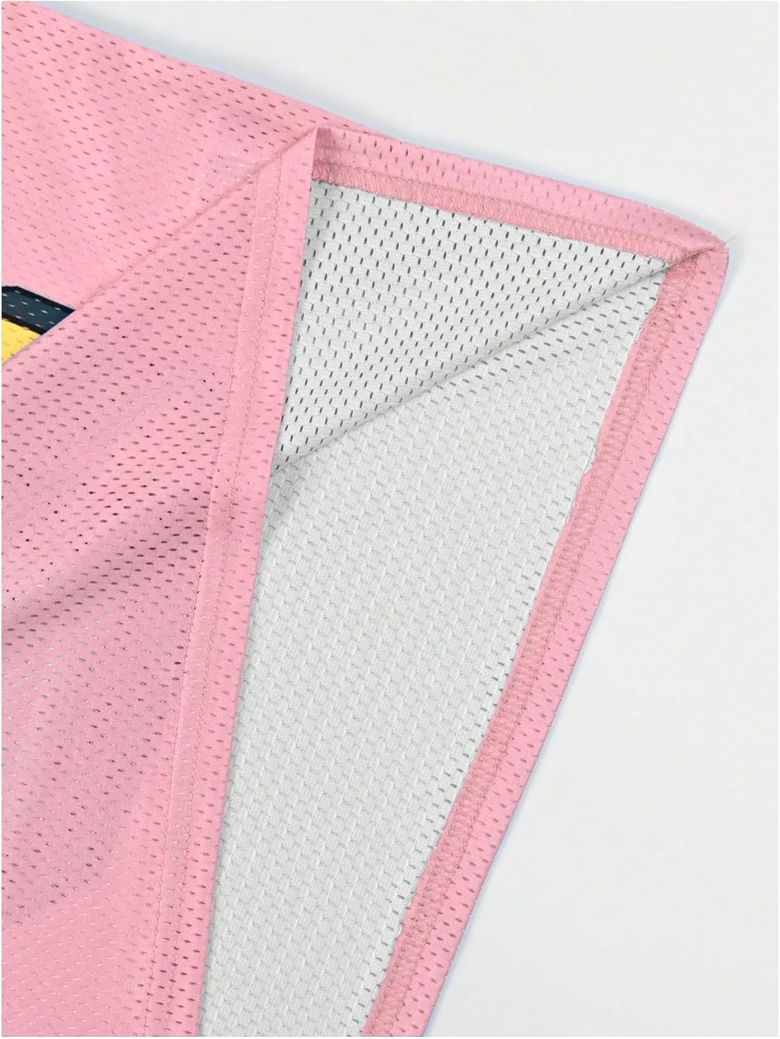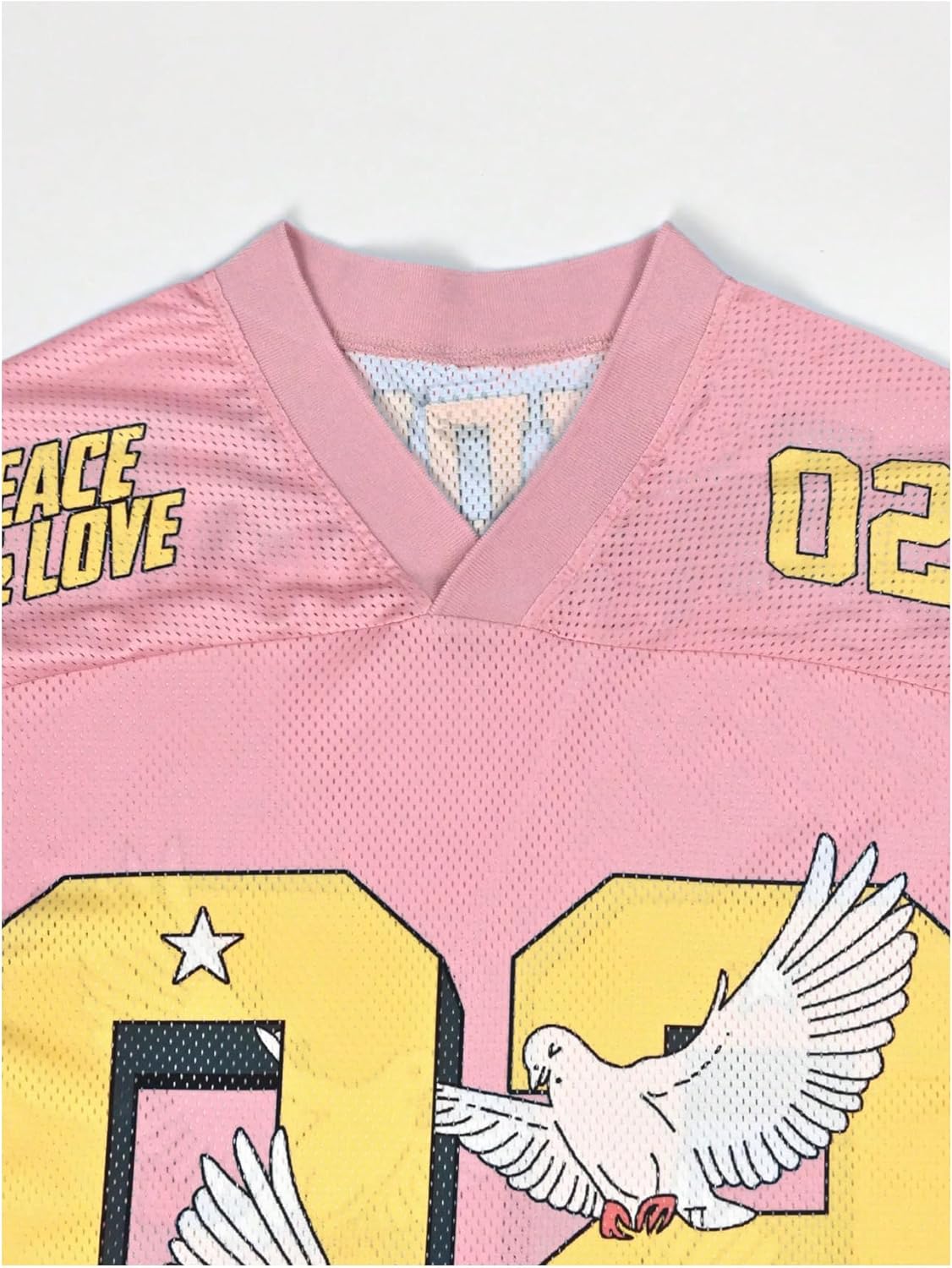 COZYEASE Men’s Y2K Mesh V Neck Jersey Shirts Half Sleeve Striped Number Graphic Tees Sports Tops