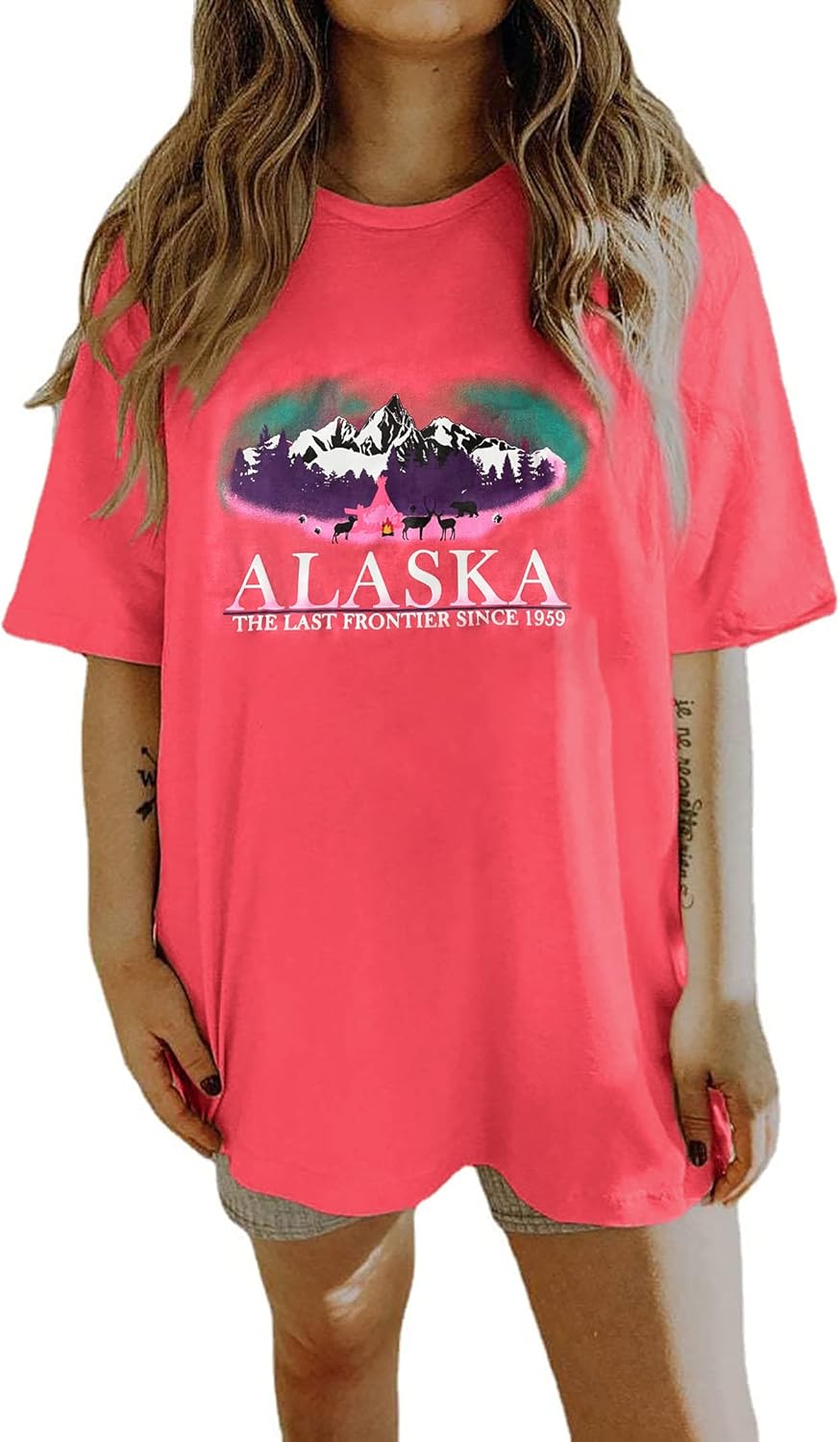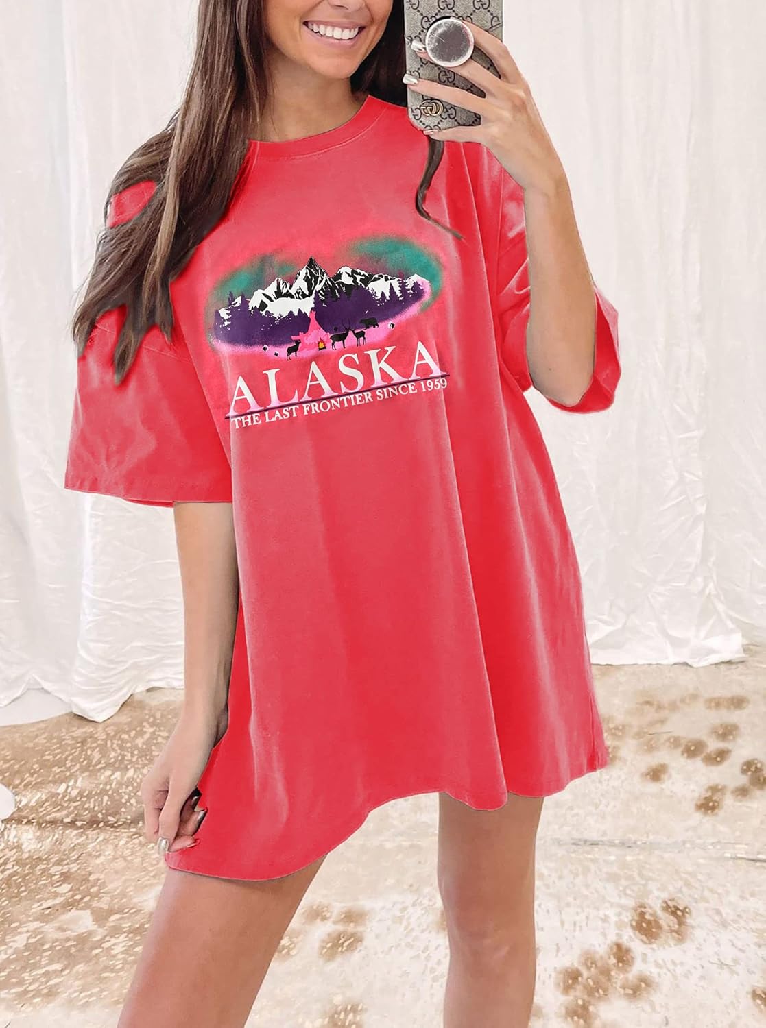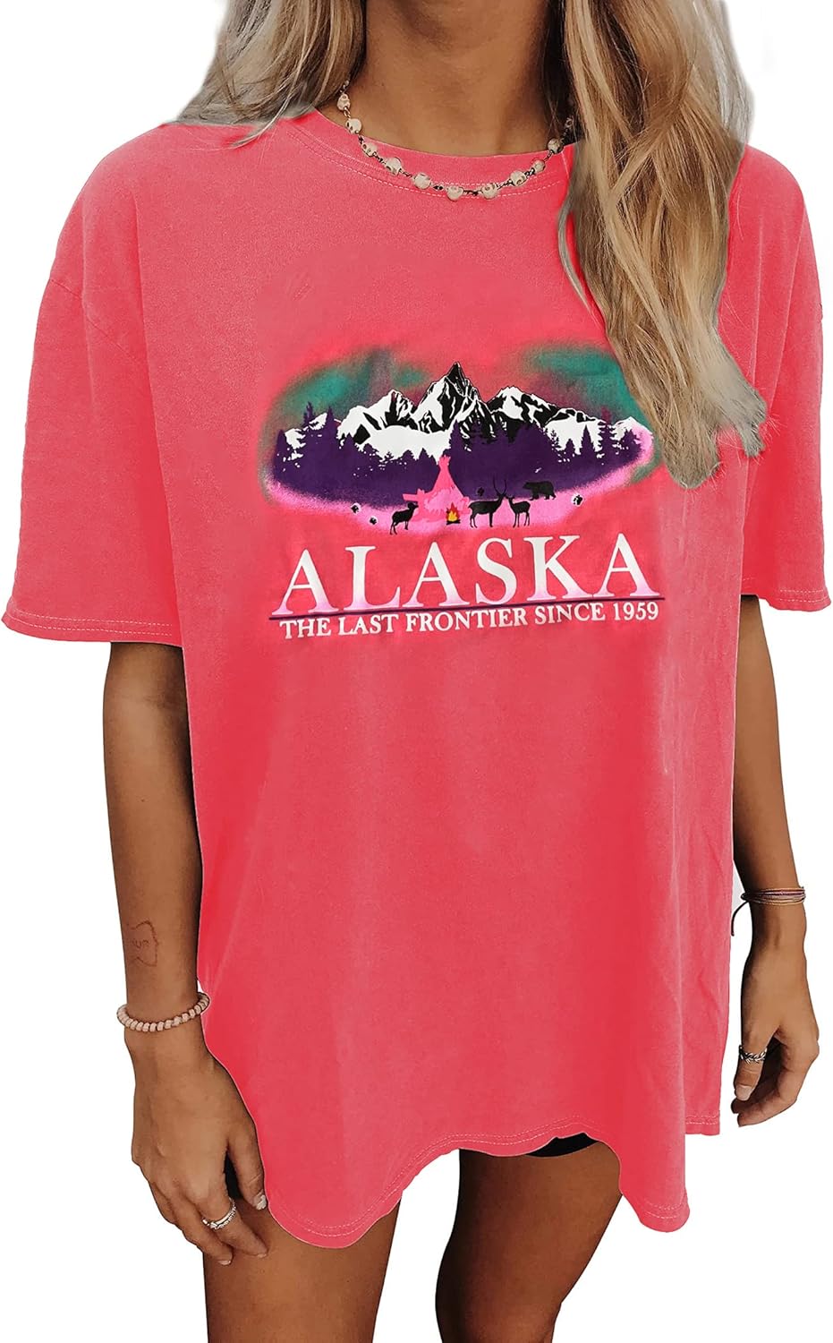 CSDAJIO Women’s Graphic Oversized Tshirt Vintage Half Sleeve Round Neck Baggy Tee Summer Casual Tunic Shirt
