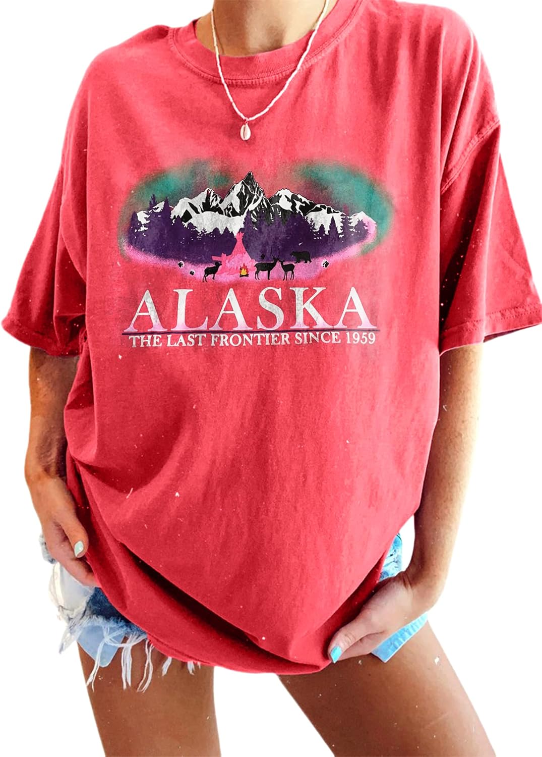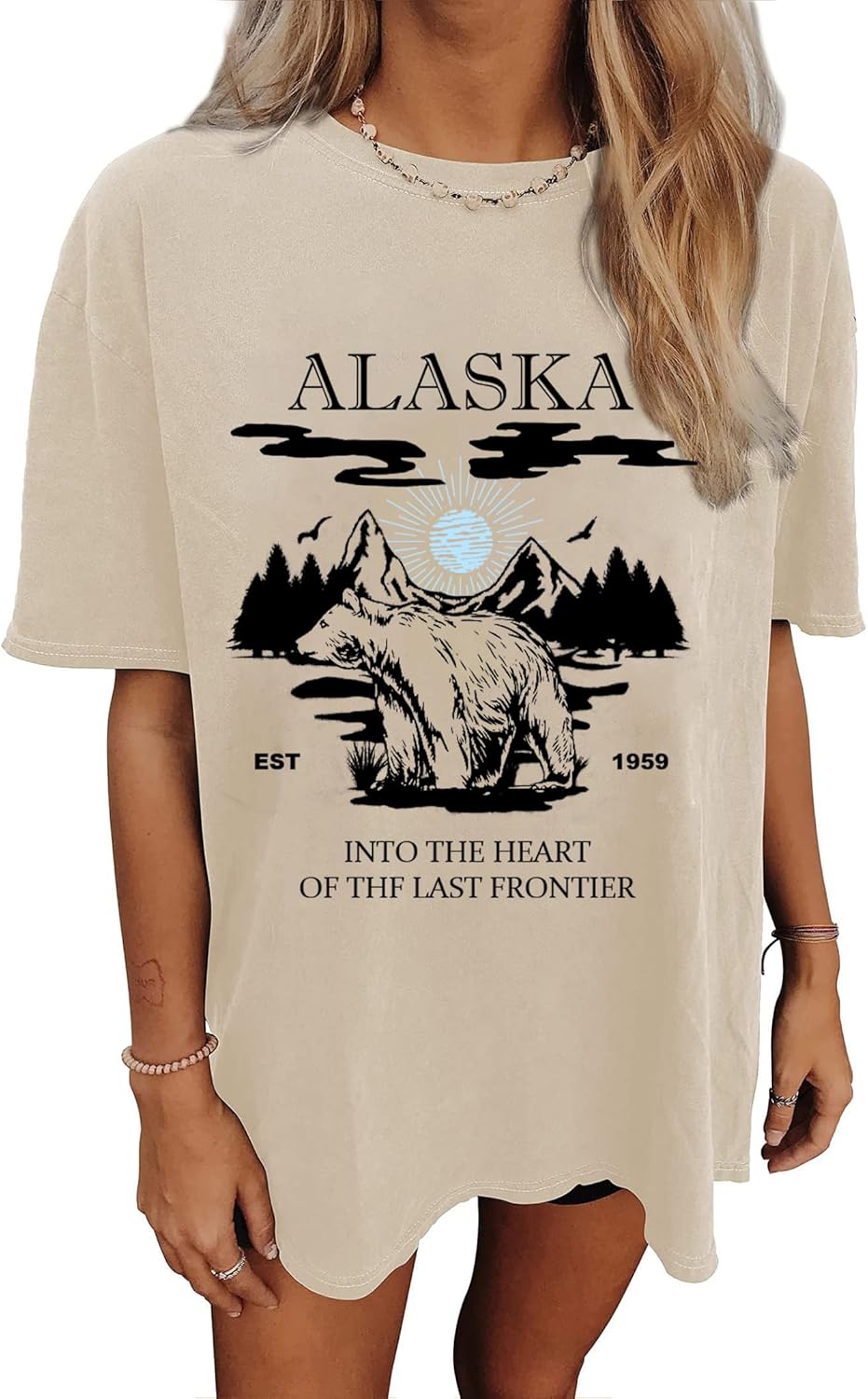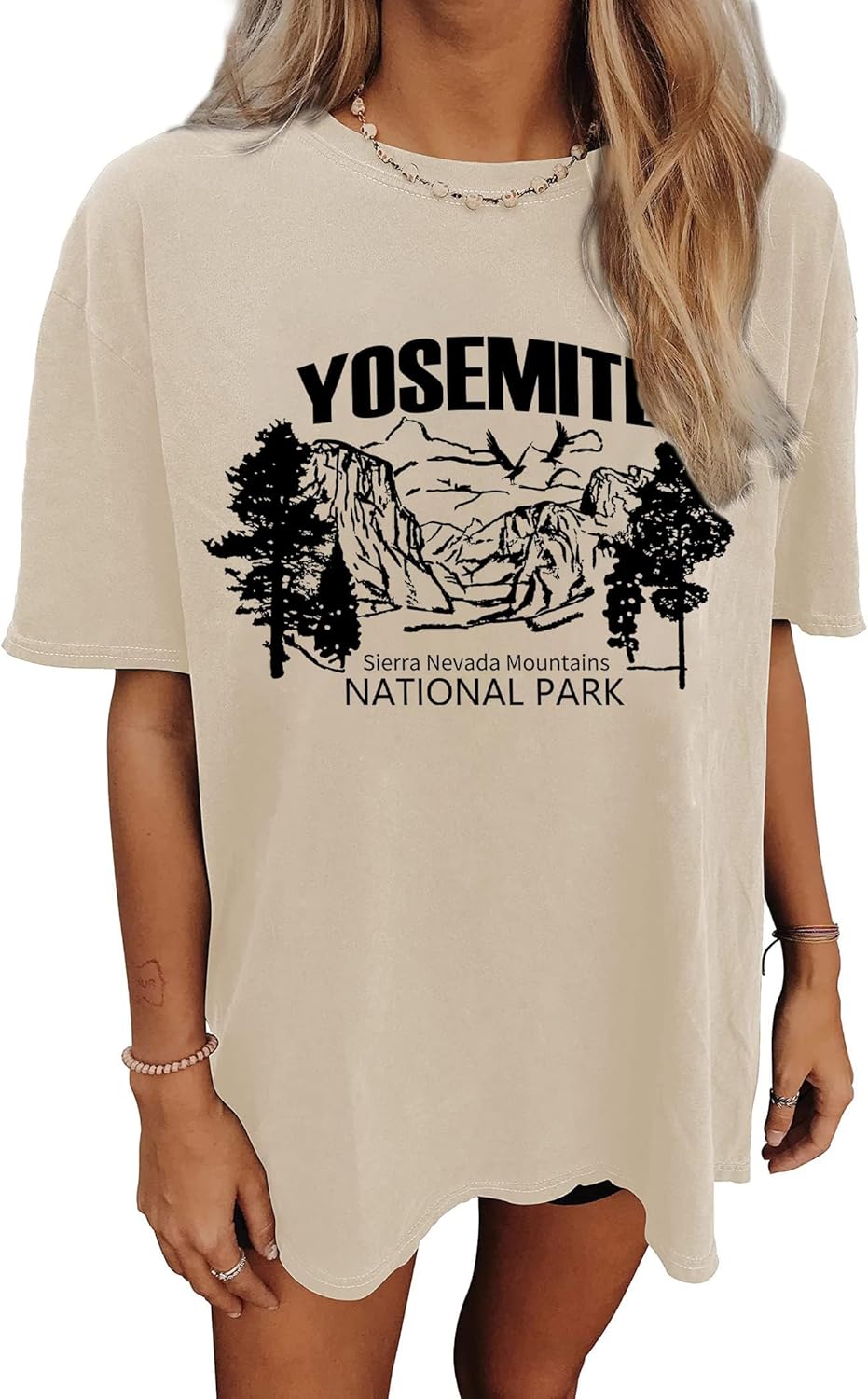 CSDAJIO Women’s Graphic Oversized Tshirt Vintage Half Sleeve Round Neck Baggy Tee Summer Casual Tunic Shirt