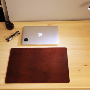 This carefully handcrafted minimalistic leather desk pad will add a stylish look to your working workspace. Made of high-quality leather of Chestnut color this desktop accessory looks smartly luxurious luxury and makes it a perfect gift for your boss, co-worker, or hard working husband/wife.