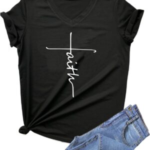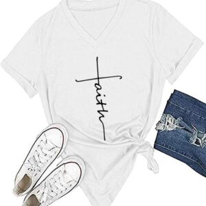 DANVOUY Women’s V-Neck Summer Casual Letters Printed Short Sleeves Graphic
