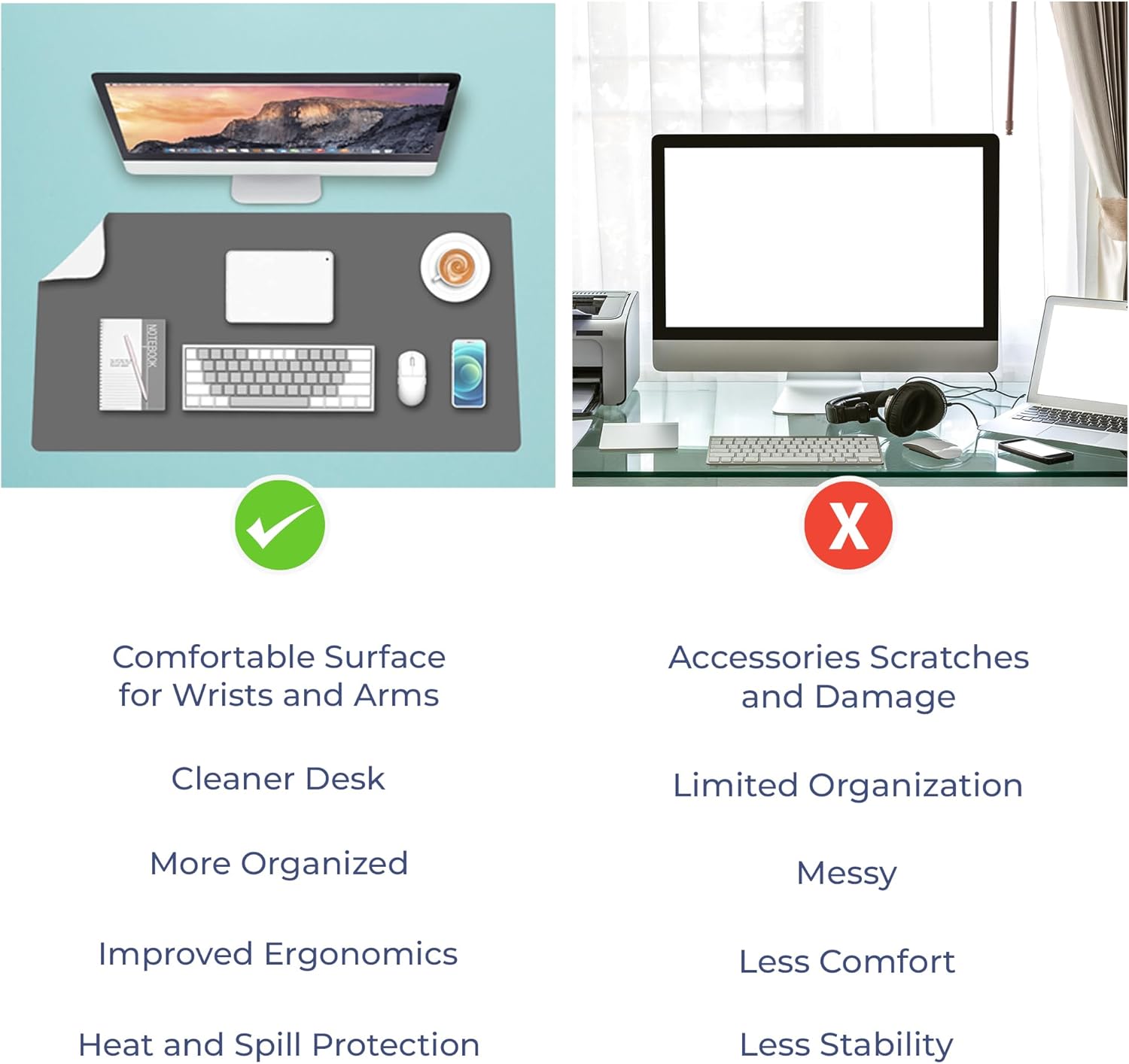 - WATERPROOF: This desk pad protector is also waterproof and heat resistant, making it easy to maintain and clean. Simply wipe the surface with a wet cloth, and it will be looking as good as new.