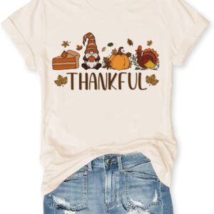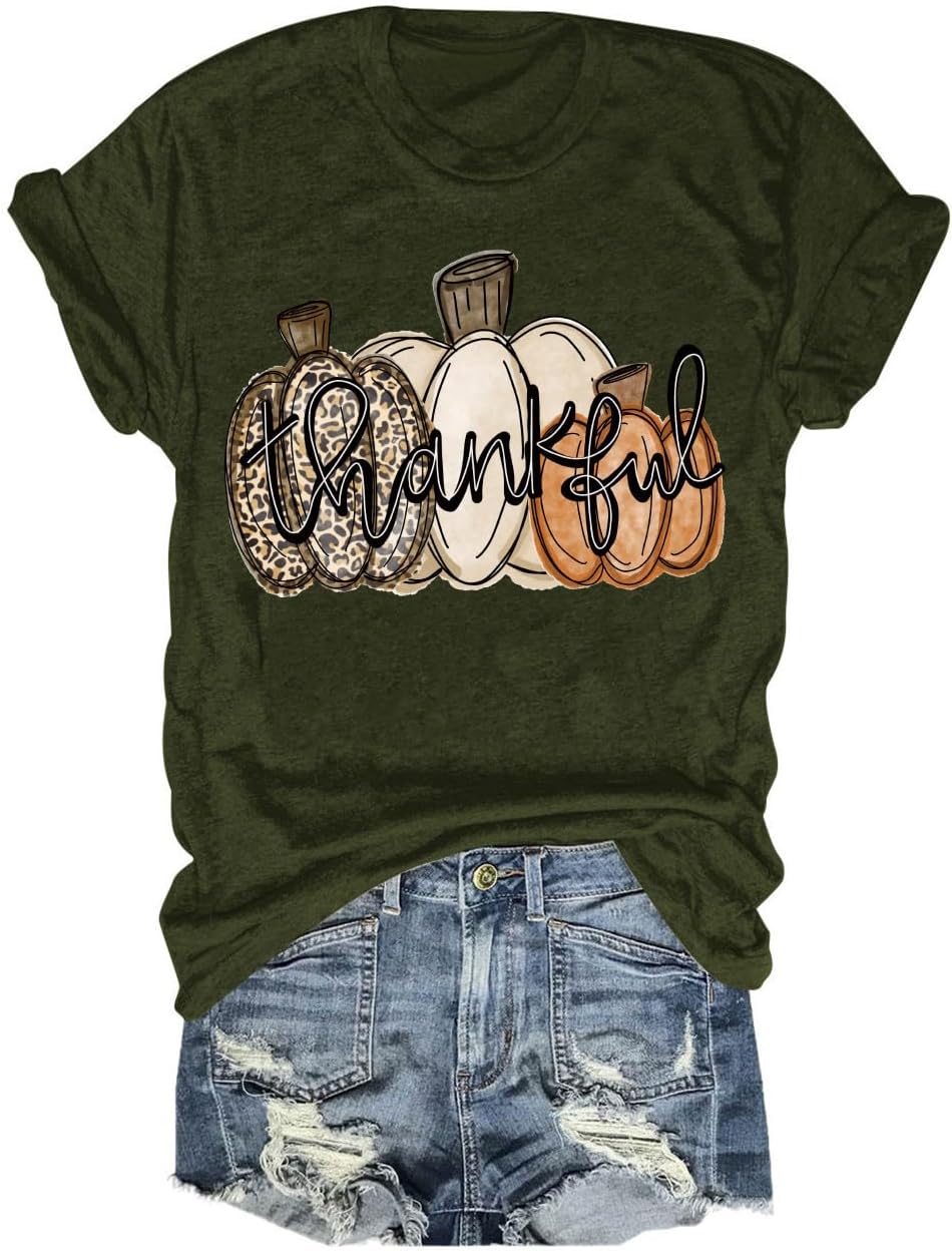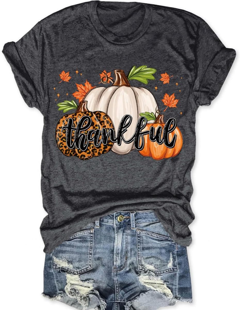 - Features: Women Short Sleeve Crew Neck Fall Shirts;Halloween Thanksgiving Gift Tops Casual Style Autumn T-Shirt Cute Thankful Pumpkin Turkey Graphic Tees