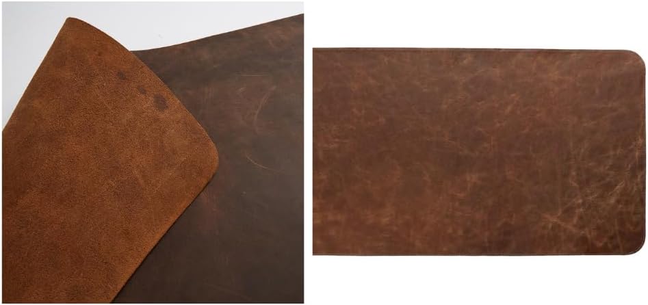 Premium Quality Genuine Leather Desk Pad Protector : Choose from three different sizes ;- 24” x 16”, -Suitable for those who like to write, providing a perfect writing surface, the small size is portable. 32” x 16” :-Perfect storage of keyboard and mouse, provide a clean and tidy office environment. 36” x 17” -Oversized office space, comfortable and soft touch, make work a pleasure. Imported Italian cowhide, a whole piece of cowhide can only cut out a desk mat, no synthetic materials, high durability. Water-Resistant , The surface of the desk pad is water-resistant; it protects your desktop from spilled water, drinks, ink and the other liquid. 30x 18 Hand Made & Smooth Movement Mouse Pad : High-quality texture and large-size surface ensure complete movement and precise positioning. The mouse can move quickly and smoothly. Perfect Size Writing Pad & Upgraded Desktop Protector : This leather desk pad protect your desktop, provide a fantastic writing surface, and keep your office beautifully decorated! The second-generation upgraded version has a smoother surface without scratches.