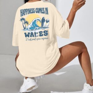 Graphic Tees Women Oversized T-Shirts: Summer Hawaiian Beach Tops Shirts Hawaii Tropical Beachy Short Sleeve Outfit