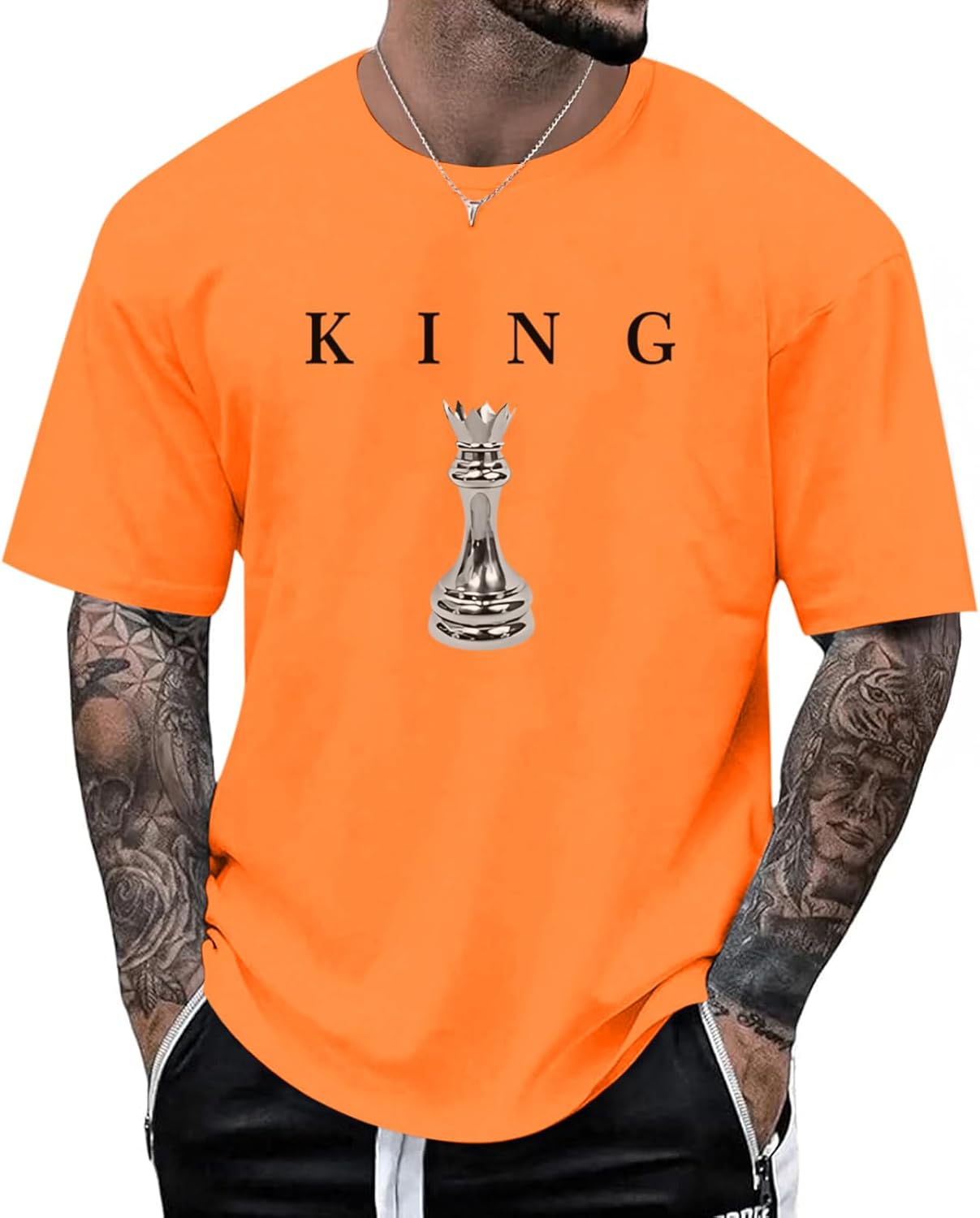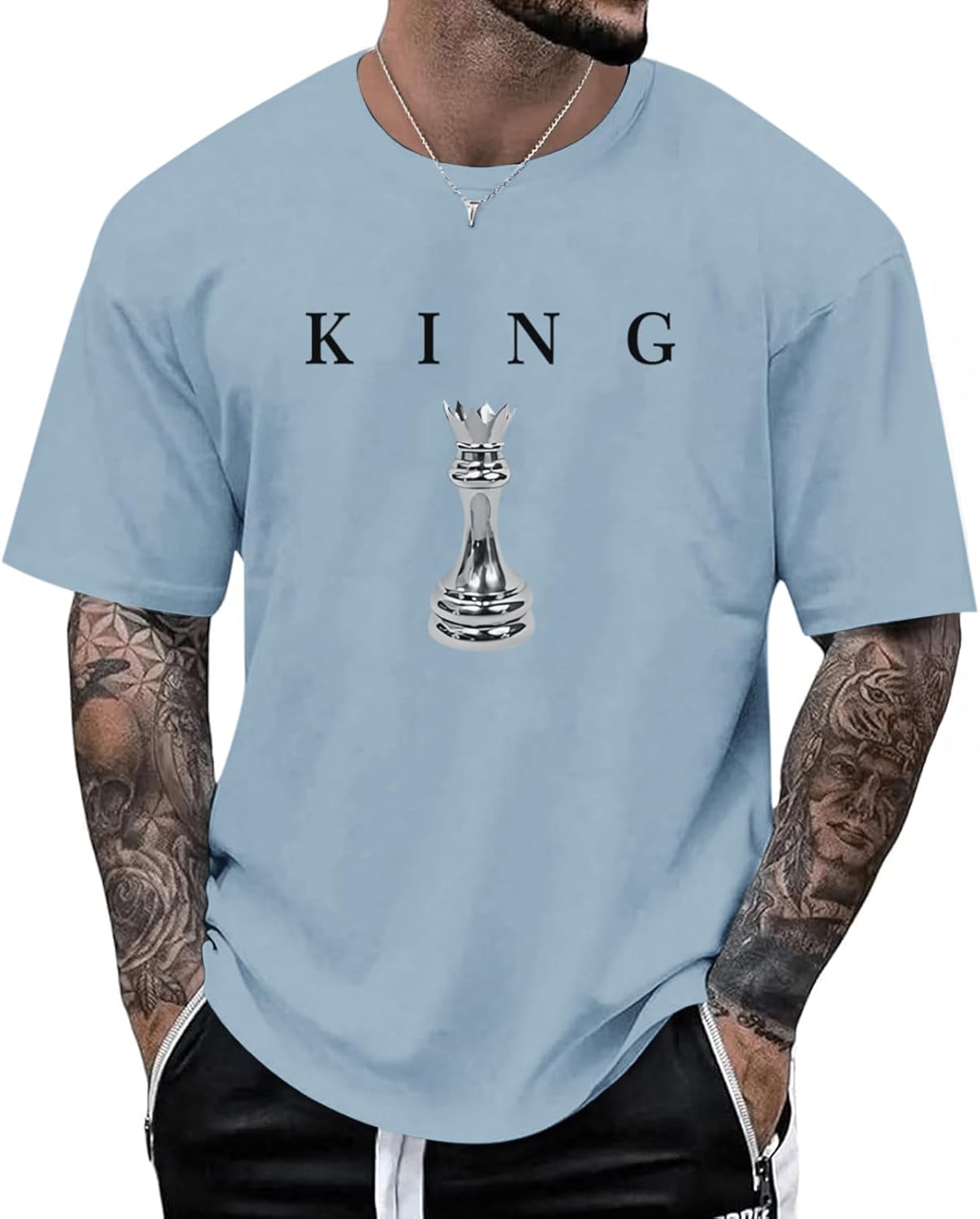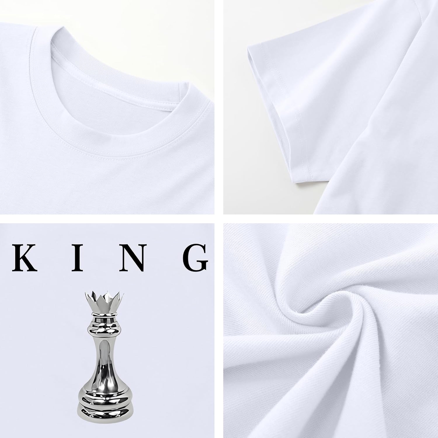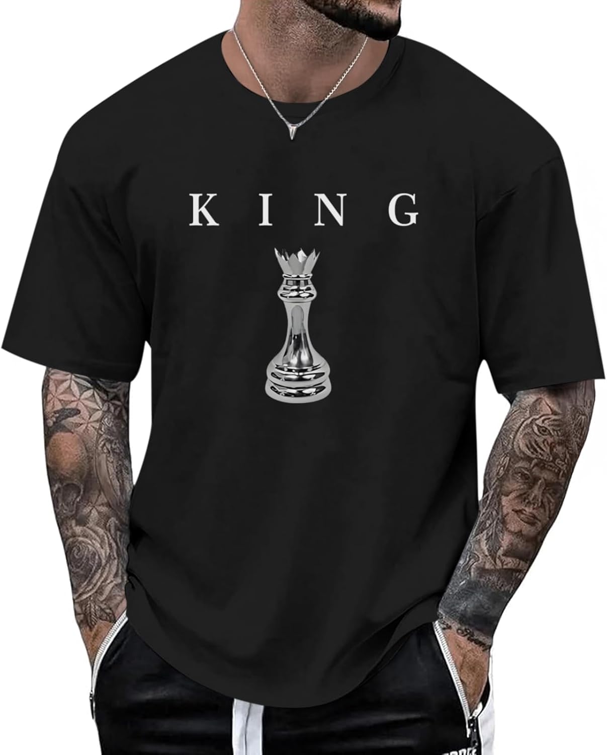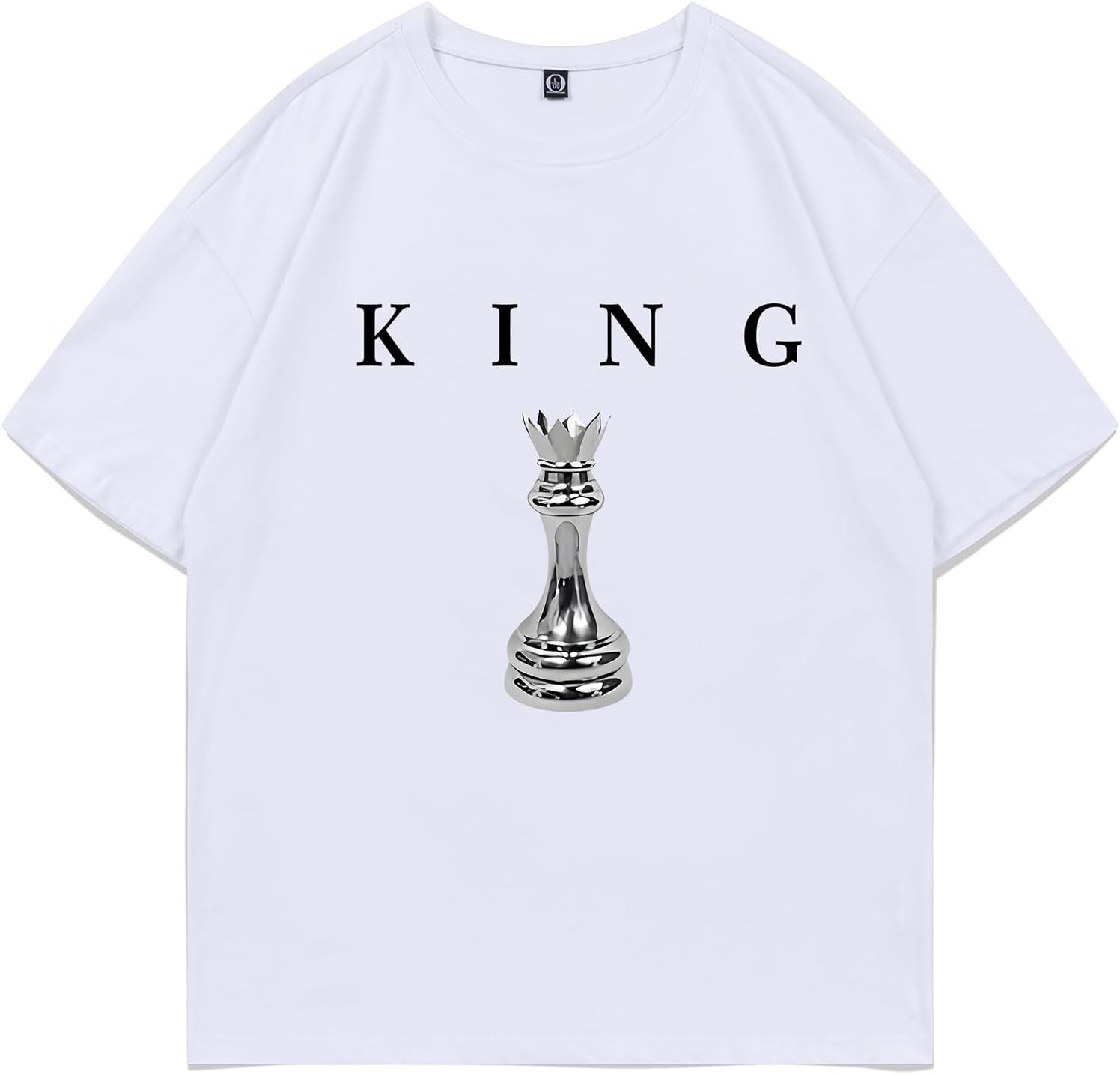 Kelxjia Men’s King Chess Shirt Graphic Tees Designer Printed T Shirts for Men Urban Letter T-Shirt Streetwear