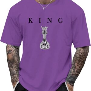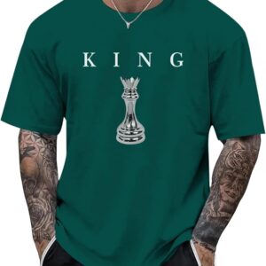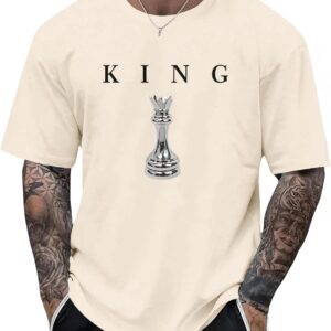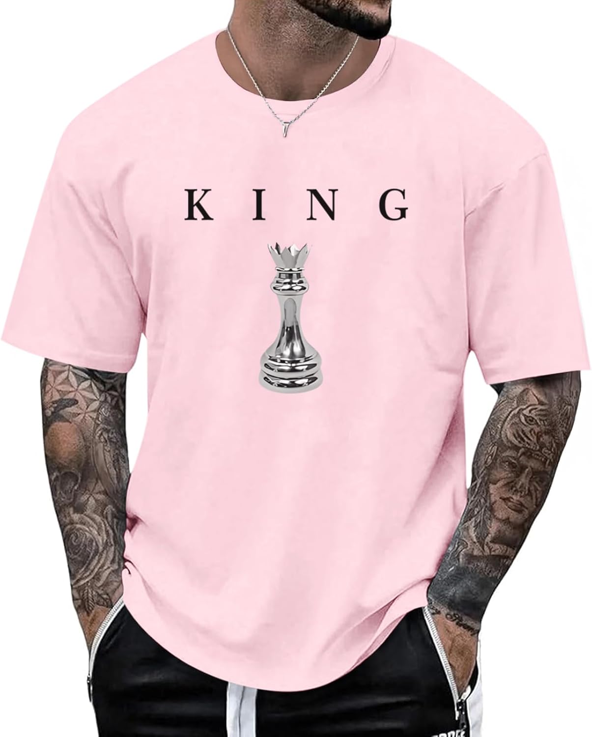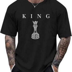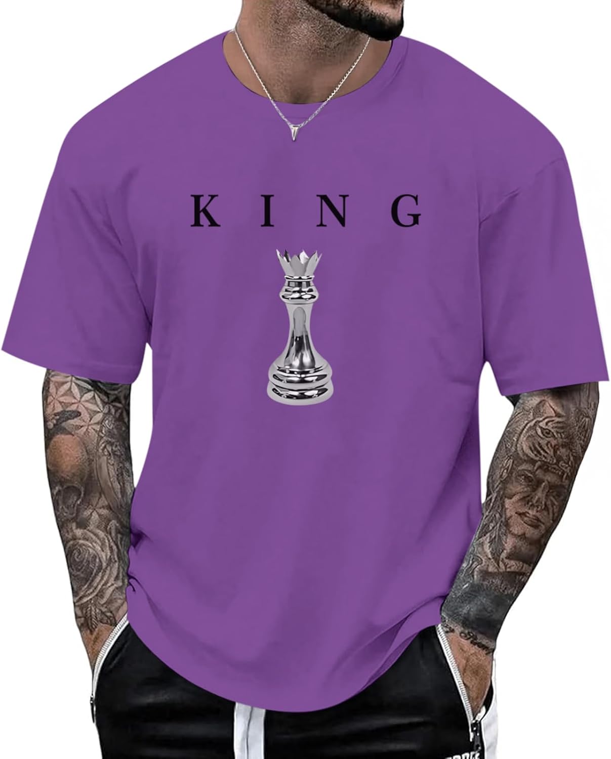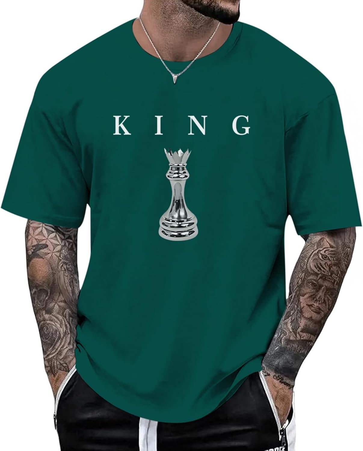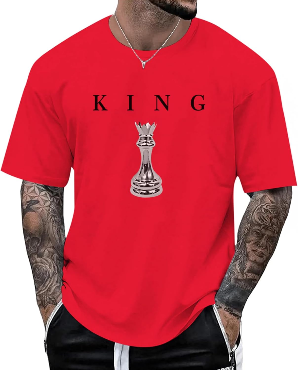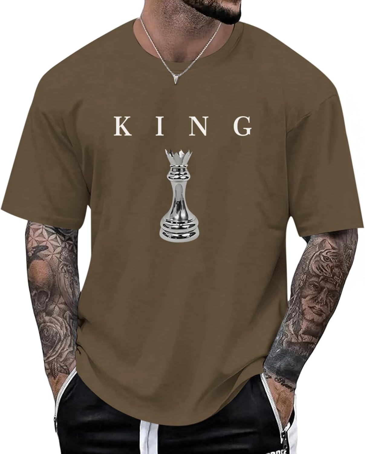 Kelxjia Men’s King Chess Shirt Graphic Tees Designer Printed T Shirts for Men Urban Letter T-Shirt Streetwear