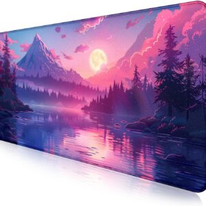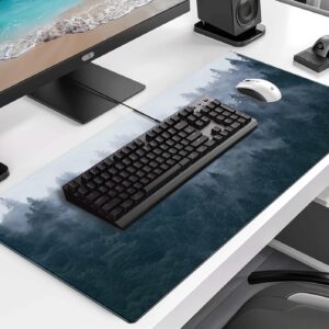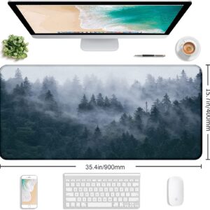 Large Extended Gaming Mouse Pad with Stitched Edges, Non-Slip Waterproof Rubber Base Mouse Pad for Office, Computer, Keyboard, Laptop and Home Desk Pad 35.4 x 15.7 x 0.12 Inch (Grey Forest)