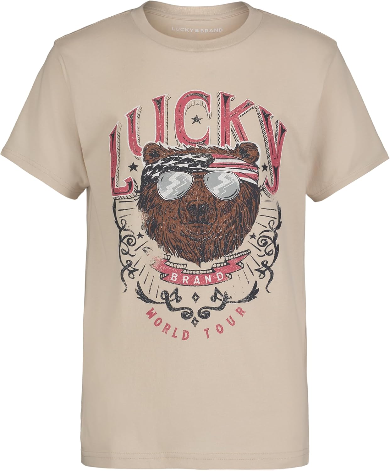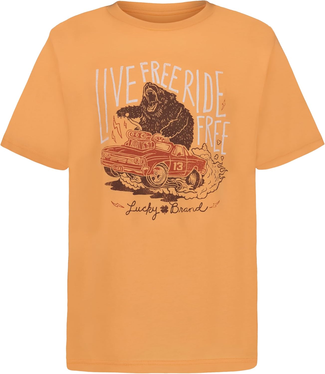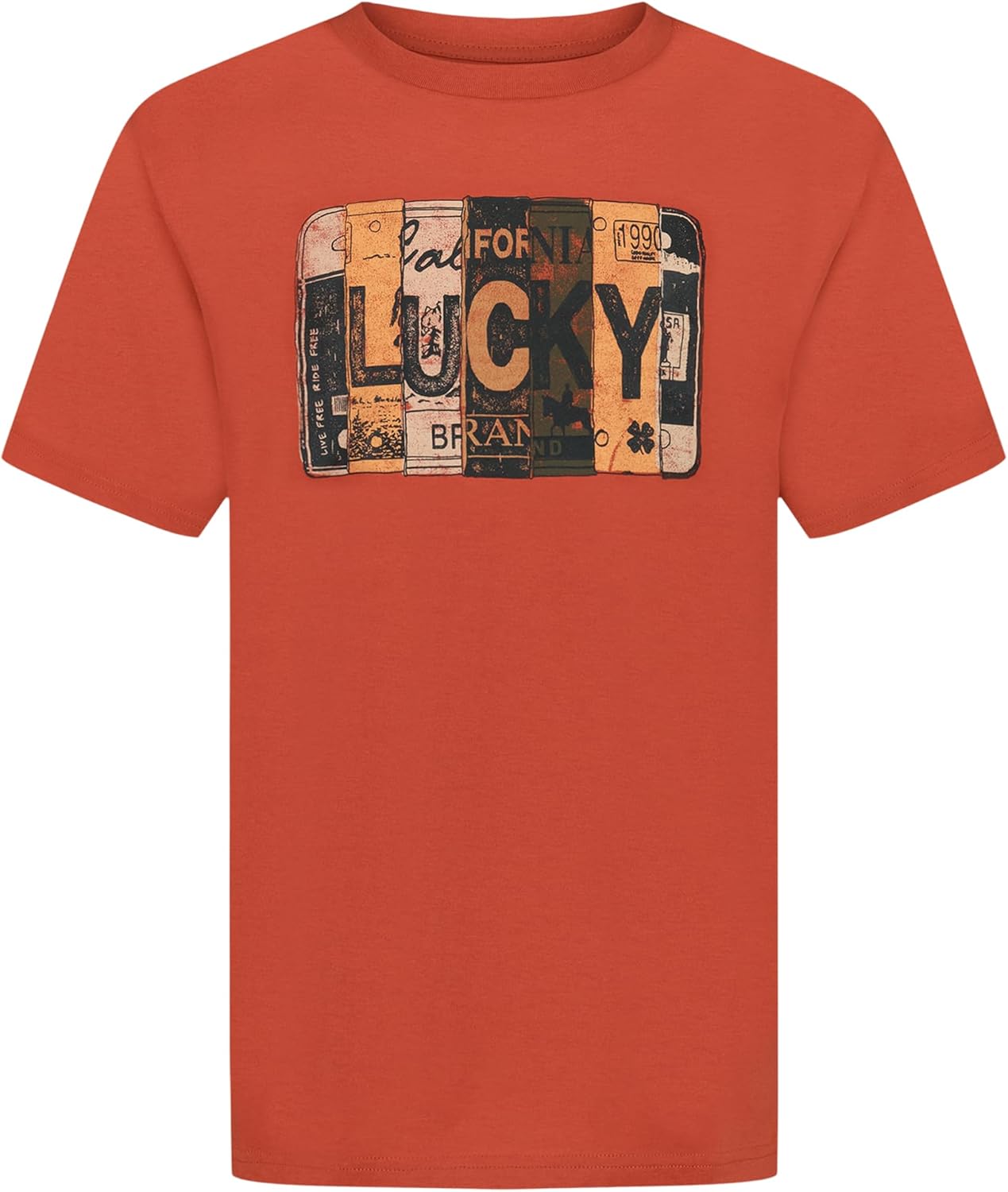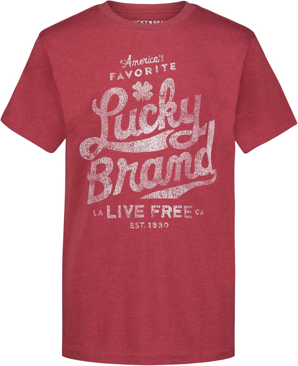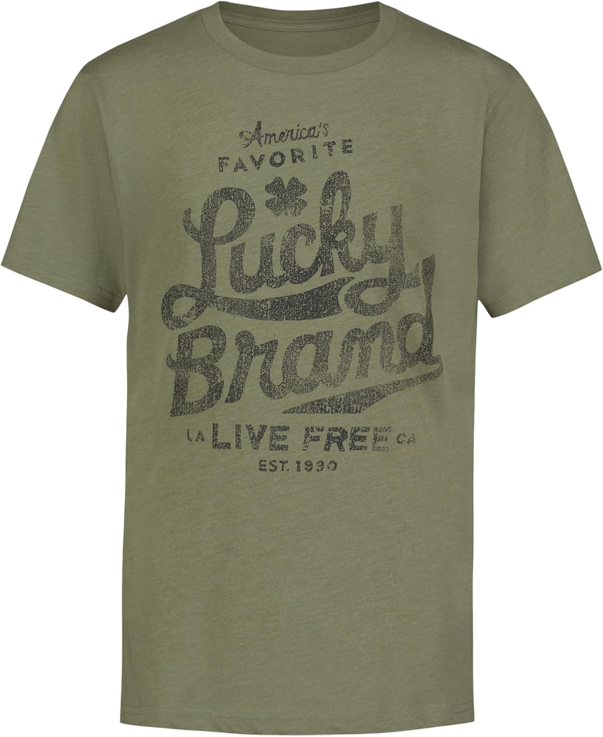 Lucky Brand Boys’ Short Sleeve Graphic Crew Neck T-Shirt, Soft, Comfortable, Relaxed Fit