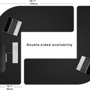 - Oversized L Shaped Desk Mat : Measuring 59" x 59" x 19.6" (150 x 150 x50 cm), this l shaped desk mouse pad provides expansive space to accommodate laptops, monitors, keyboards, mice, wrist rests, notebooks, phone stands, pen holders, and cups, it delivers a soft, cushioned surface with just the right