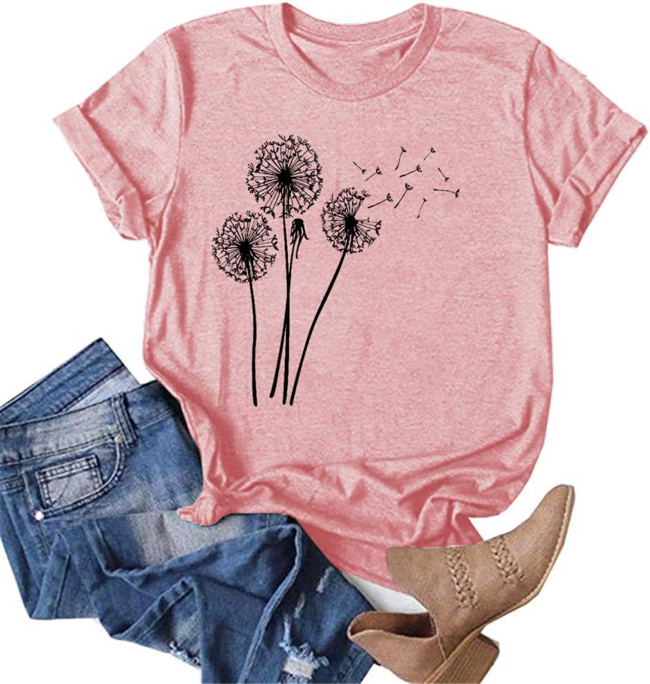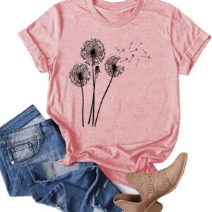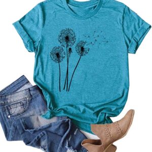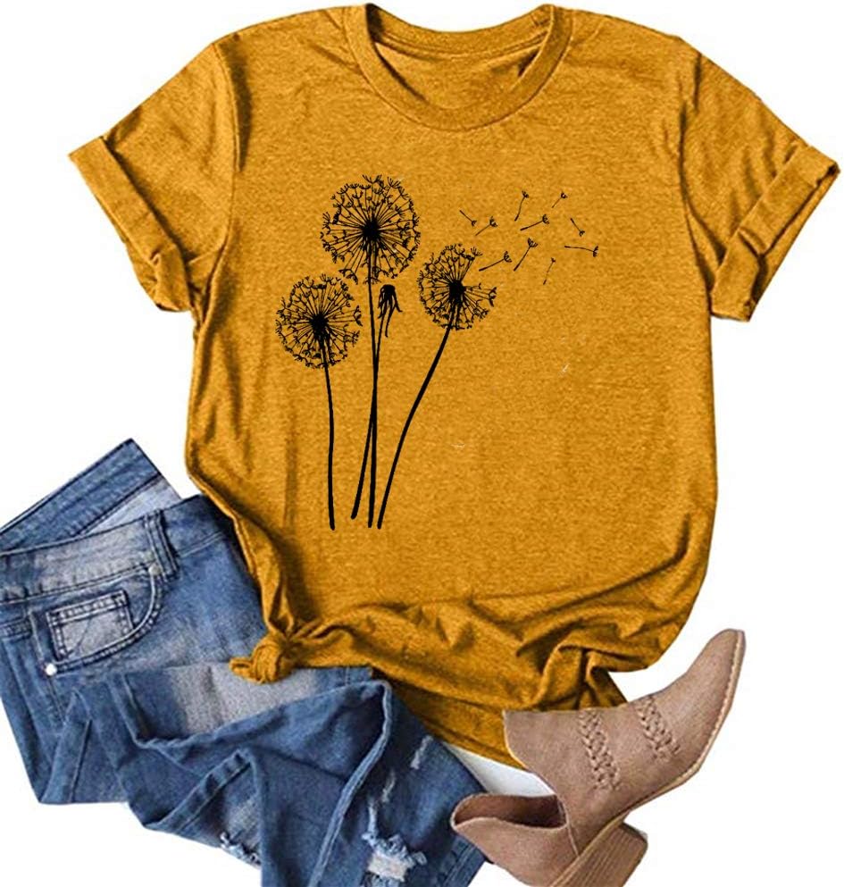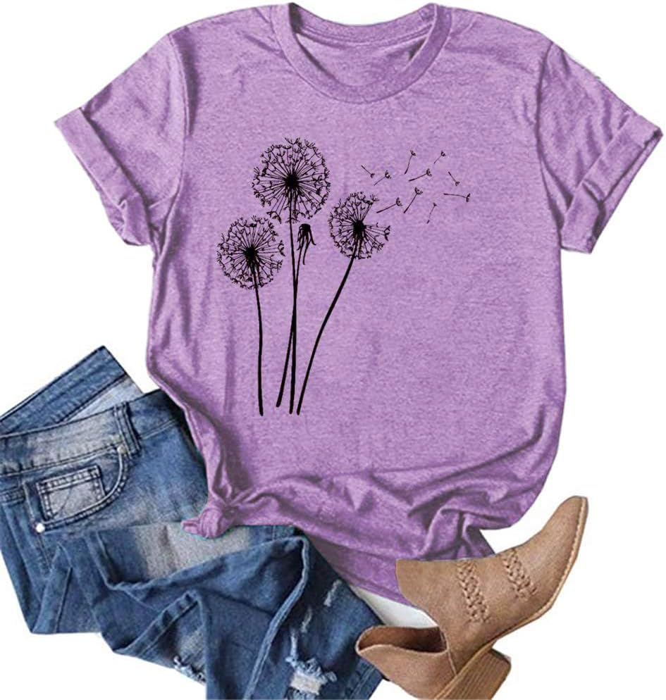 MaQiYa Womens Cute Make A Wish Dandelion Printed Tee Shirts Summer Cotton Vintage Graphic Tees Tops
