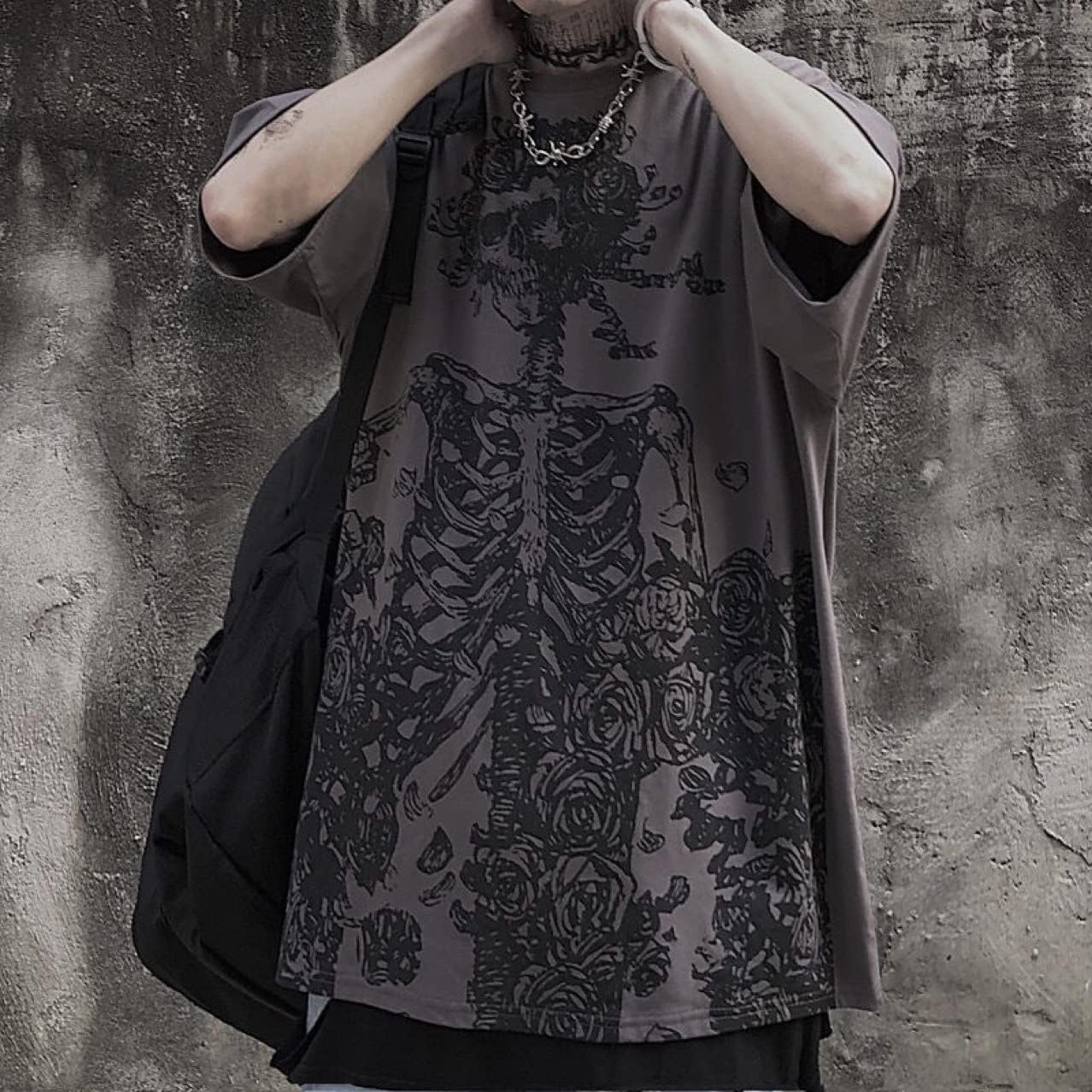 Men Women Y2K Gothic Skeleton T-Shirt Grunge Dark Academia Emo Tees Japanese Alt Harajuku Oversize Punk Skull Clothes