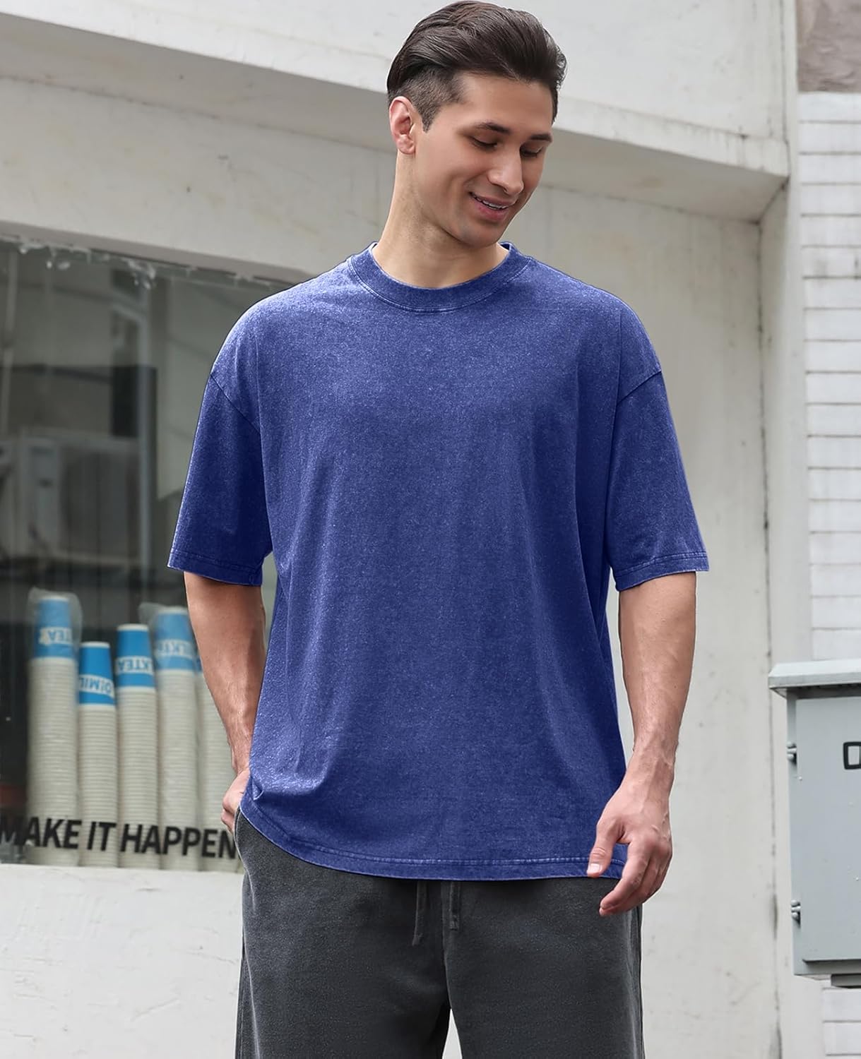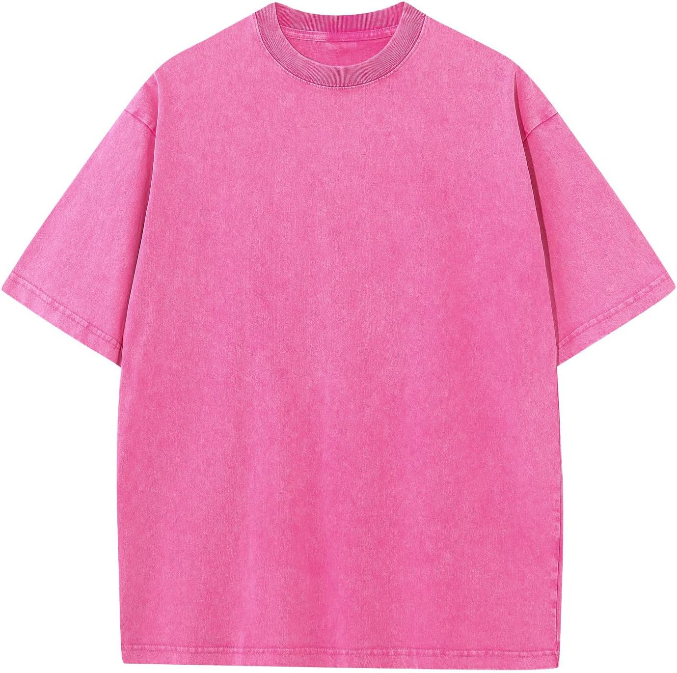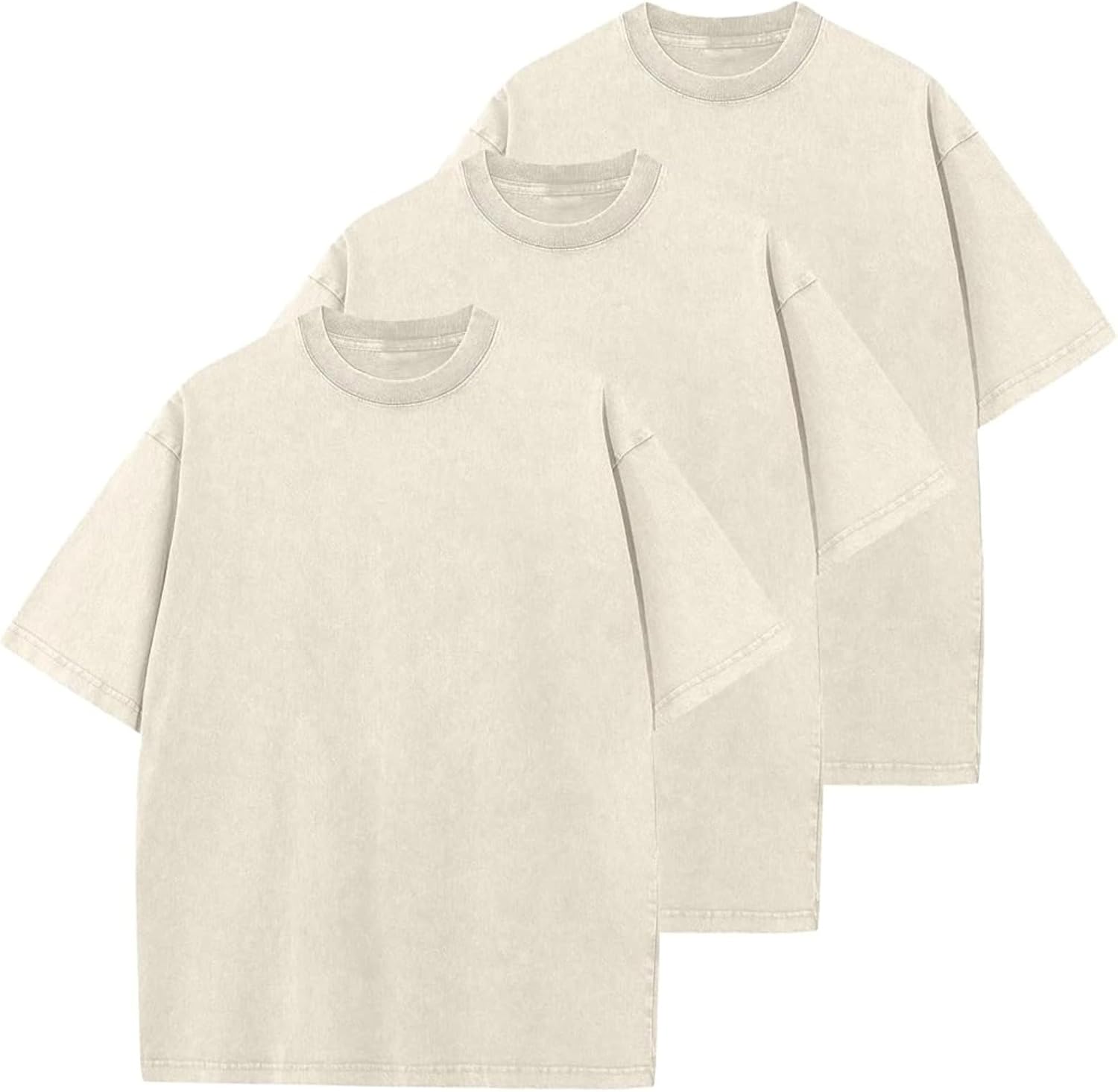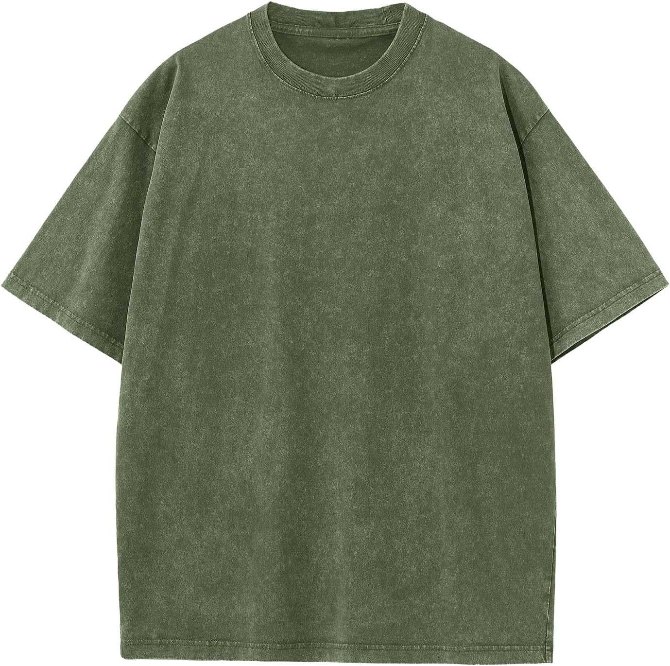 Men’s Cotton T-Shirts Oversized Unisex Short Sleeves Casual Loose Wash Solid Basic Tee Tops