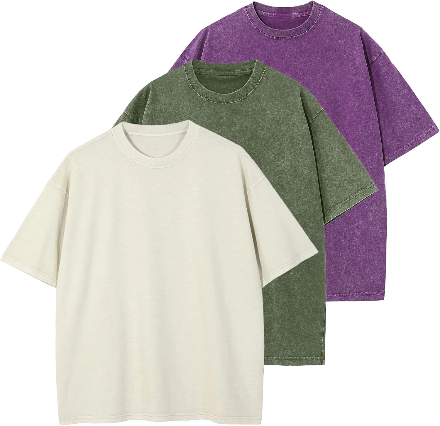 Men's Cotton T-Shirts Oversized Unisex Short Sleeves Casual Loose Wash Solid Basic Tee Tops quantity
