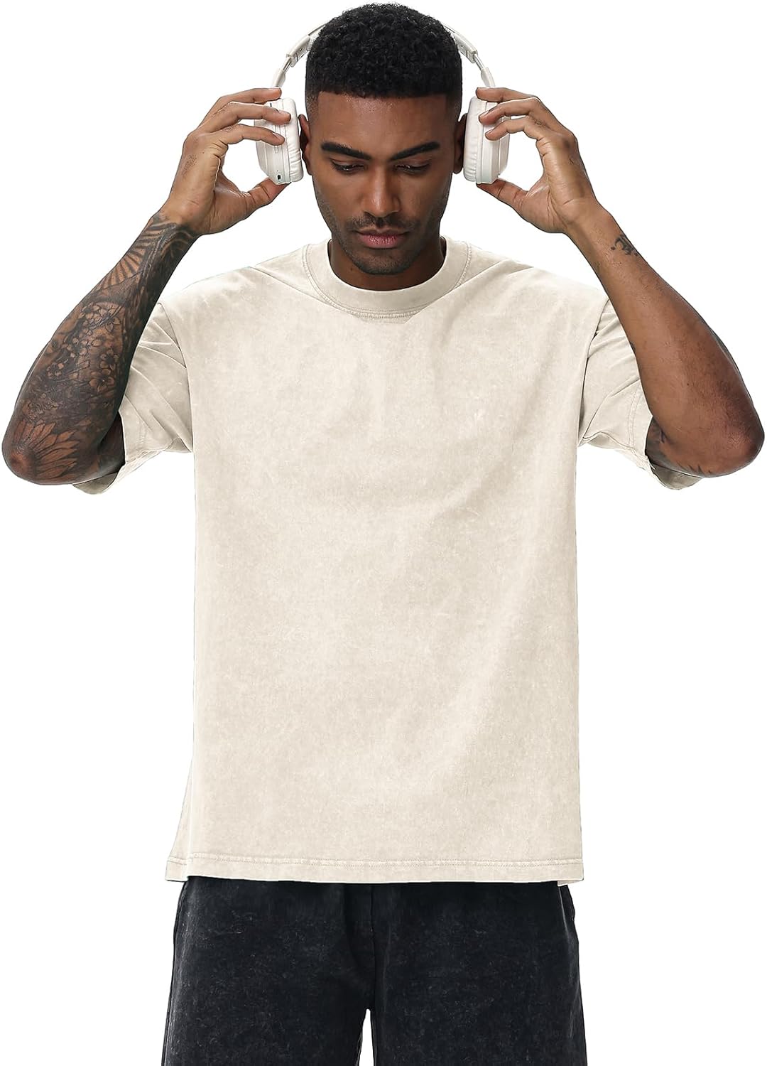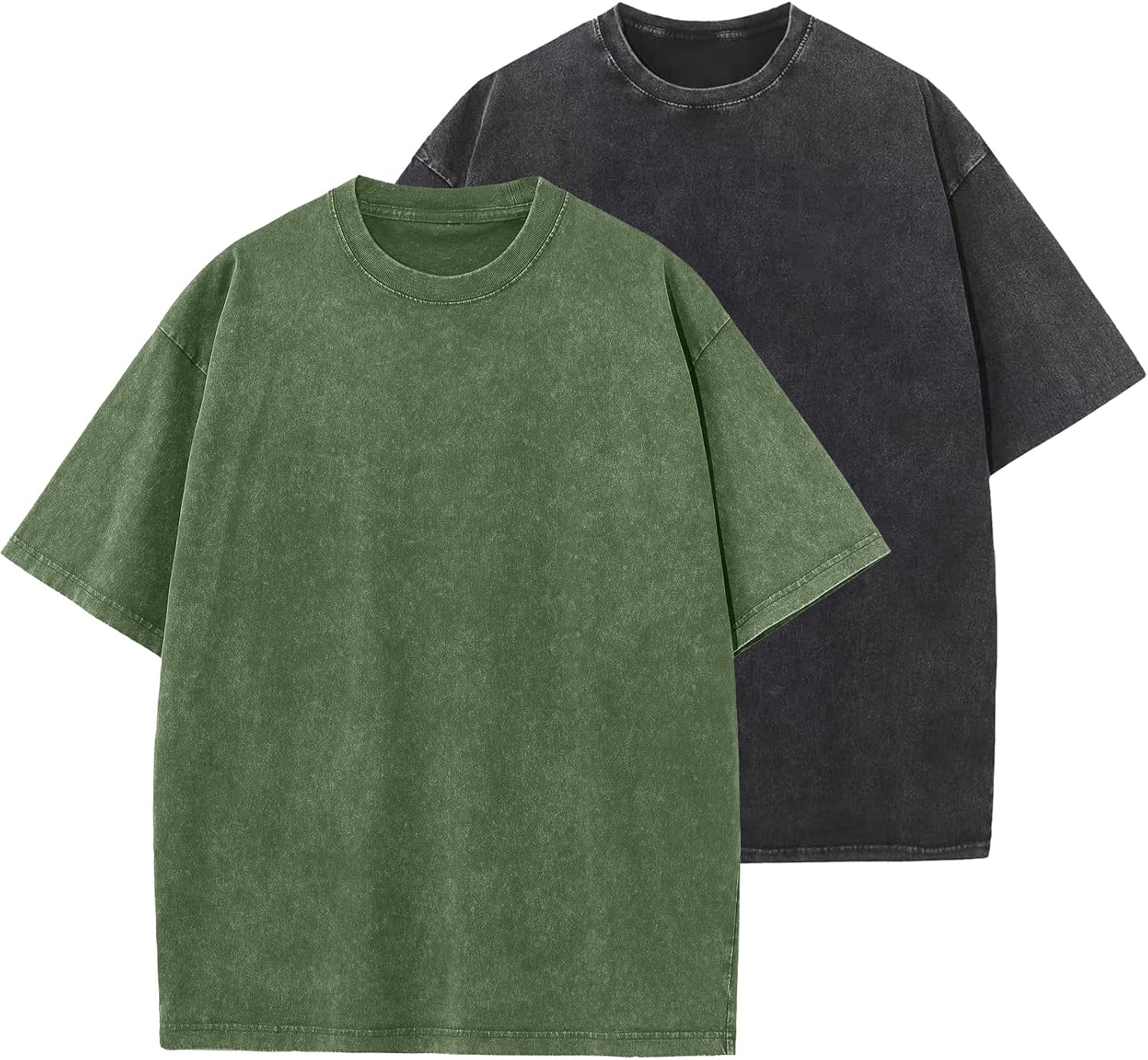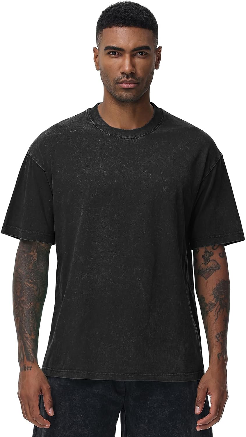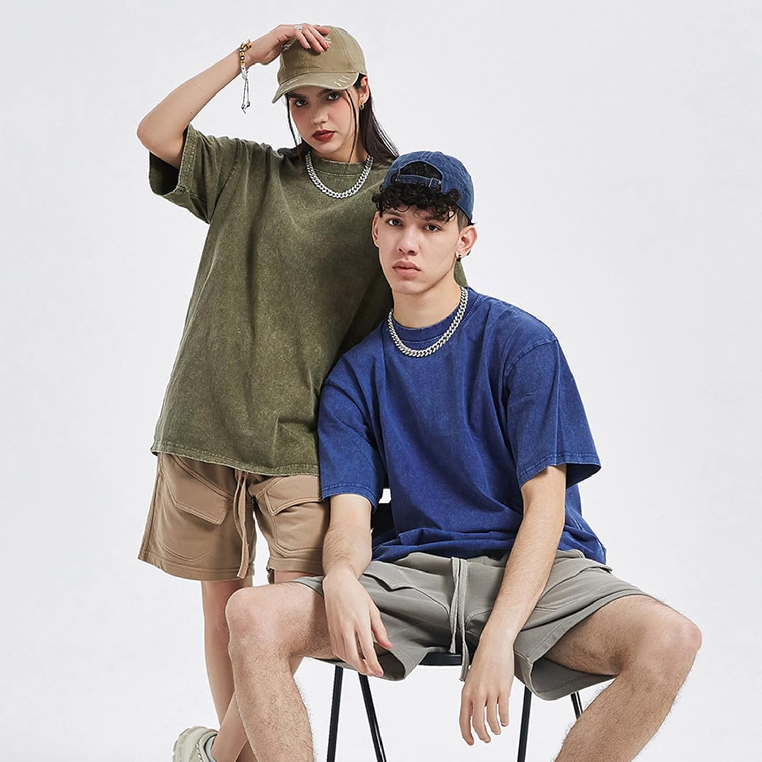 Men’s Oversized Cotton T-Shirts Loose Fit Vintage Washed Tee Unisex Short Sleeve Casual Shirts Tops