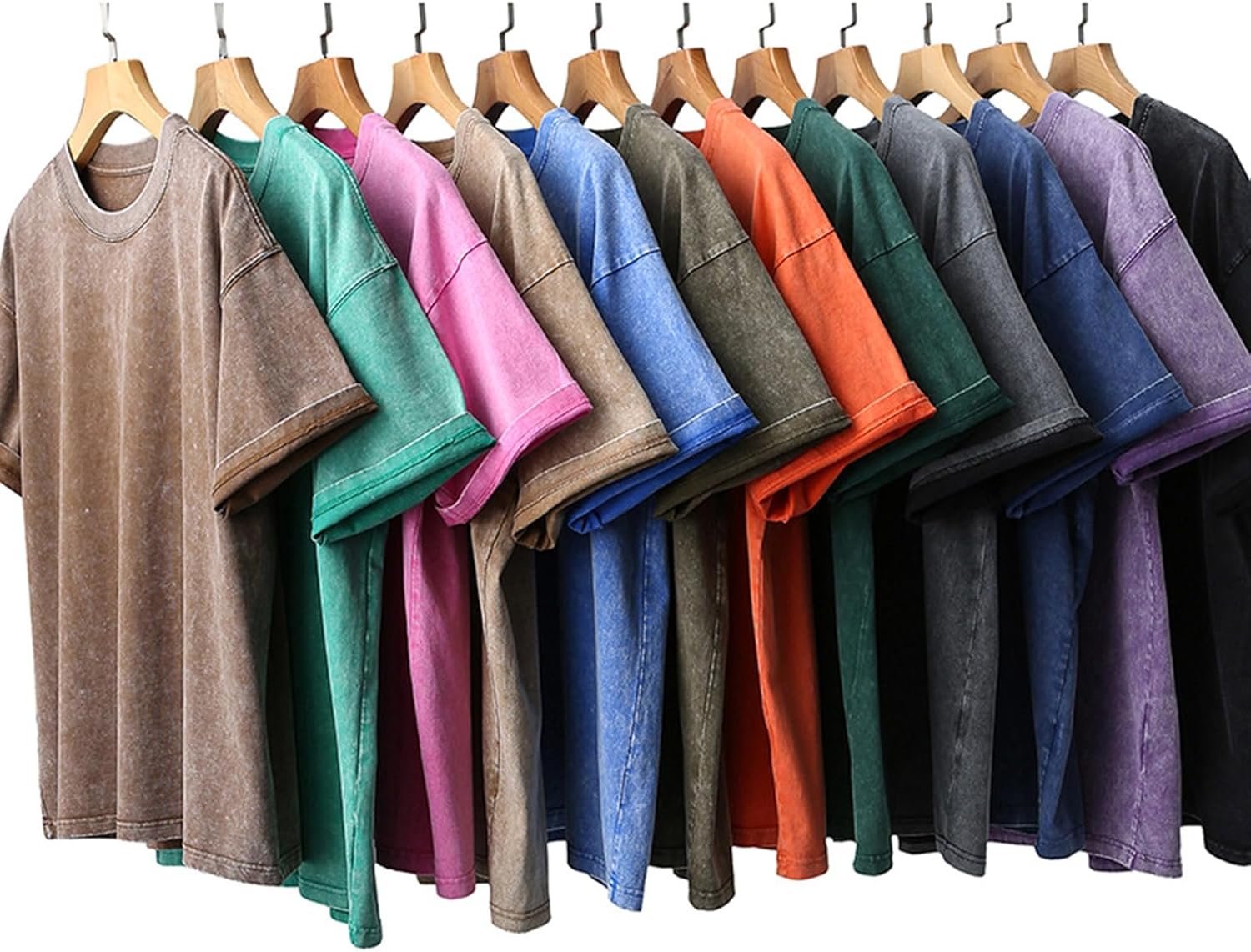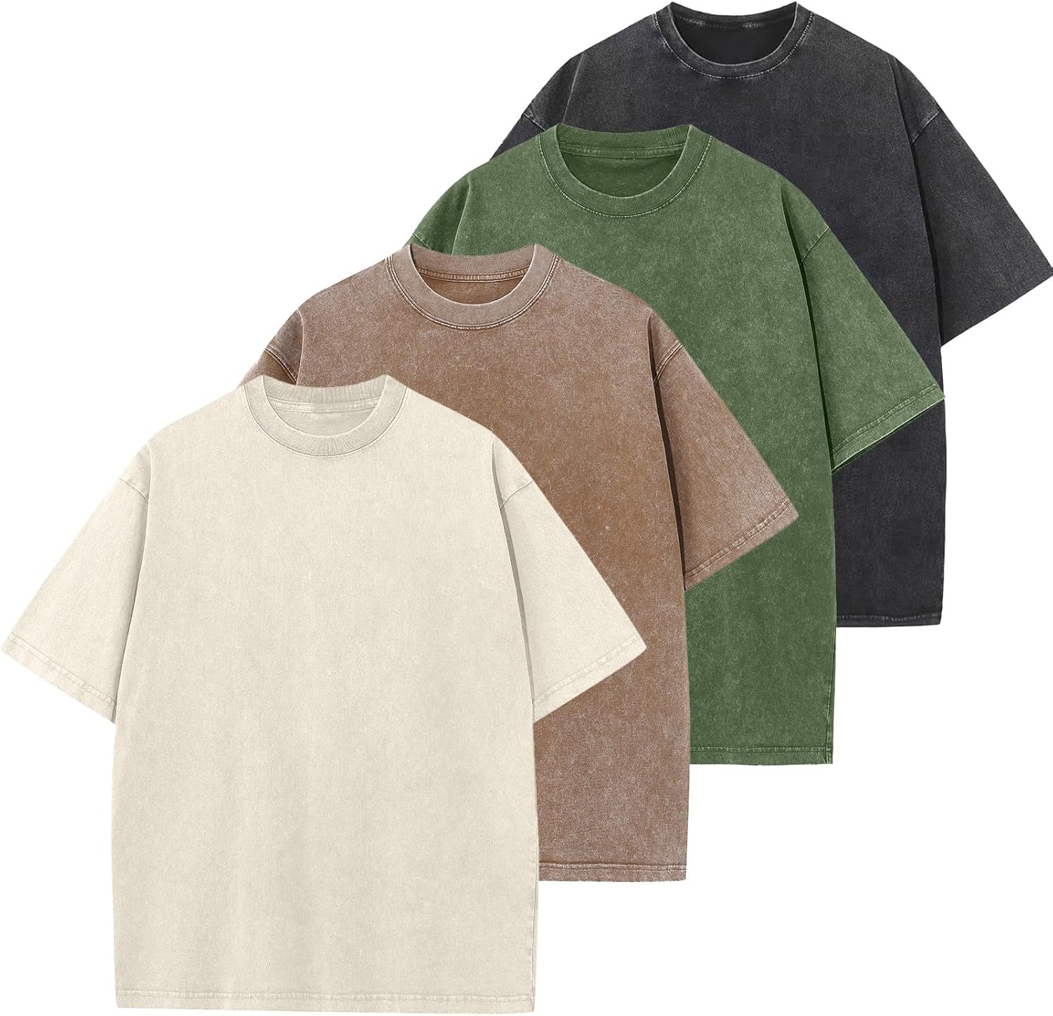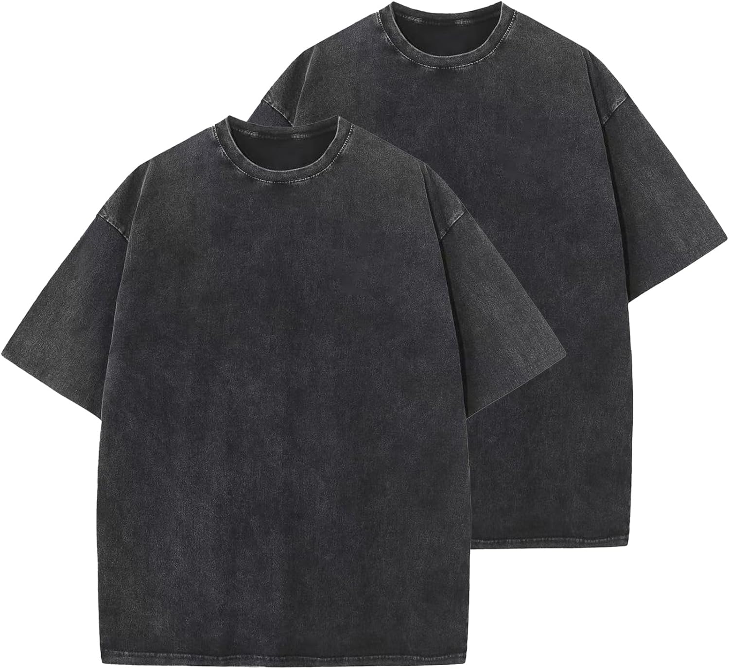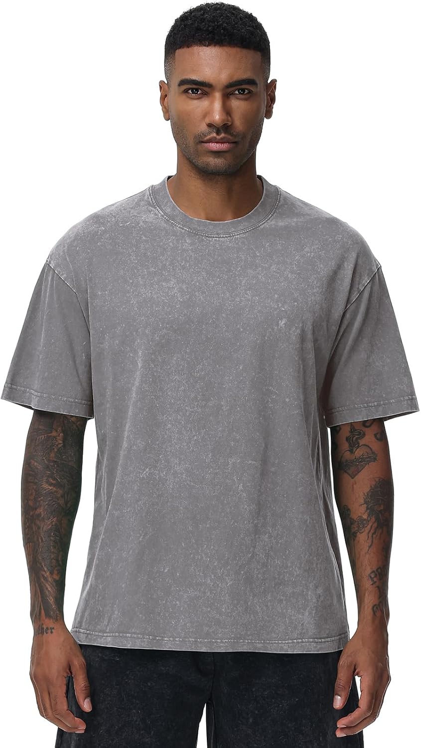 Men’s Oversized Cotton T-Shirts Loose Fit Vintage Washed Tee Unisex Short Sleeve Casual Shirts Tops