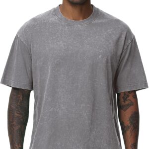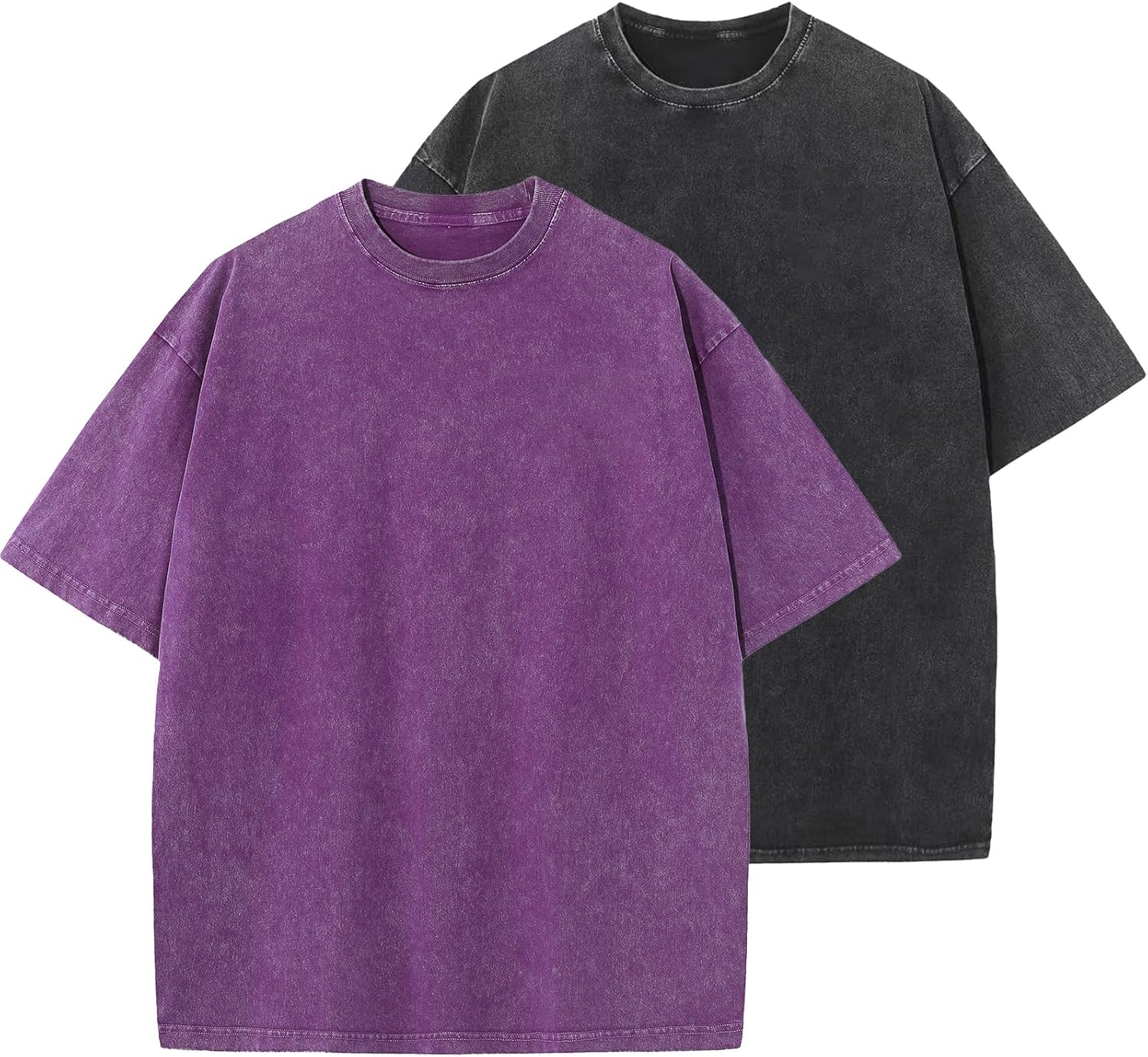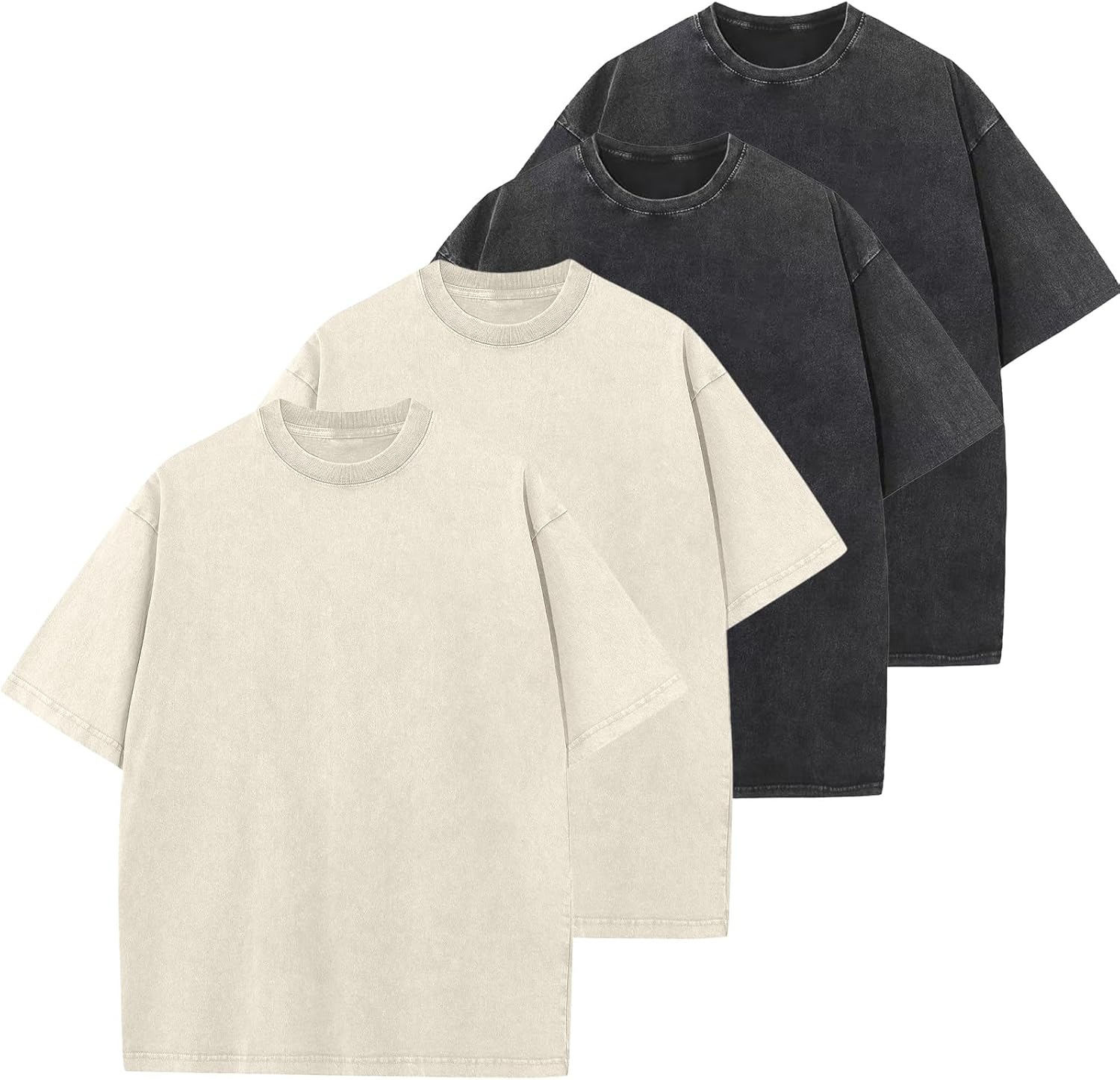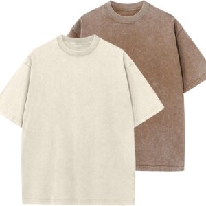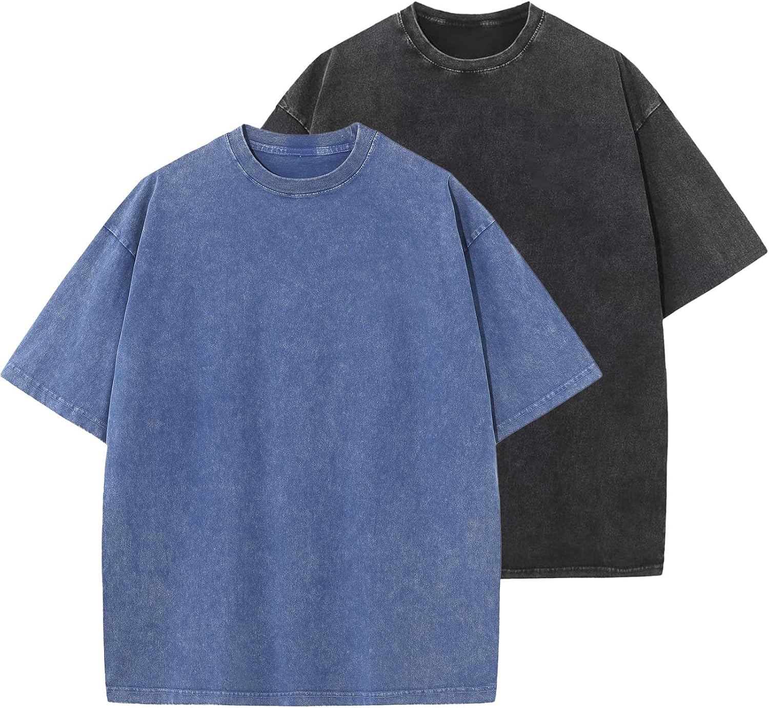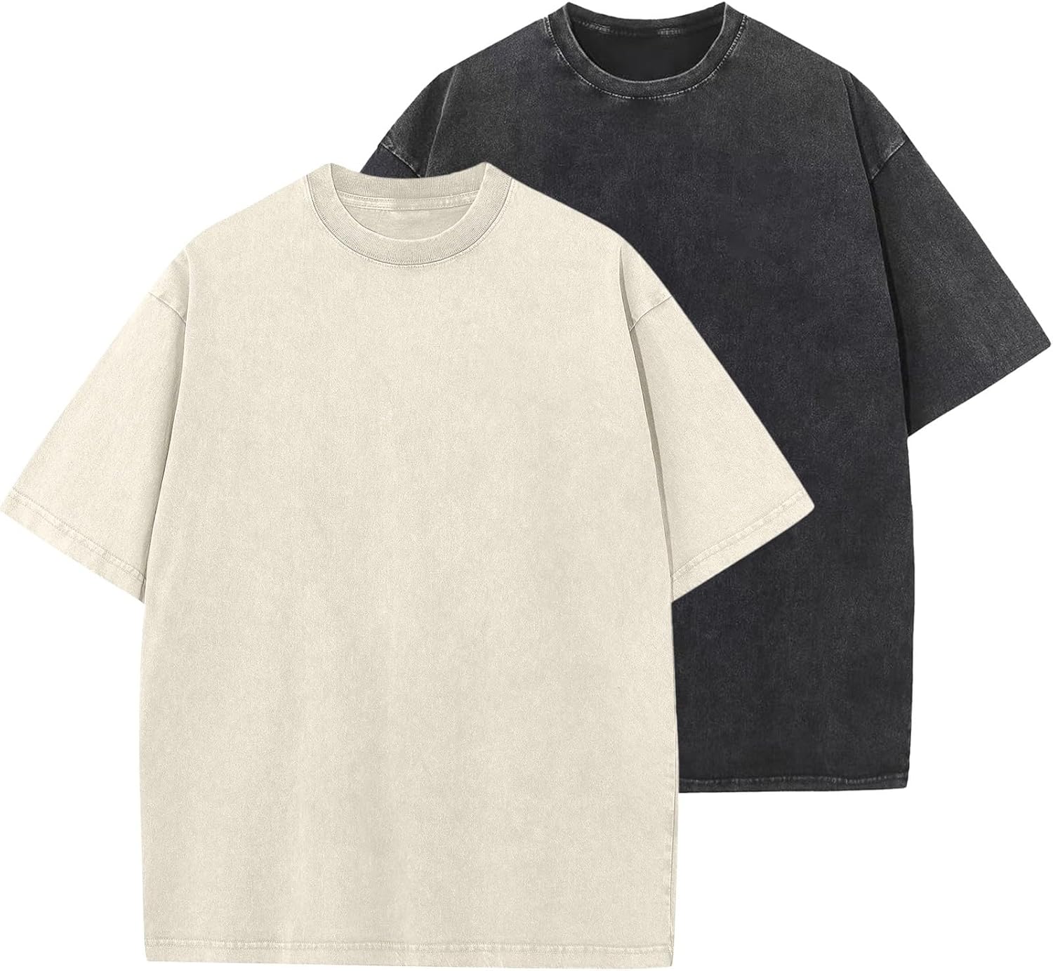 Men’s Oversized Cotton T-Shirts Loose Fit Vintage Washed Tee Unisex Short Sleeve Casual Shirts Tops