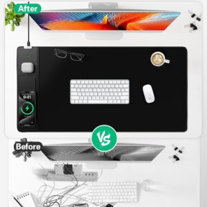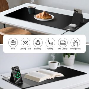 Mouse Pad, Office Desk Mat, Large Gaming Mousepad with Superior Micro-Weave Cloth, XXL Desk Pad with Stitched Edges, Non-Slip Writing Pad for Gamer, Laptop, Work & Home (Black with 20W PD Charger)