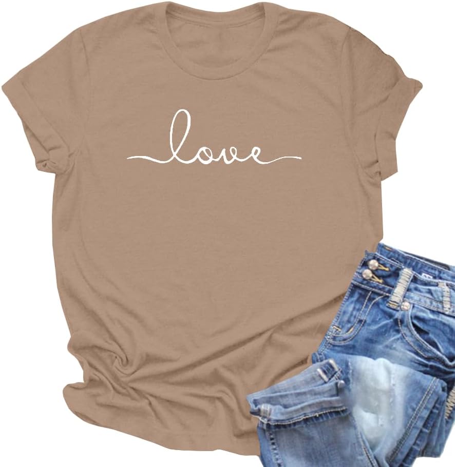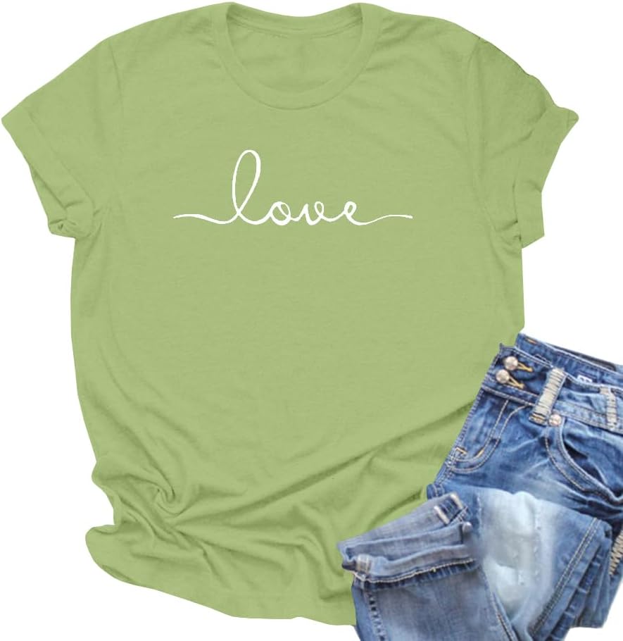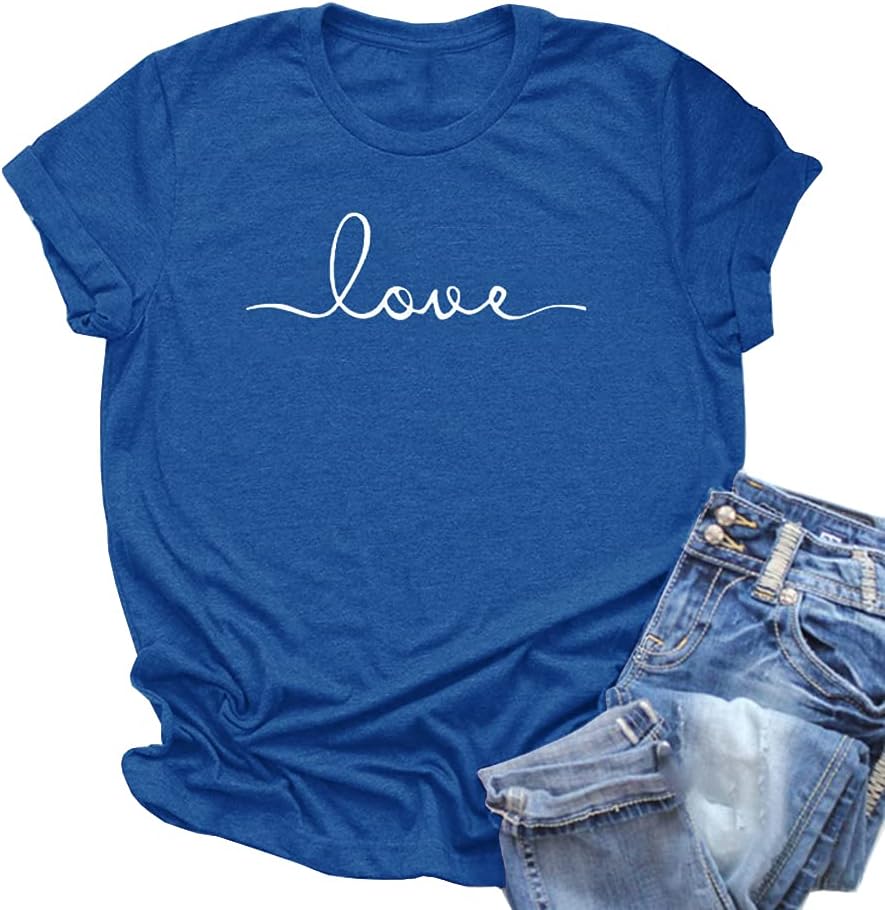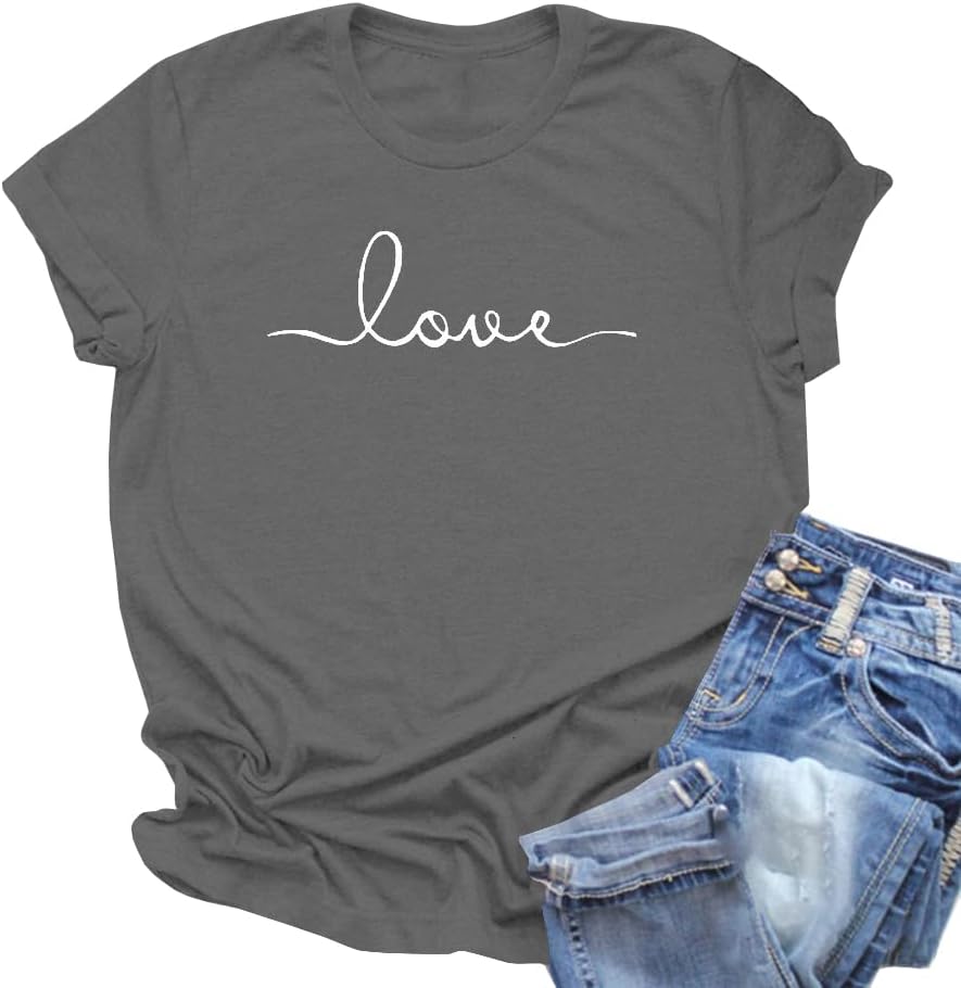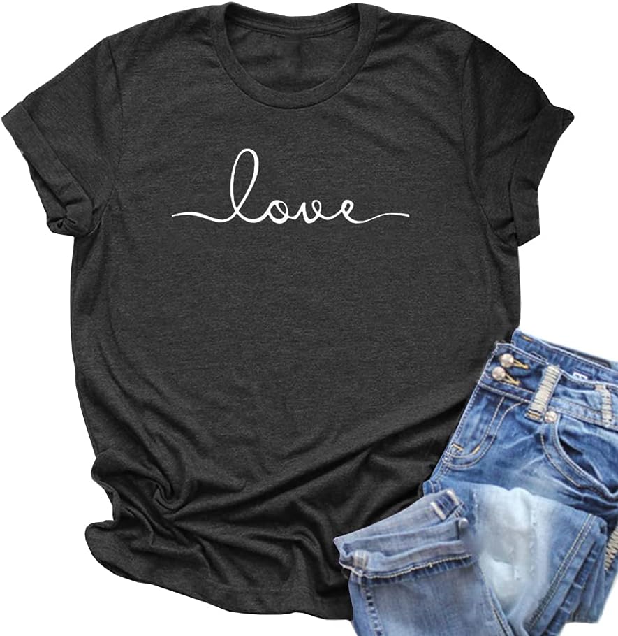 NIUBIA Women’s T-Shirt Graphic Tees Love Printed Casual Short Sleeve Tops Summer Loose Fitted Top