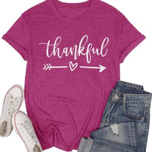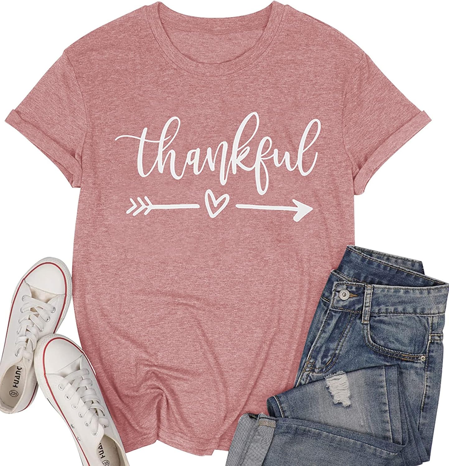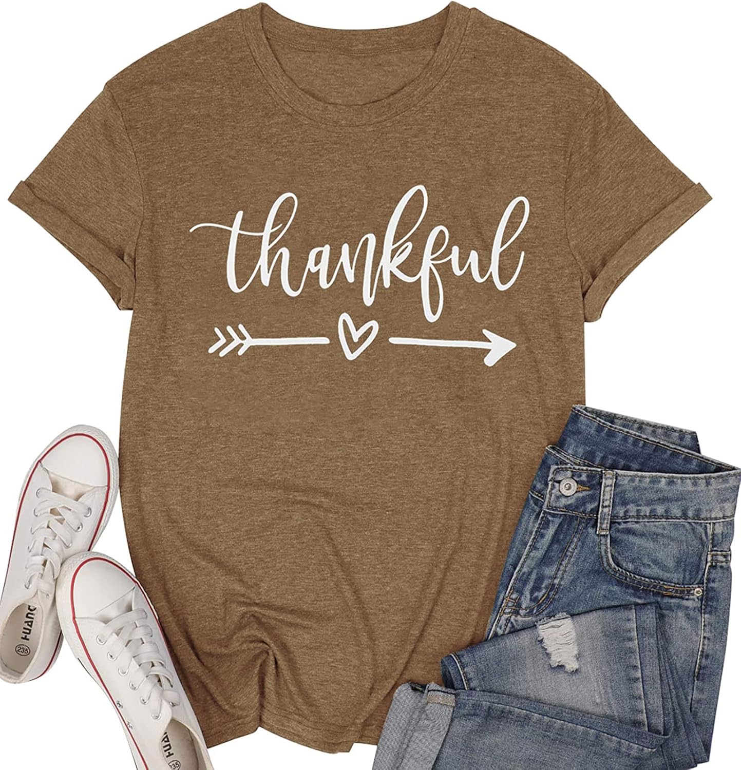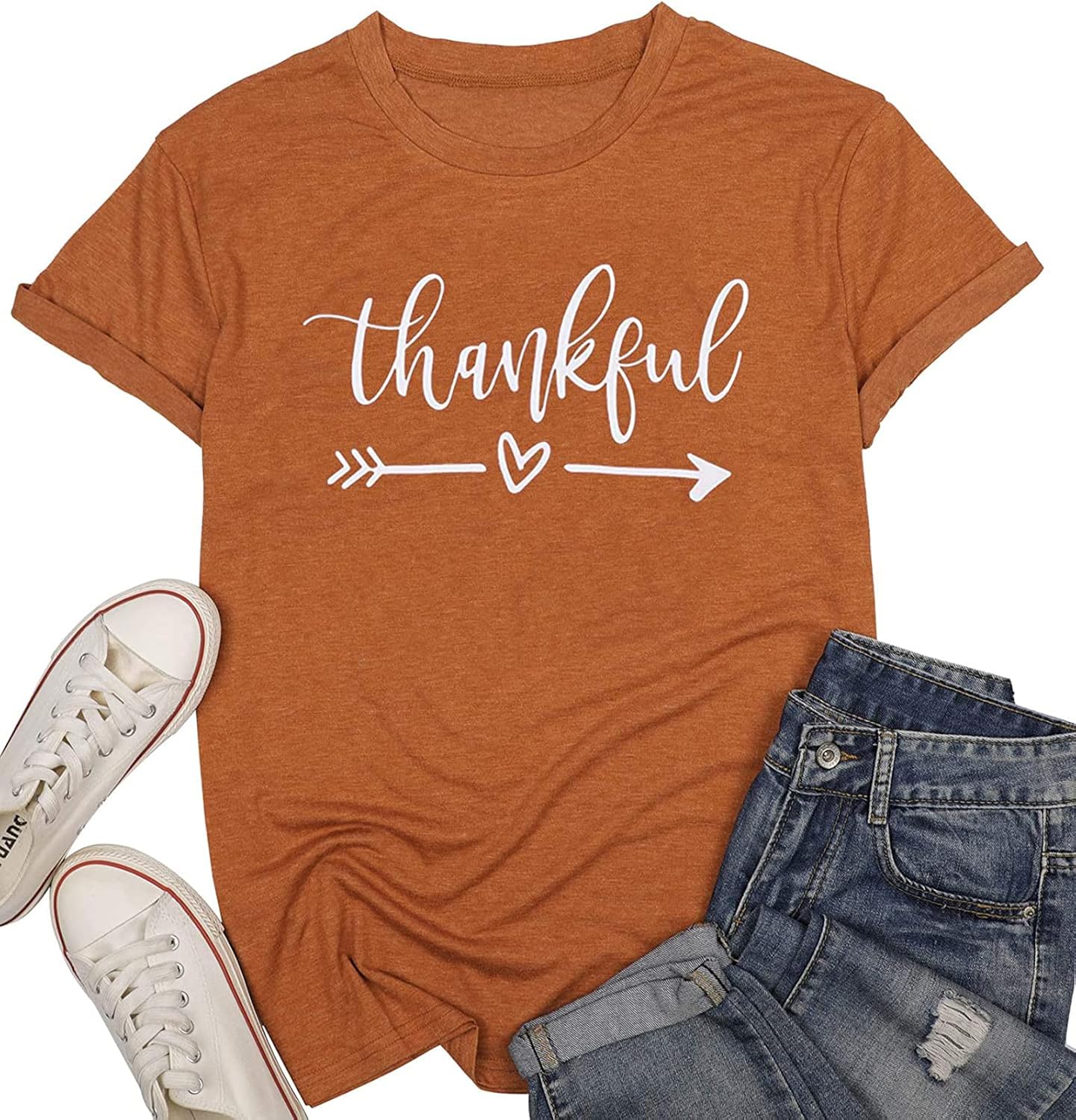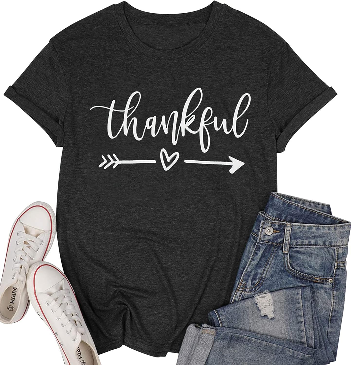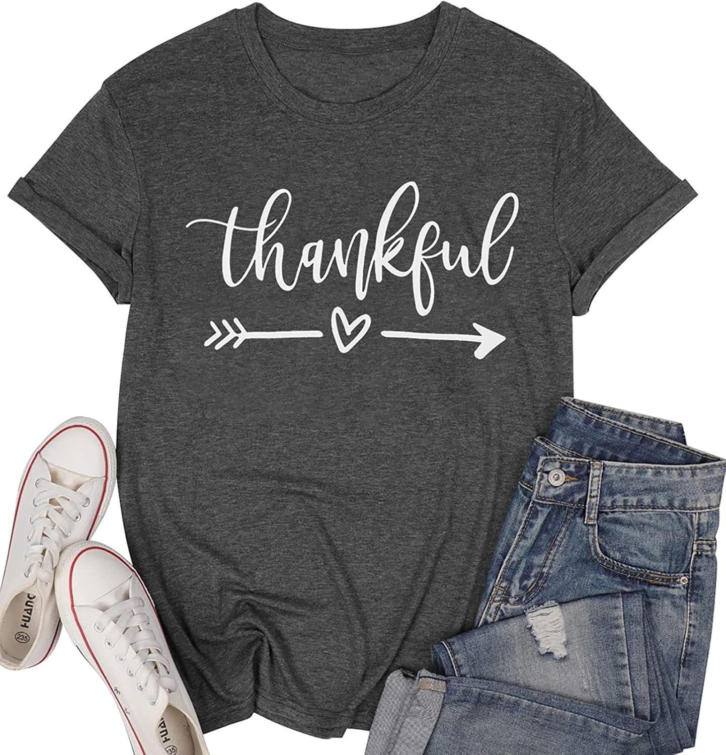 NIUBIA Women's T Shirts Summer Tops Simple Heart Graphic Shirts Sayings Short Sleeve Vacation Casual Blouse Thankful Tee quantity